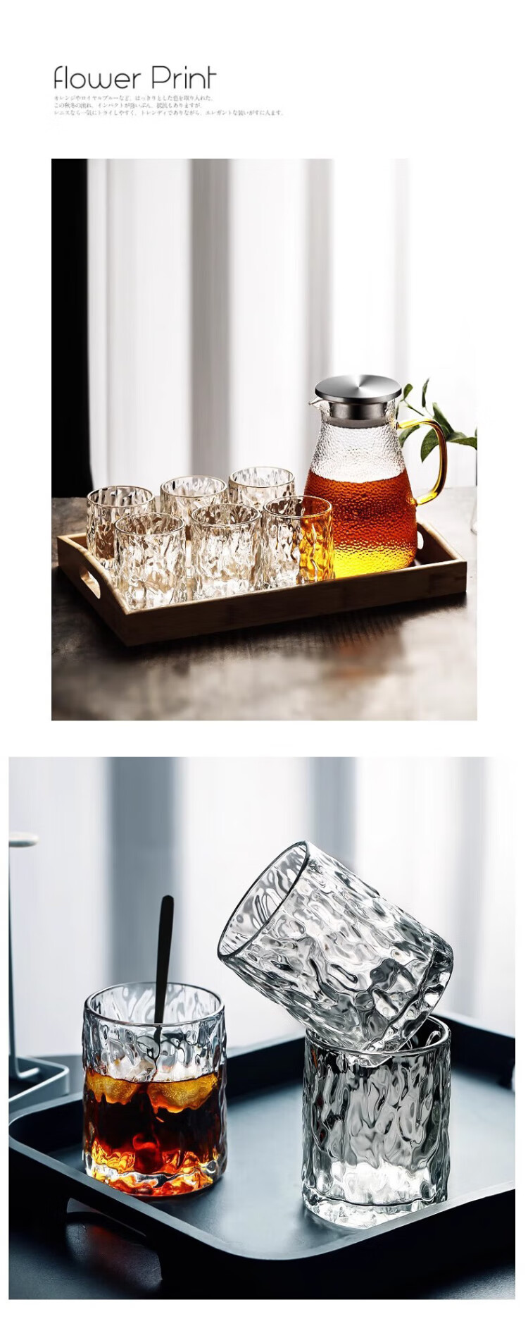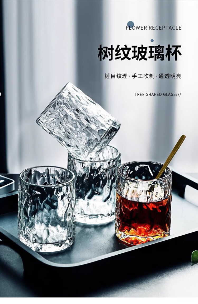 Guiqi glass water cup holder set household simple high temperature resistant transparent drinking cup wine glass living room teacup 6 tree pattern cup 250ml + white cup holder