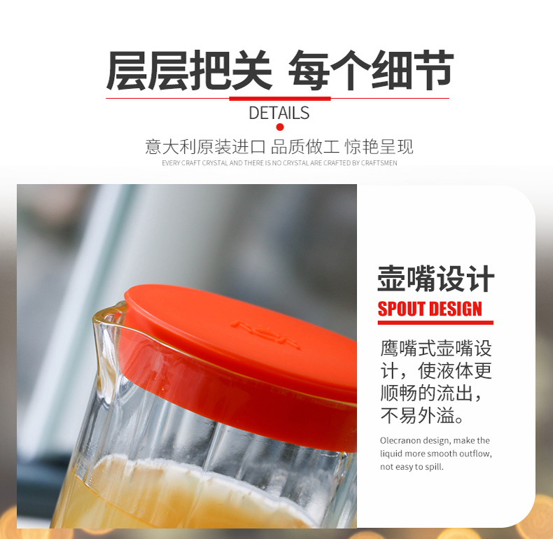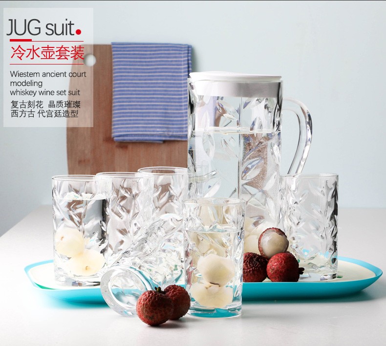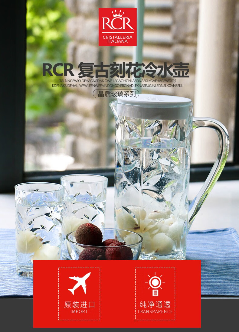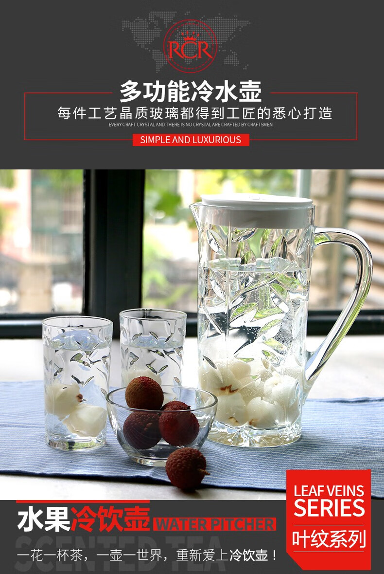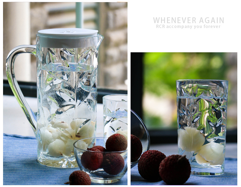 RCR Nordic style light luxury glass modern simple high-looking juice cup home hospitality drinking cup kettle set leaf pattern 1.2L single pot white