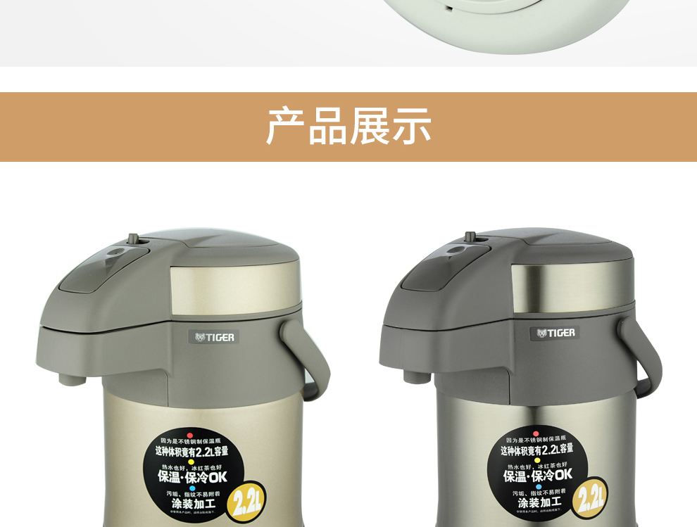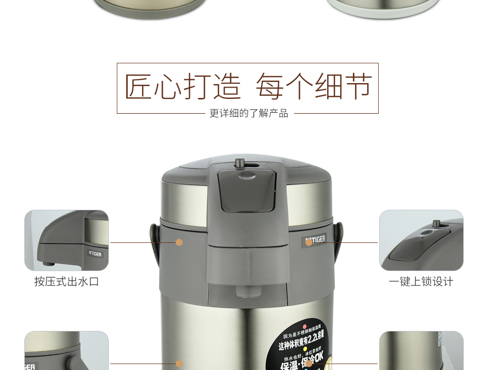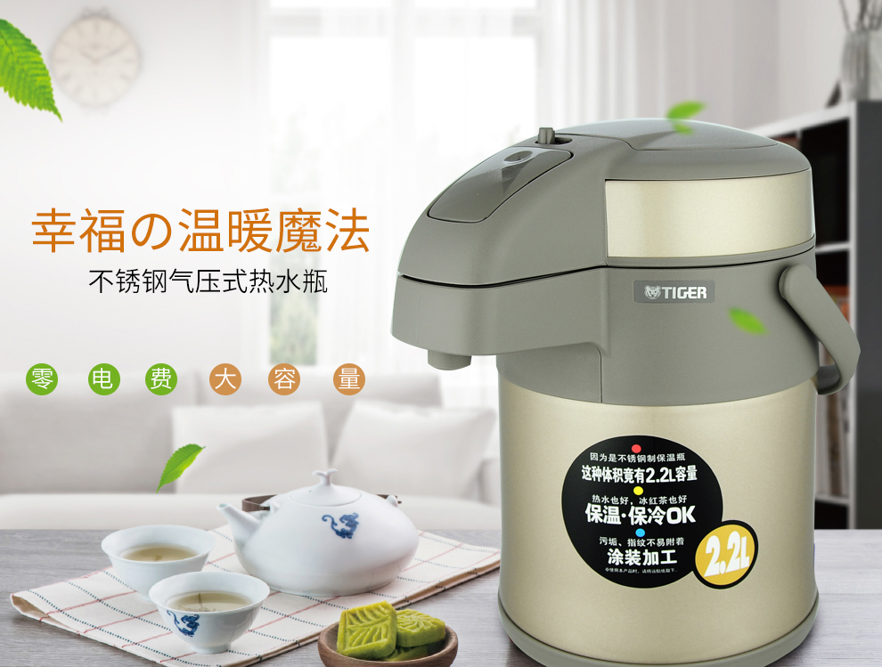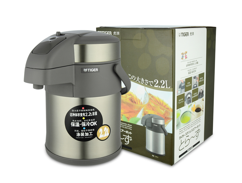 Tiger (TIGER) Tiger thermos cup air pressure thermos kettle with tea filter tea cup set 2.2L gold thermos kettle 2.2L + steel color thermos cup 500ml