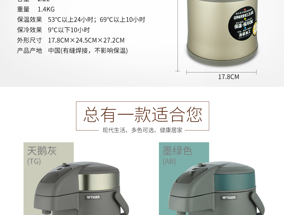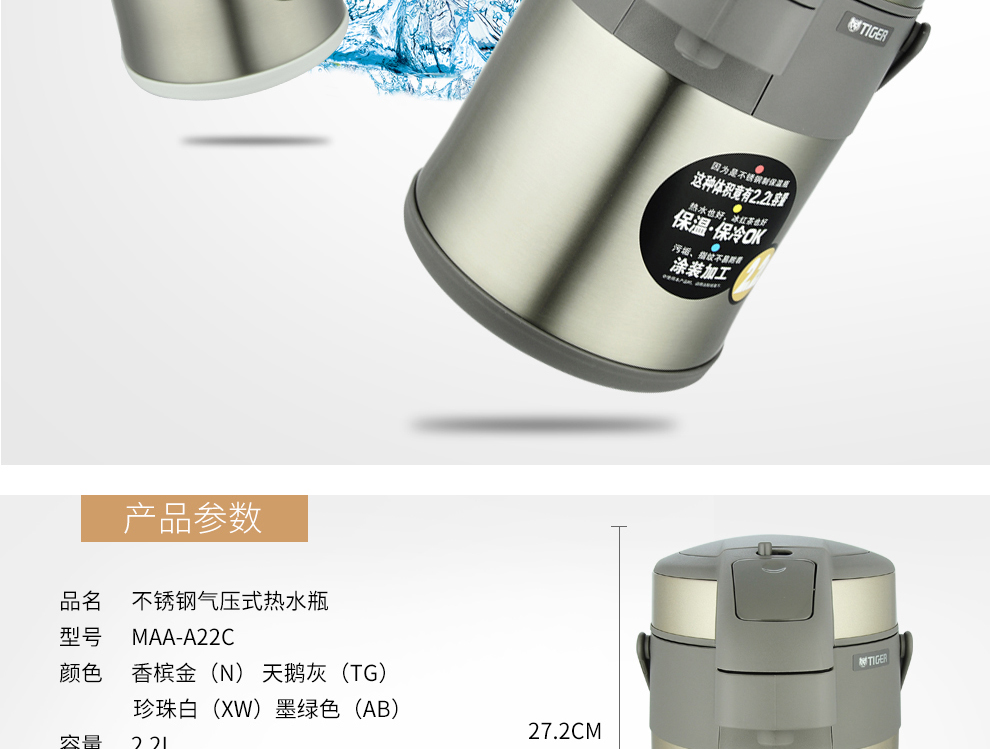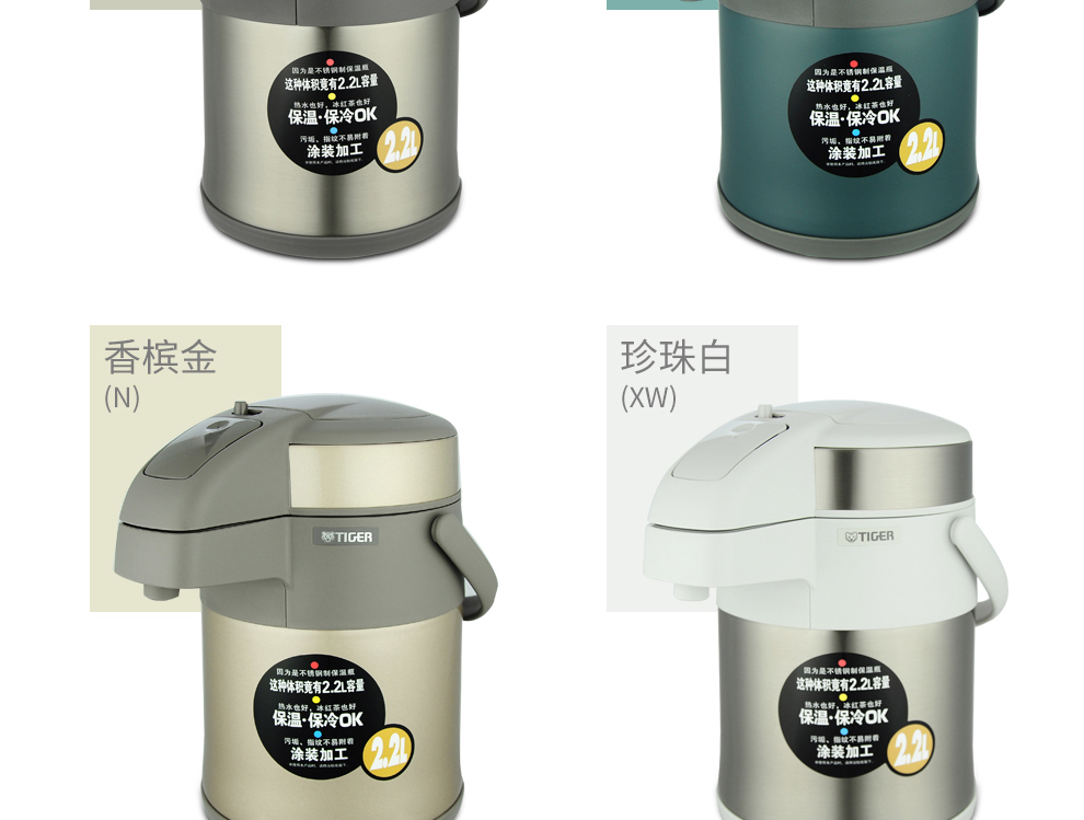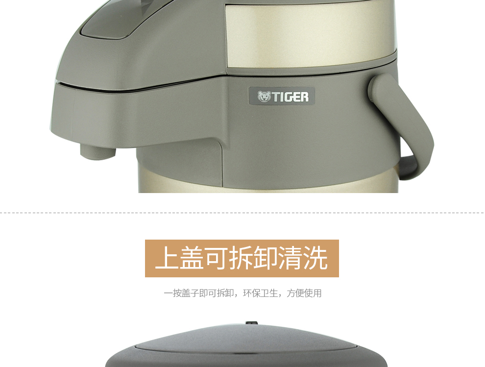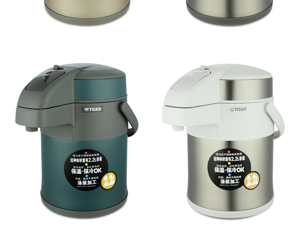 Tiger (TIGER) Tiger thermos cup air pressure thermos kettle with tea filter tea cup set 2.2L gold thermos kettle 2.2L + steel color thermos cup 500ml