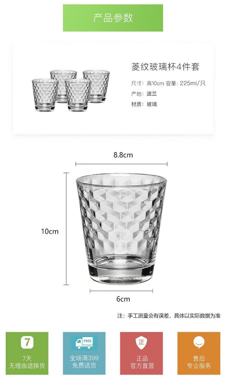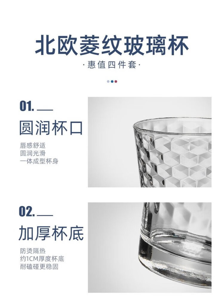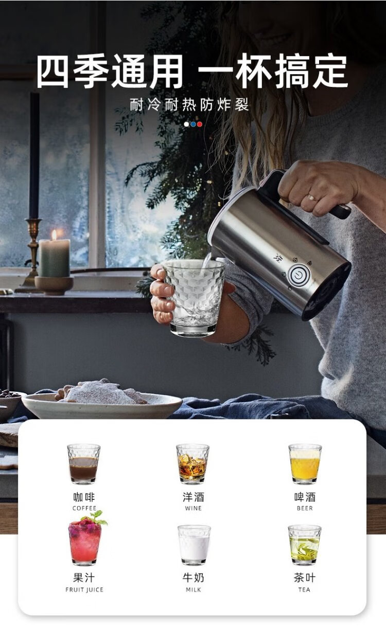 WMF Futenbao glass, diamond pattern glass water cup, household drinking cup set, diamond pattern latte cup four-piece set, diamond pattern glass cup four-piece set
