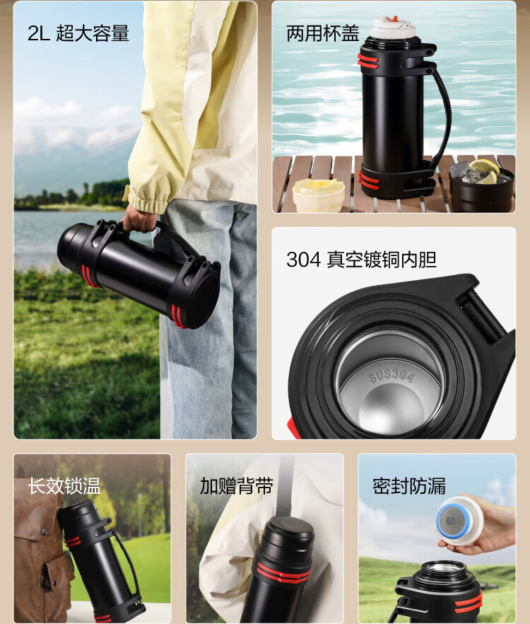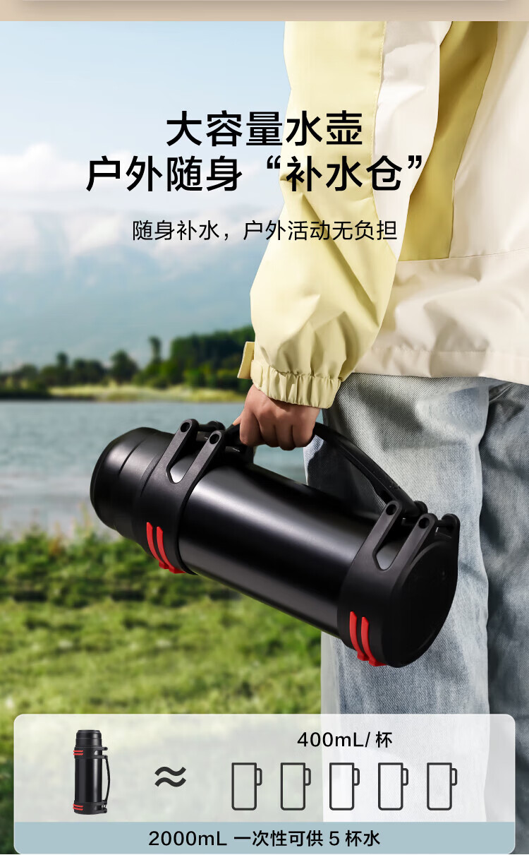 Thermos kettle made in Tokyo, large capacity, portable thermos, outdoor travel cup, 304 stainless steel 2L