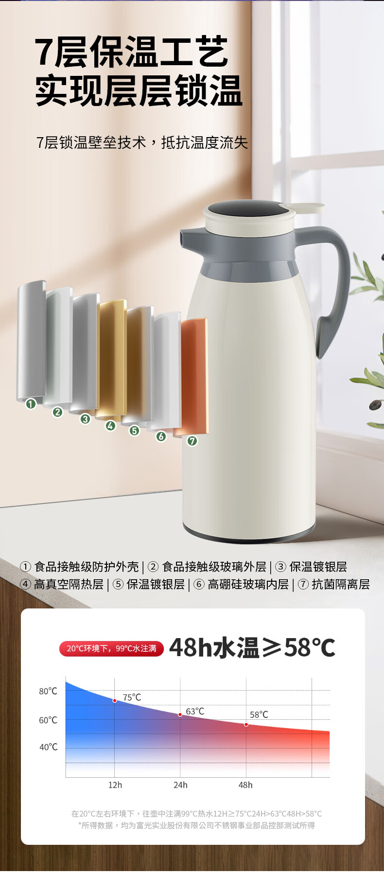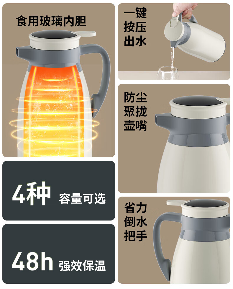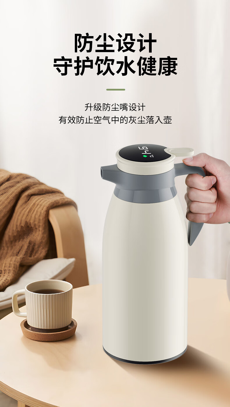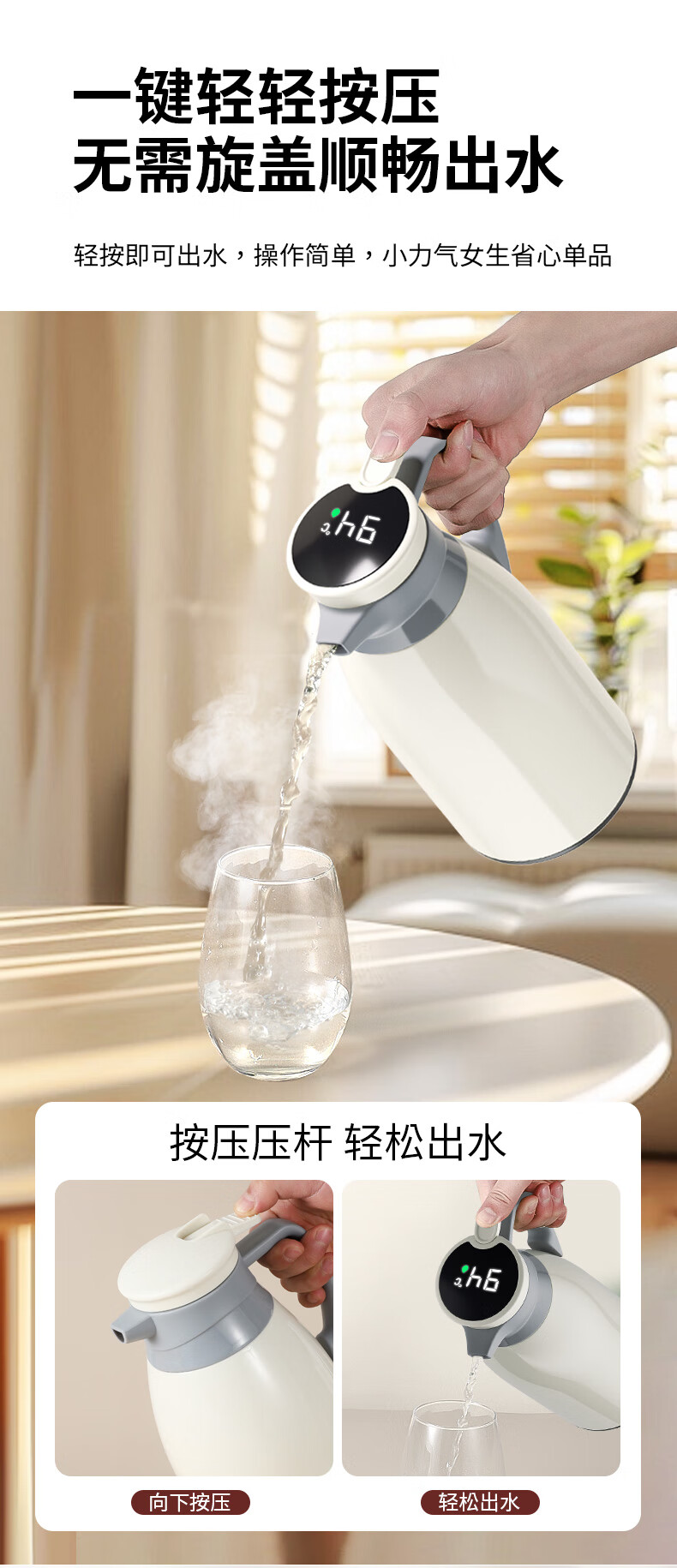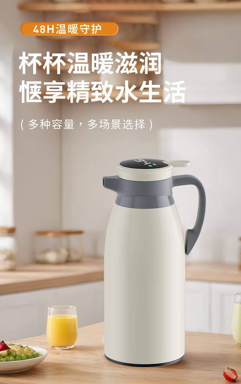 Insulated kettle household large capacity insulated kettle hot water kettle thermos water bottle dormitory thermos tea bottle cup thermos off-white 1.9L digital display model