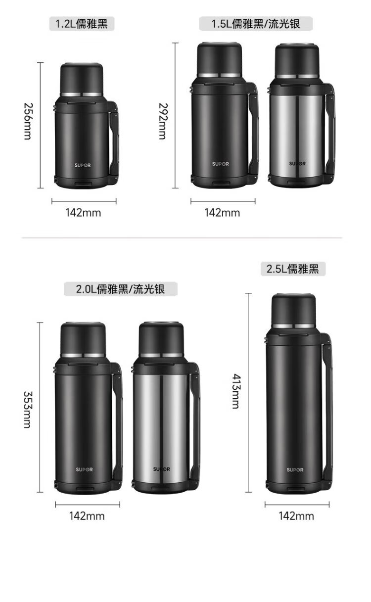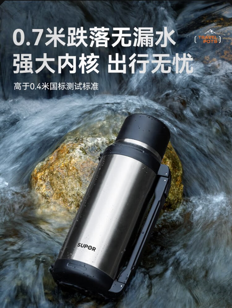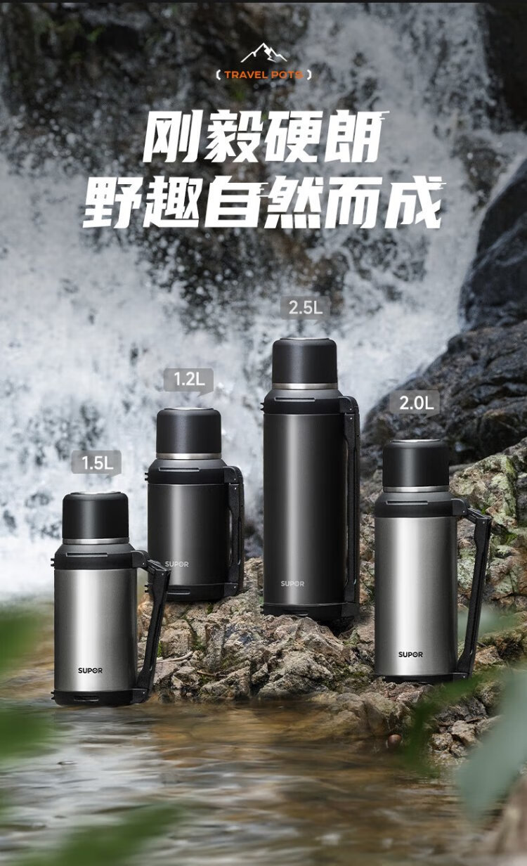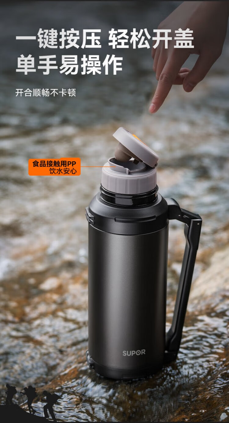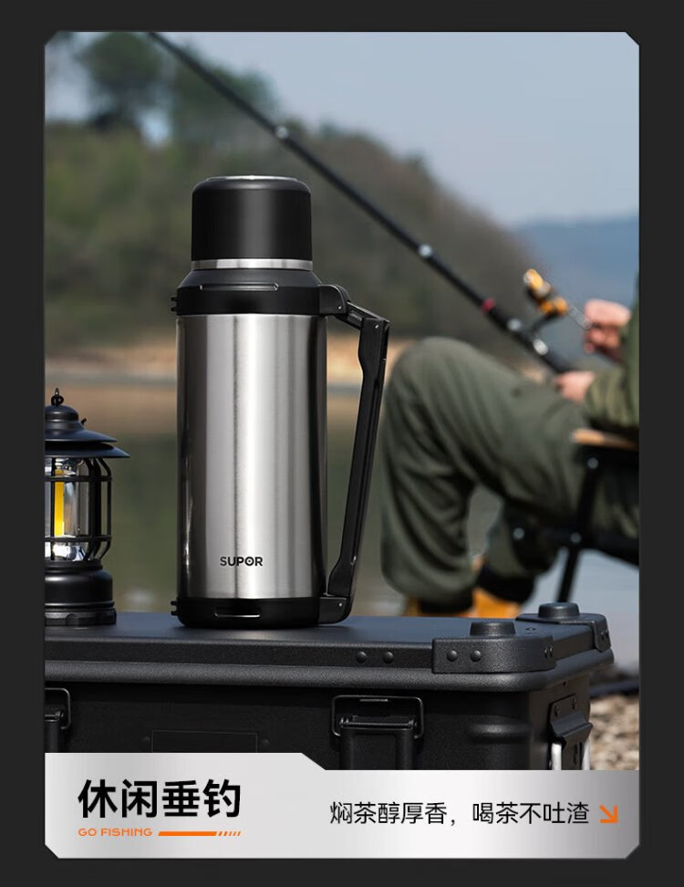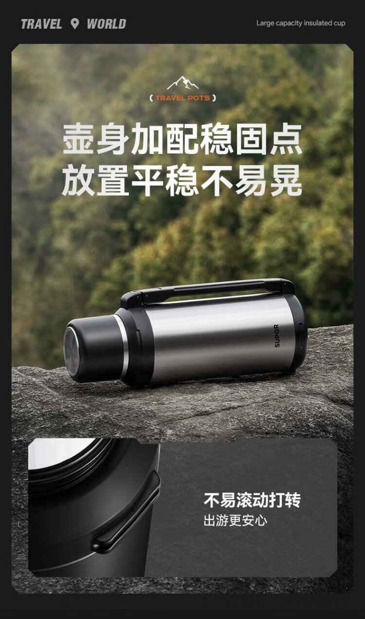 SUPOR thermos kettle large capacity stainless steel 72-hour thermos kettle thermos outdoor travel kettle portable car cup elegant black 2L upgraded 316L stainless steel + tea filter + strap