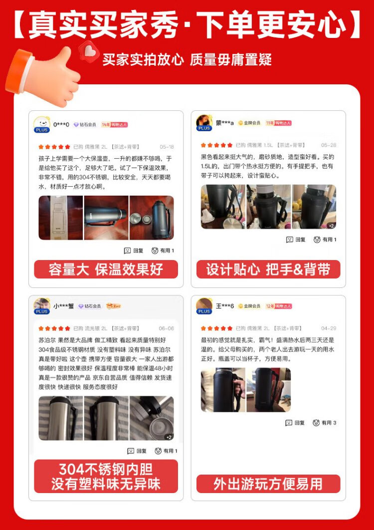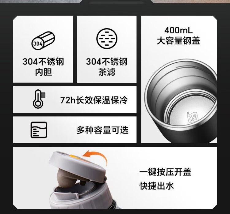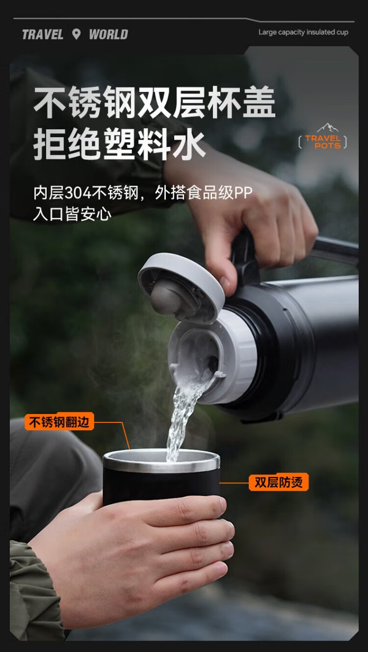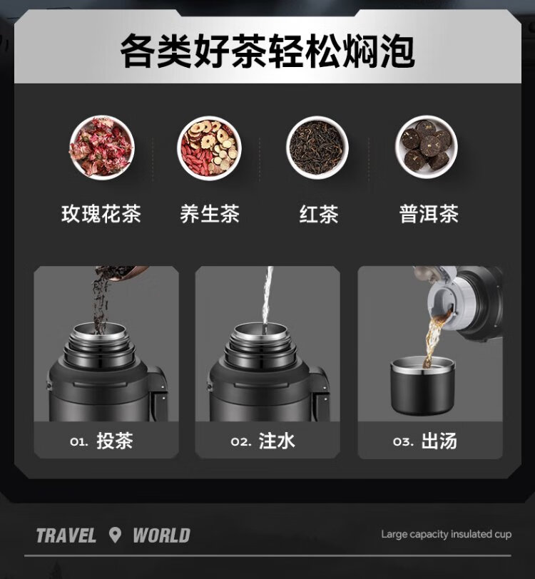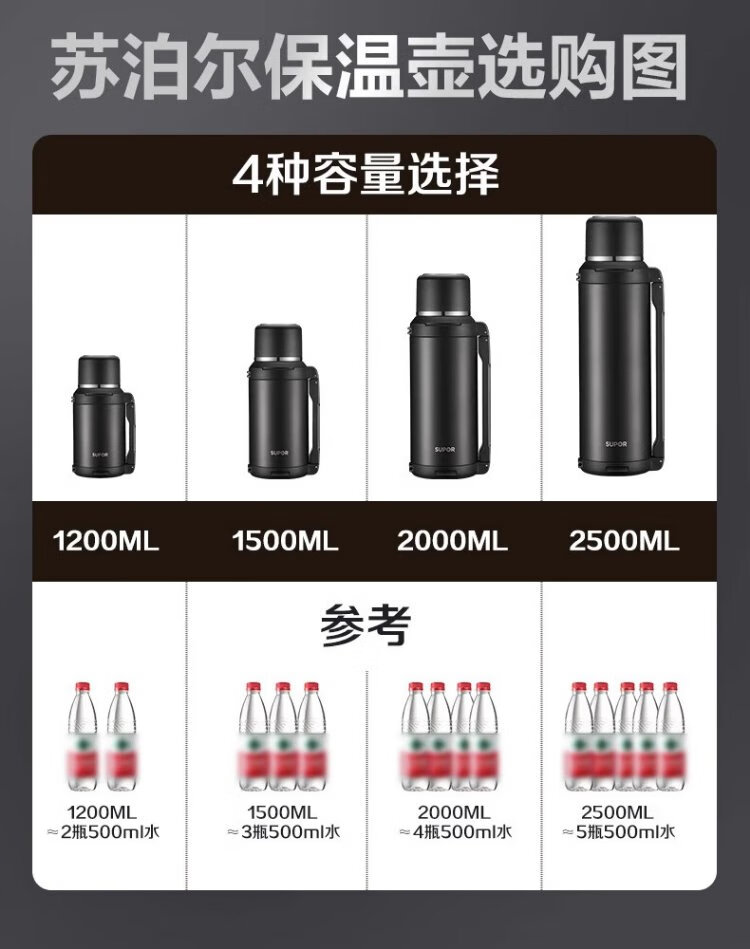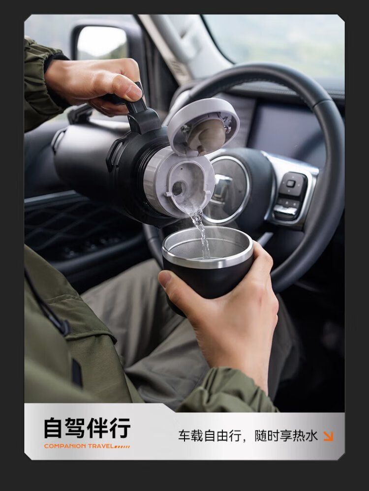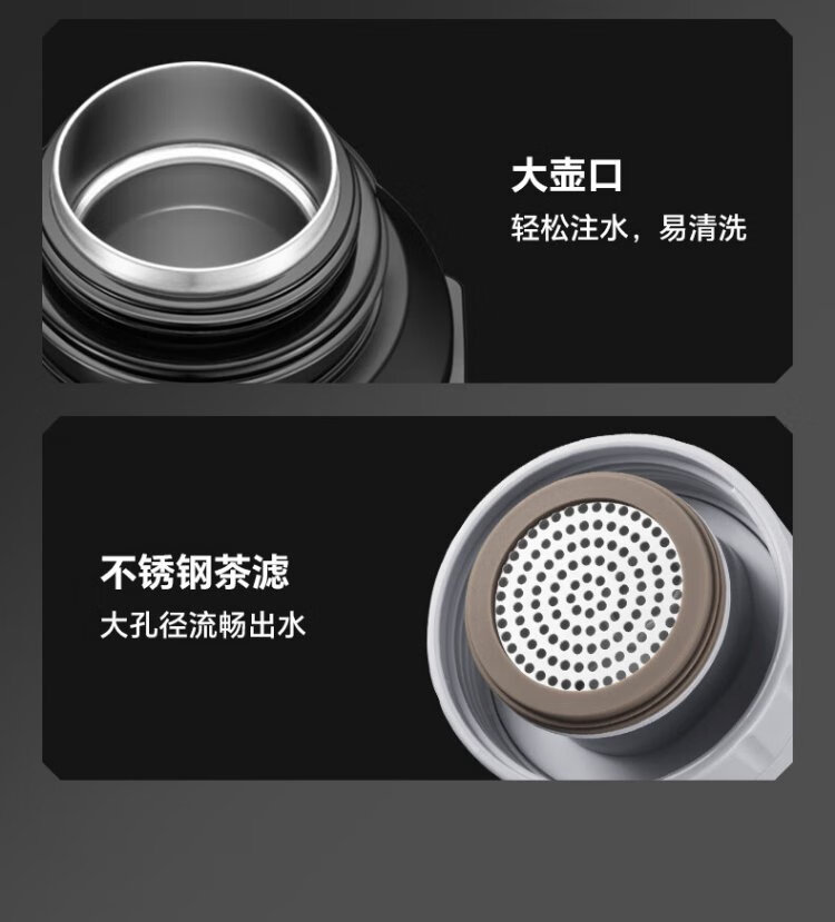 SUPOR thermos kettle large capacity stainless steel 72-hour thermos kettle thermos outdoor travel kettle portable car cup elegant black 2L upgraded 316L stainless steel + tea filter + strap
