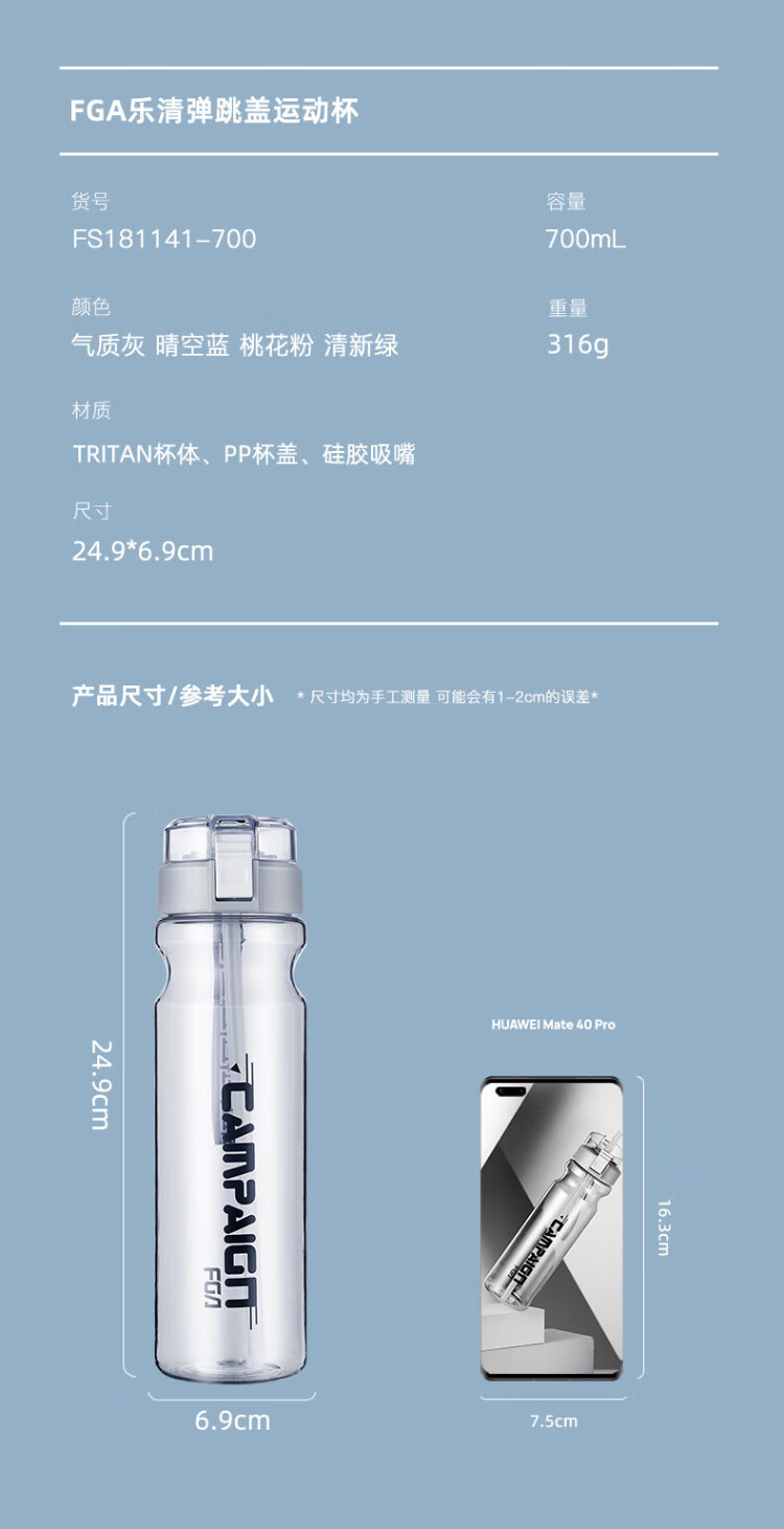 FGA Fuguang plastic cup large capacity tritan children's sippy cup sports water cup male and female student kettle 700ml