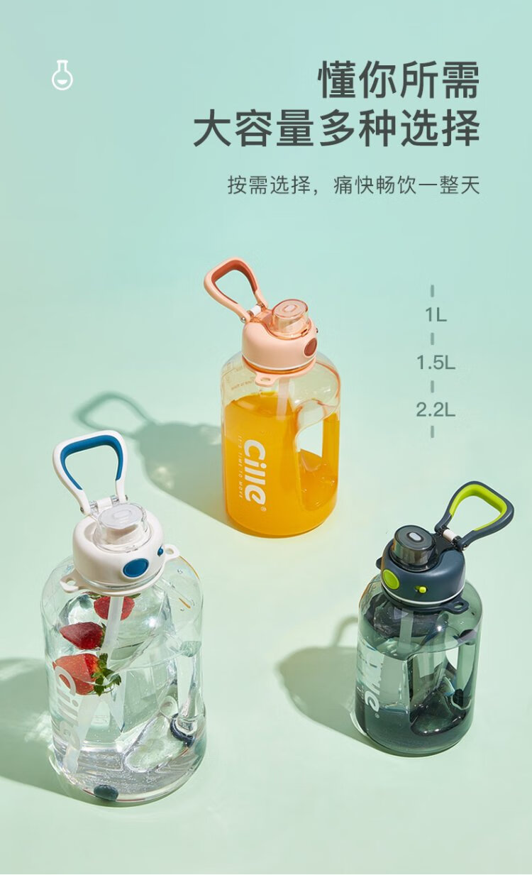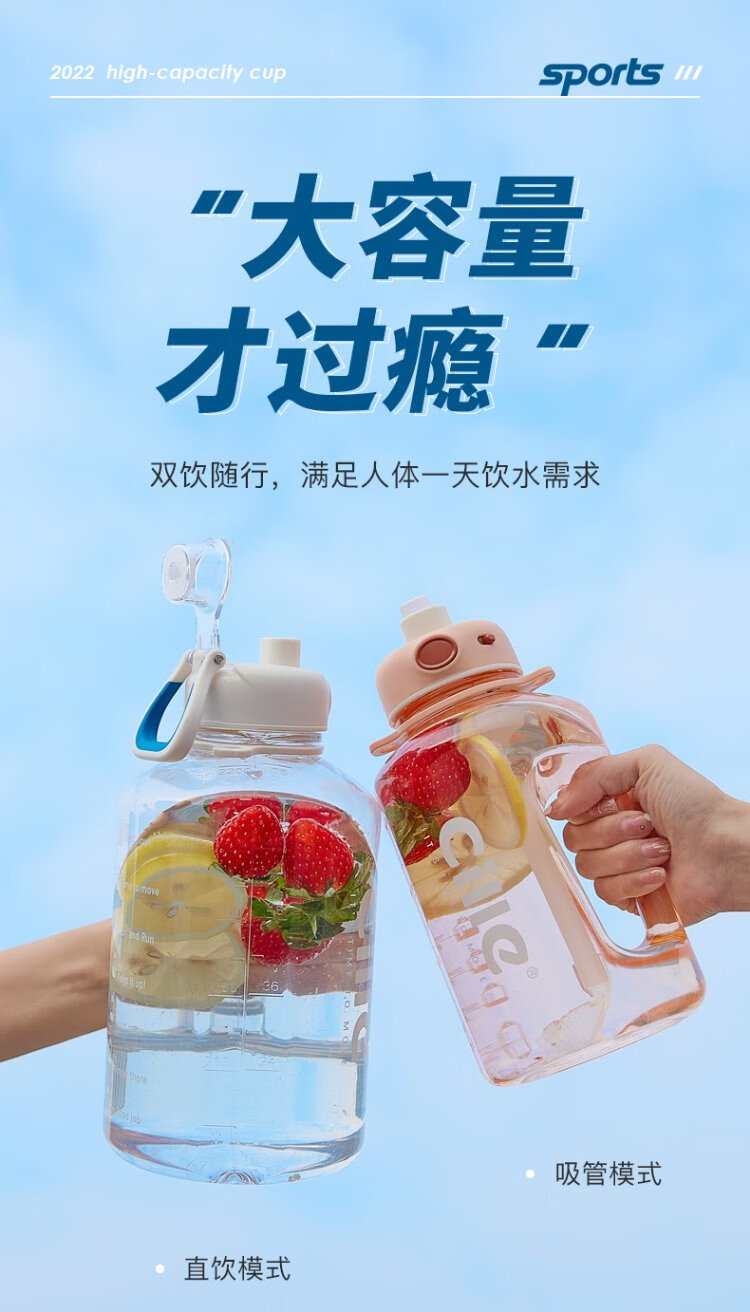 Xile extra large capacity water cup for men and women fitness tritan material plastic straw water cup with scale large capacity kettle