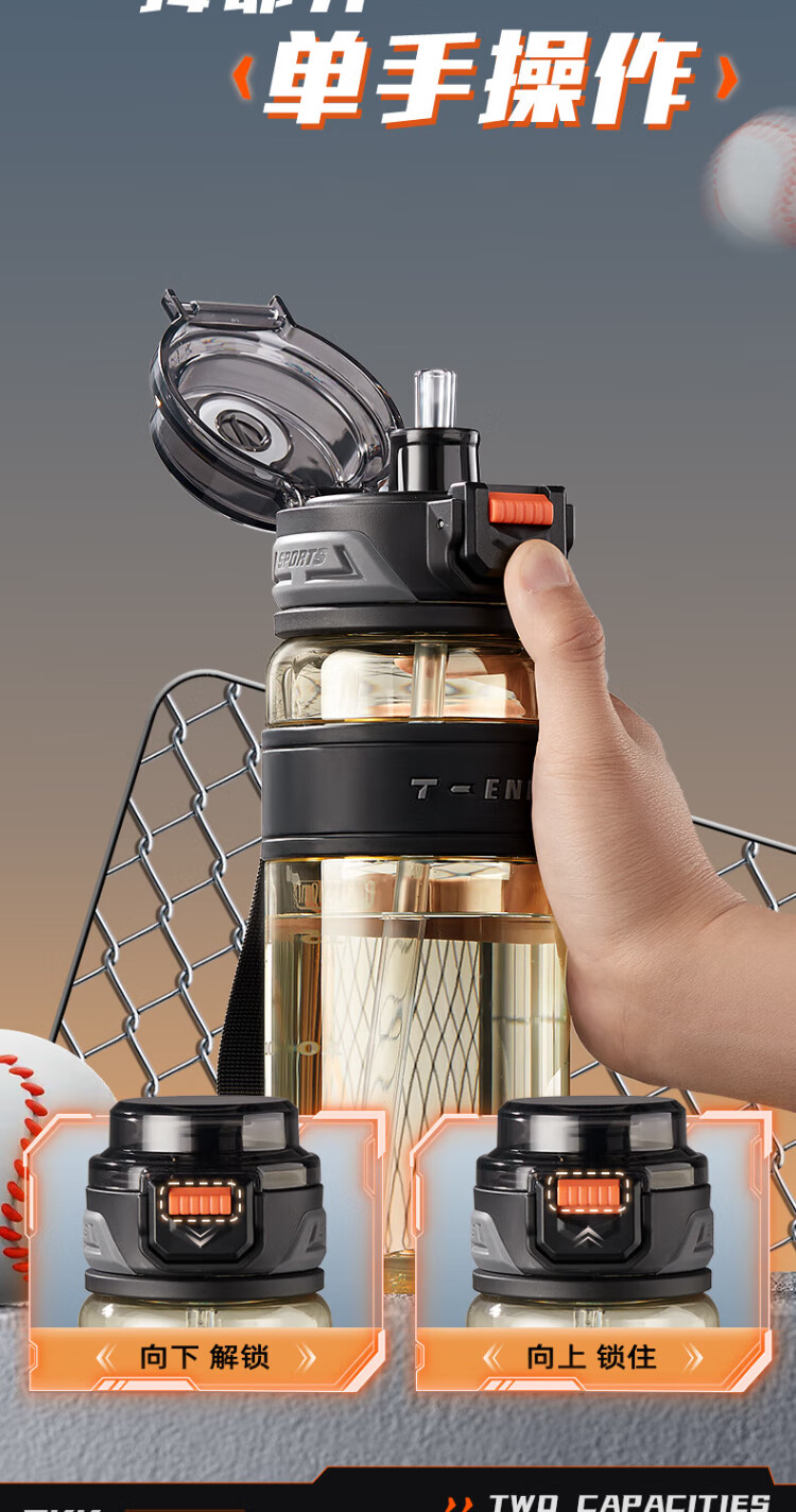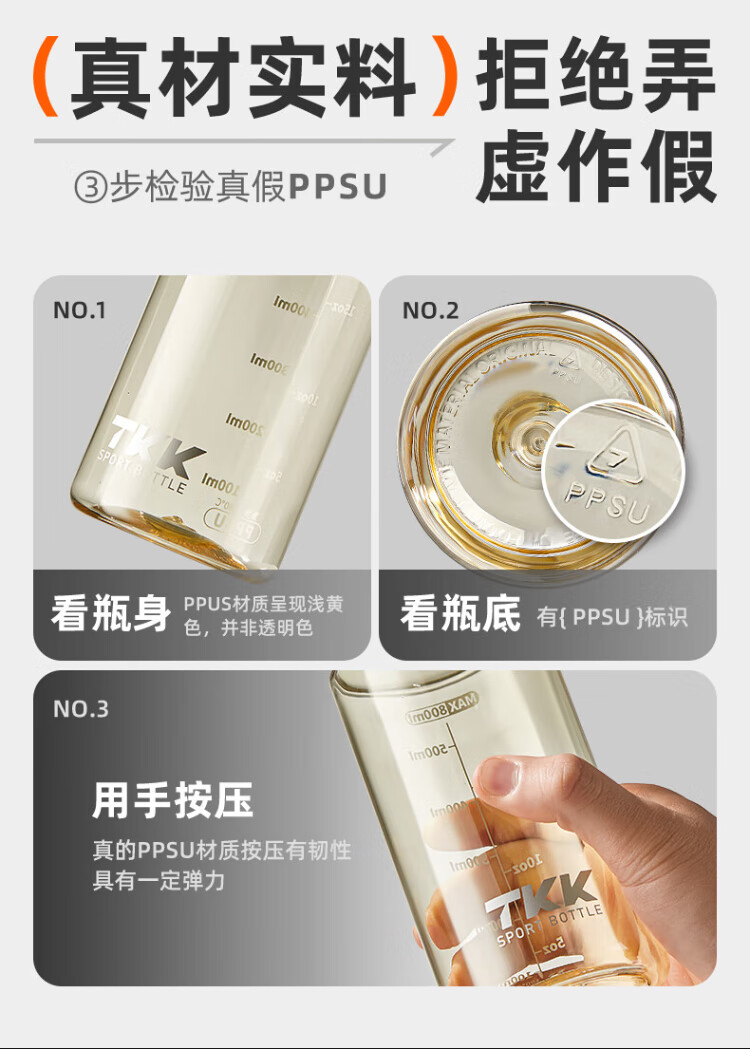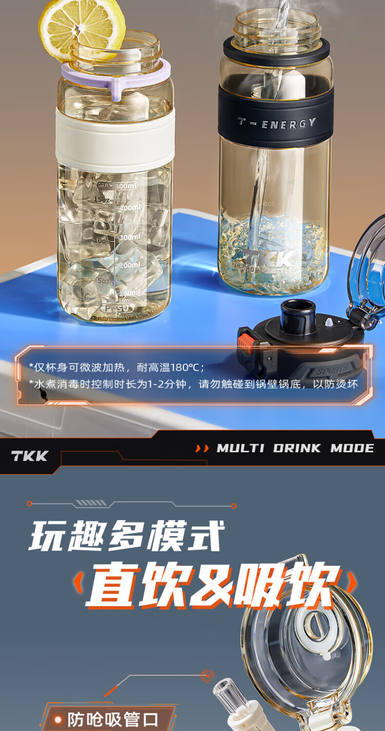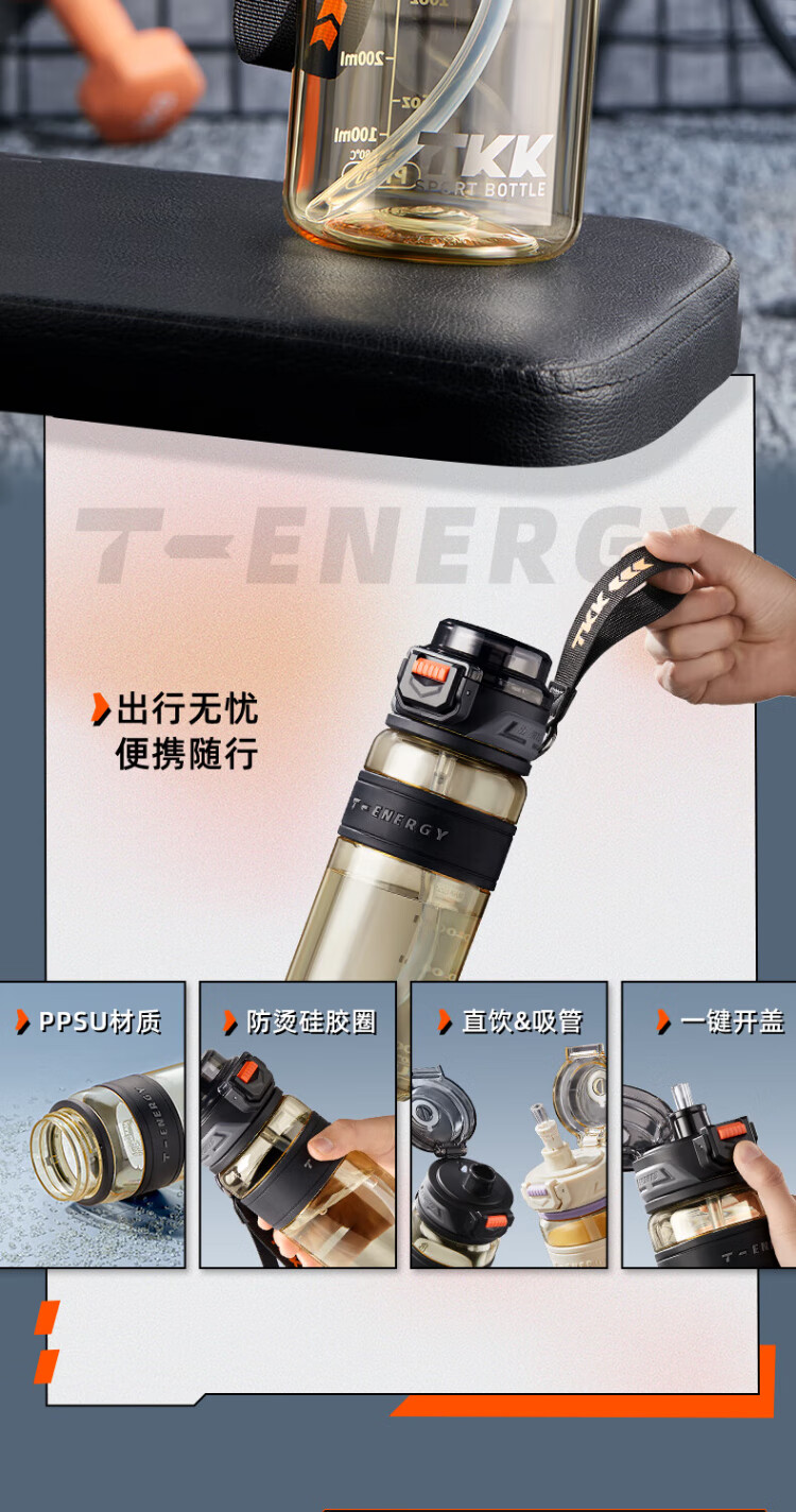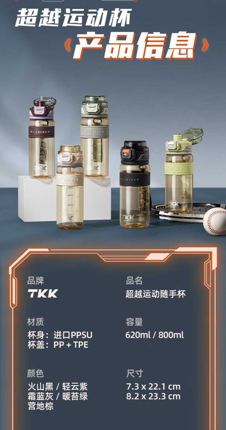 TKK water cup plastic cup food grade ppsu sports water bottle student children go to school special high temperature resistant military training large cup