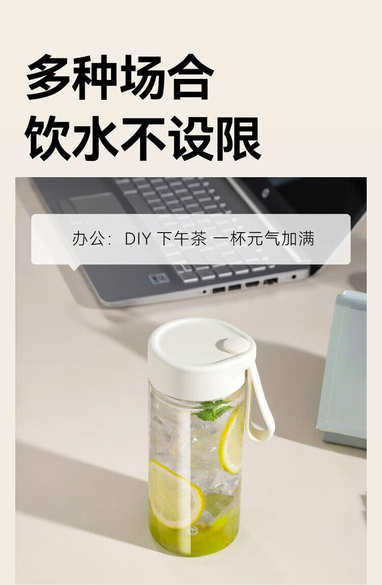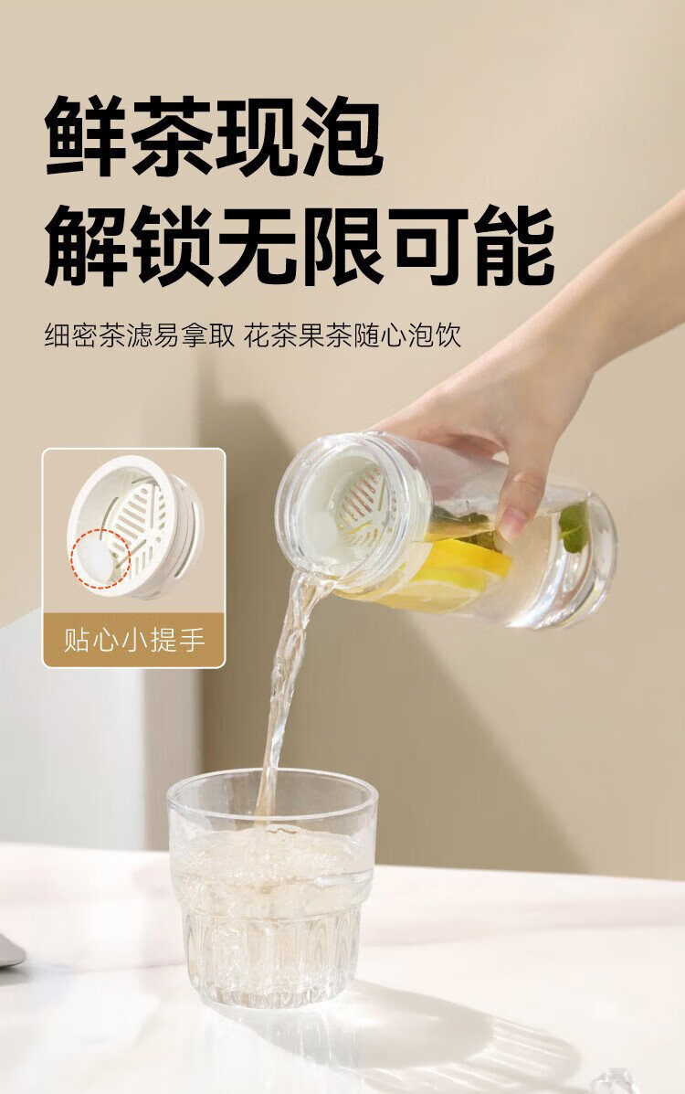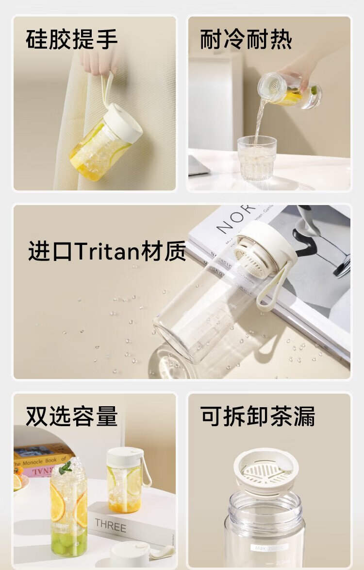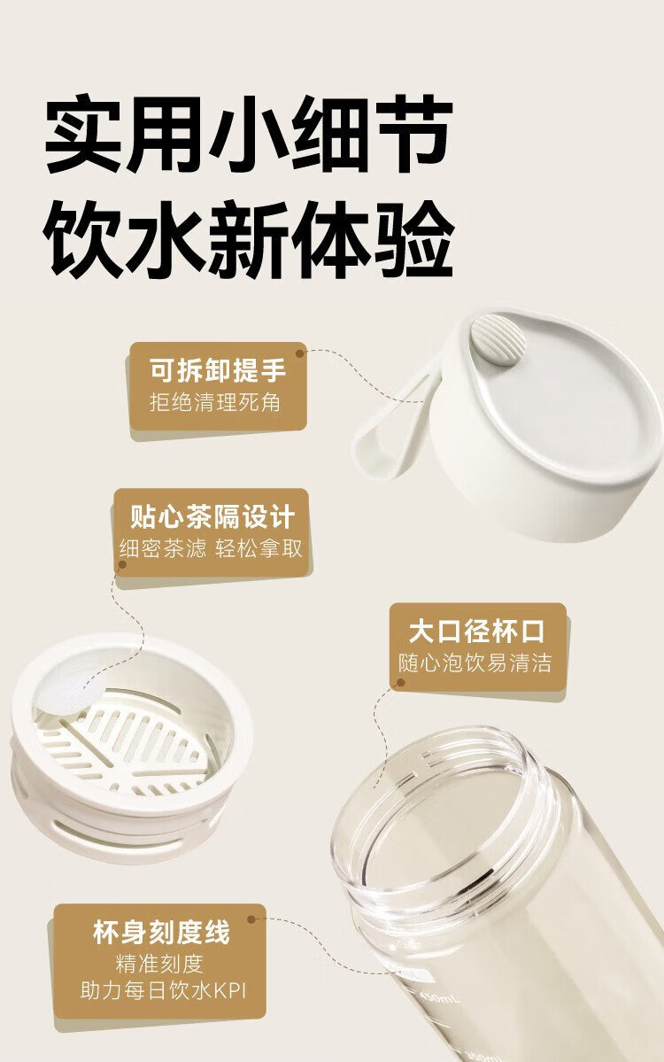 Jing Tokyo Water Cup Sports Large Capacity Student and Children's Cup Tea Water Separation Tritan Heat-Resistant Tea Cup White 550ml