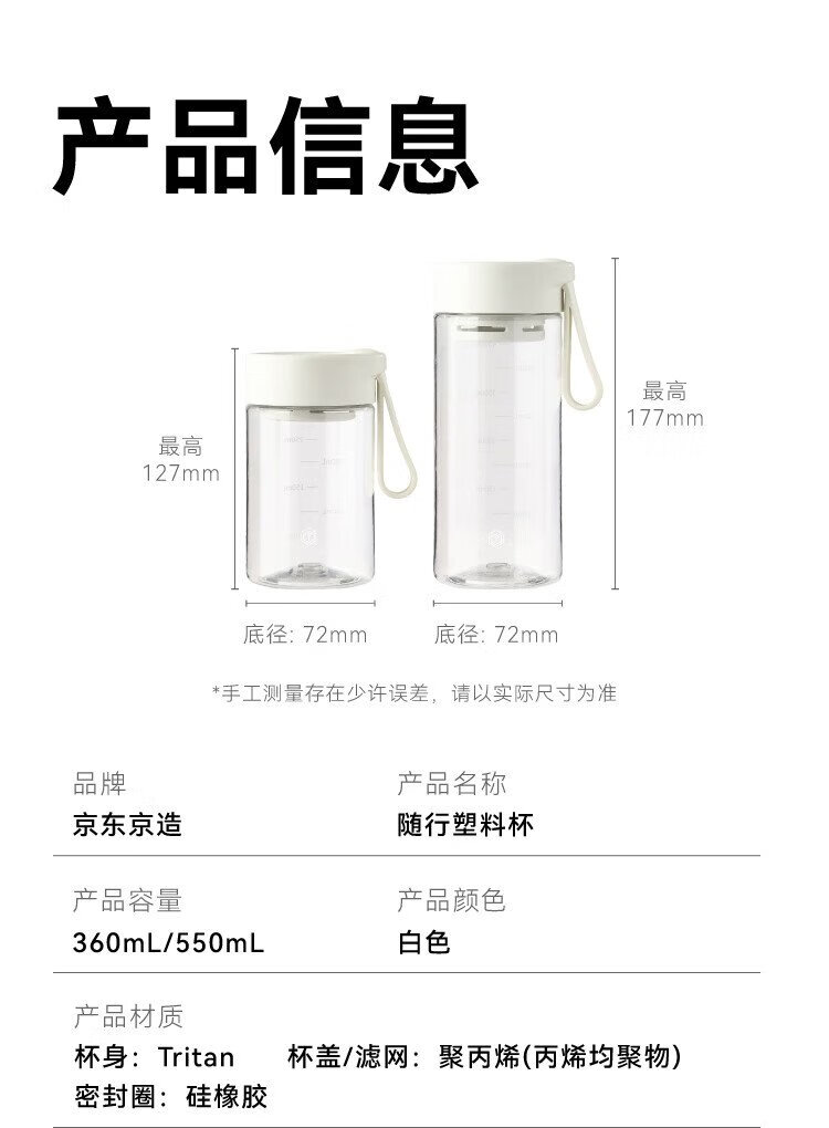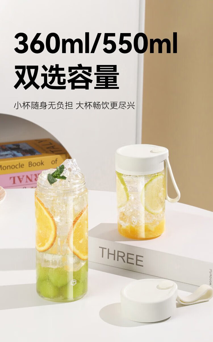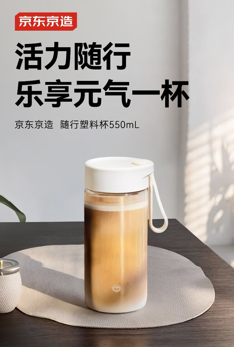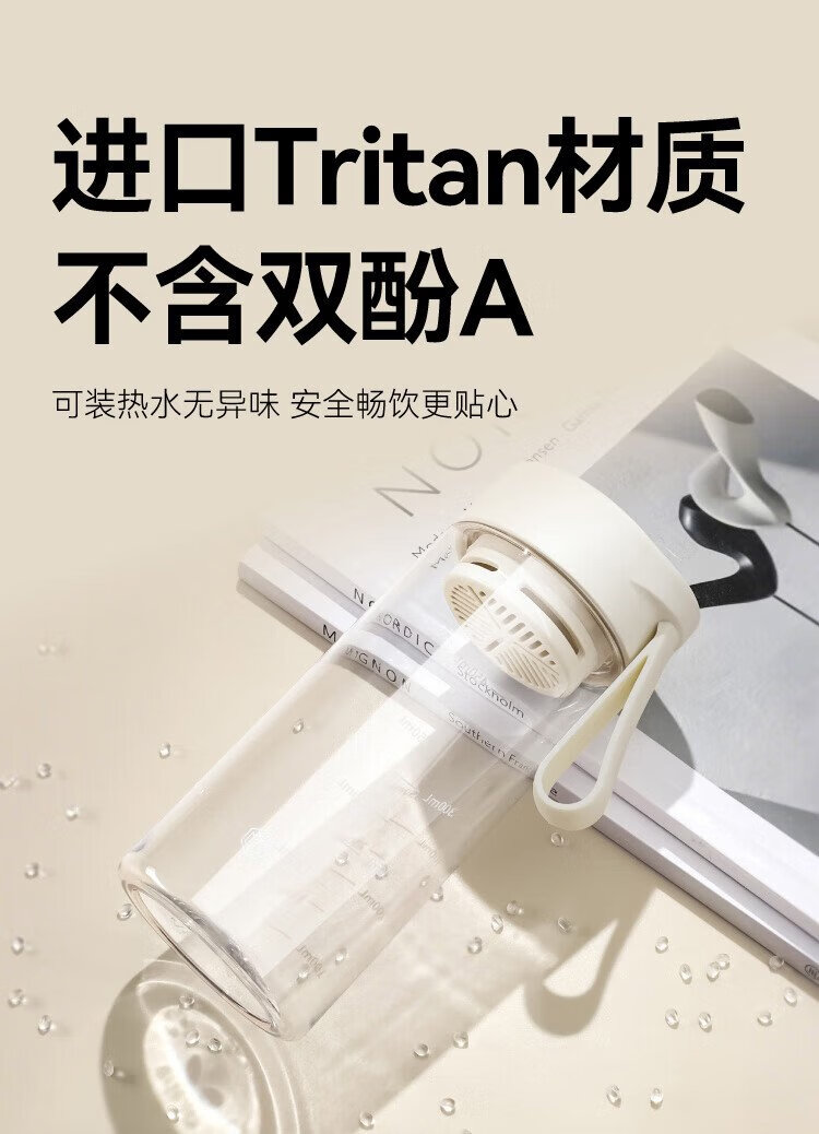 Jing Tokyo Water Cup Sports Large Capacity Student and Children's Cup Tea Water Separation Tritan Heat-Resistant Tea Cup White 550ml