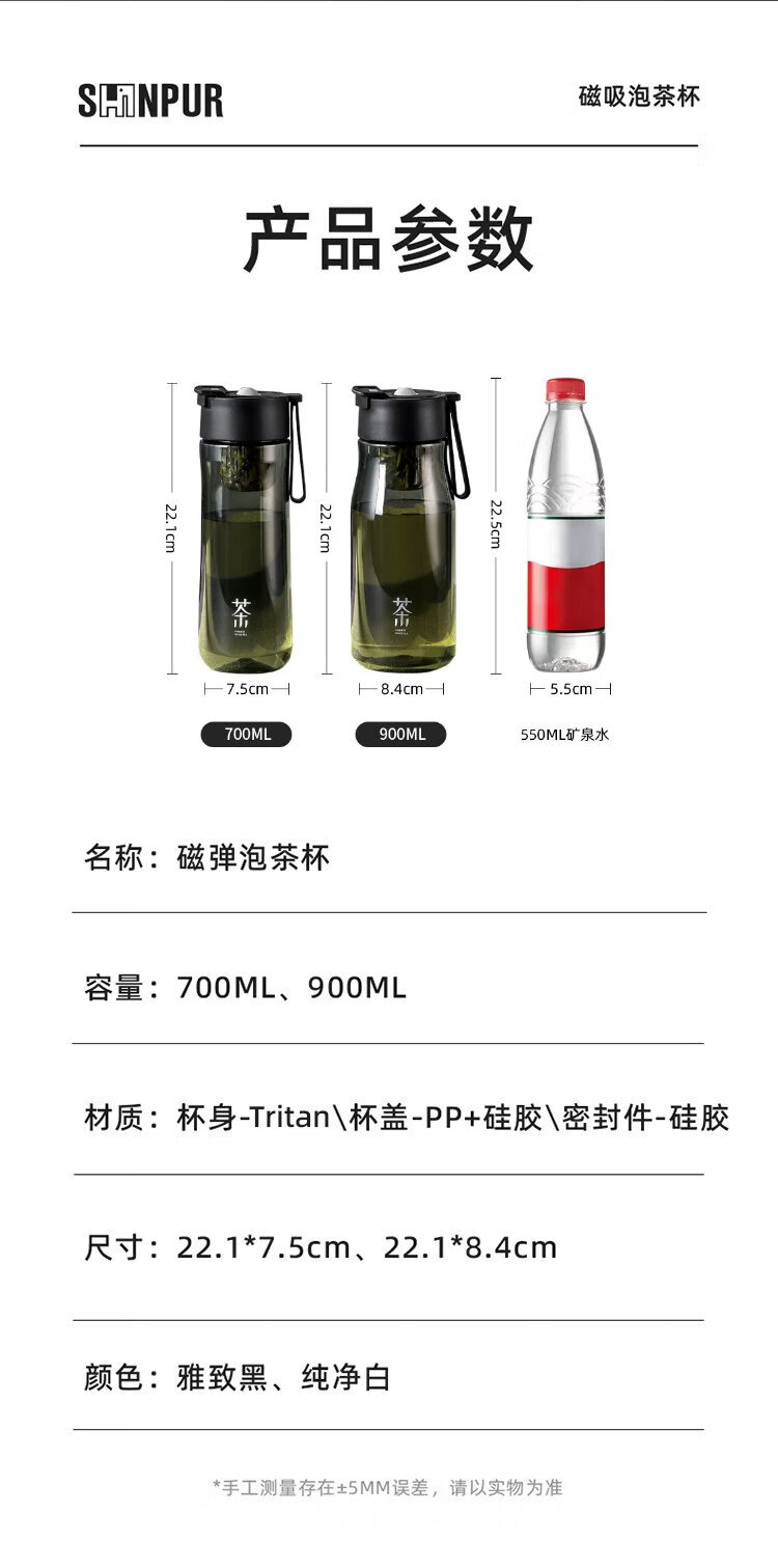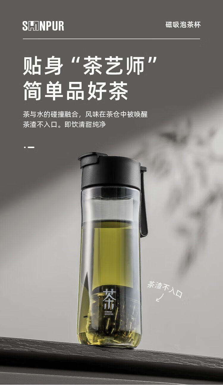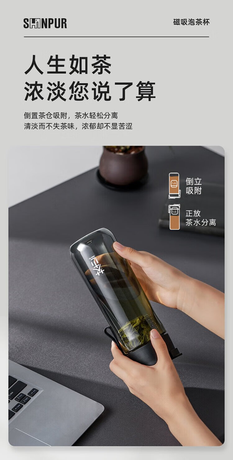 SHINPUR magnetic tea cup for men and women, portable large capacity, car-mounted tea and water separation, office tea cup, black 700ml