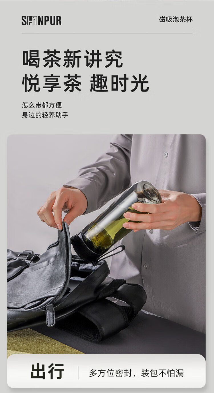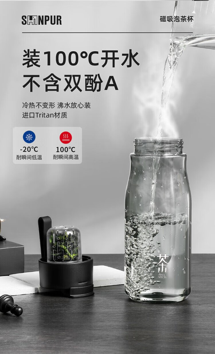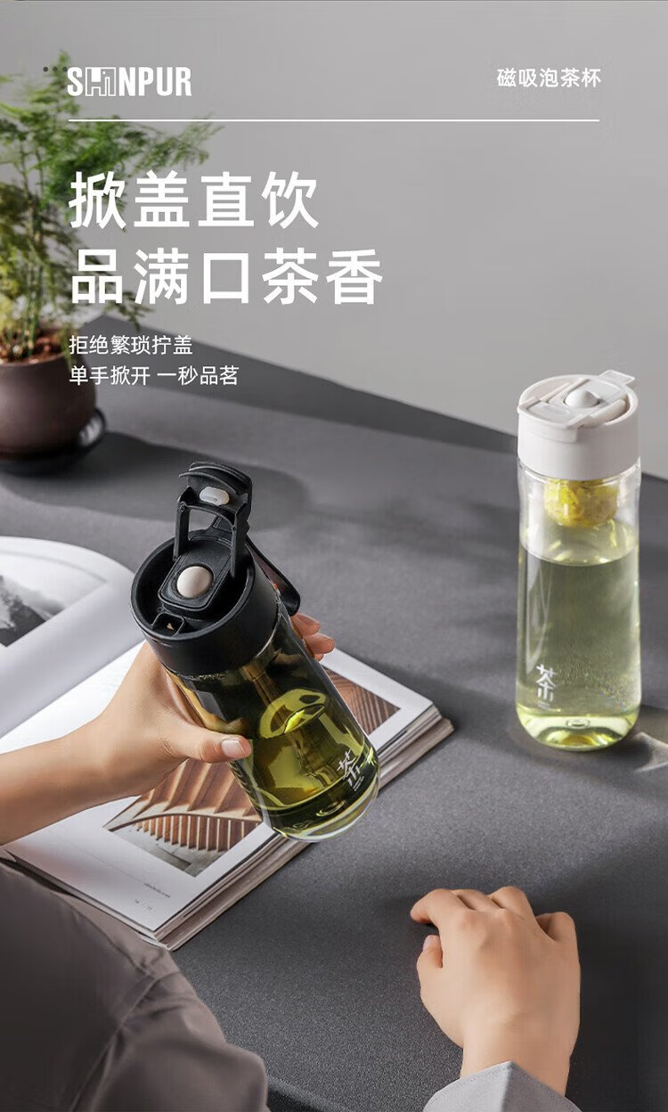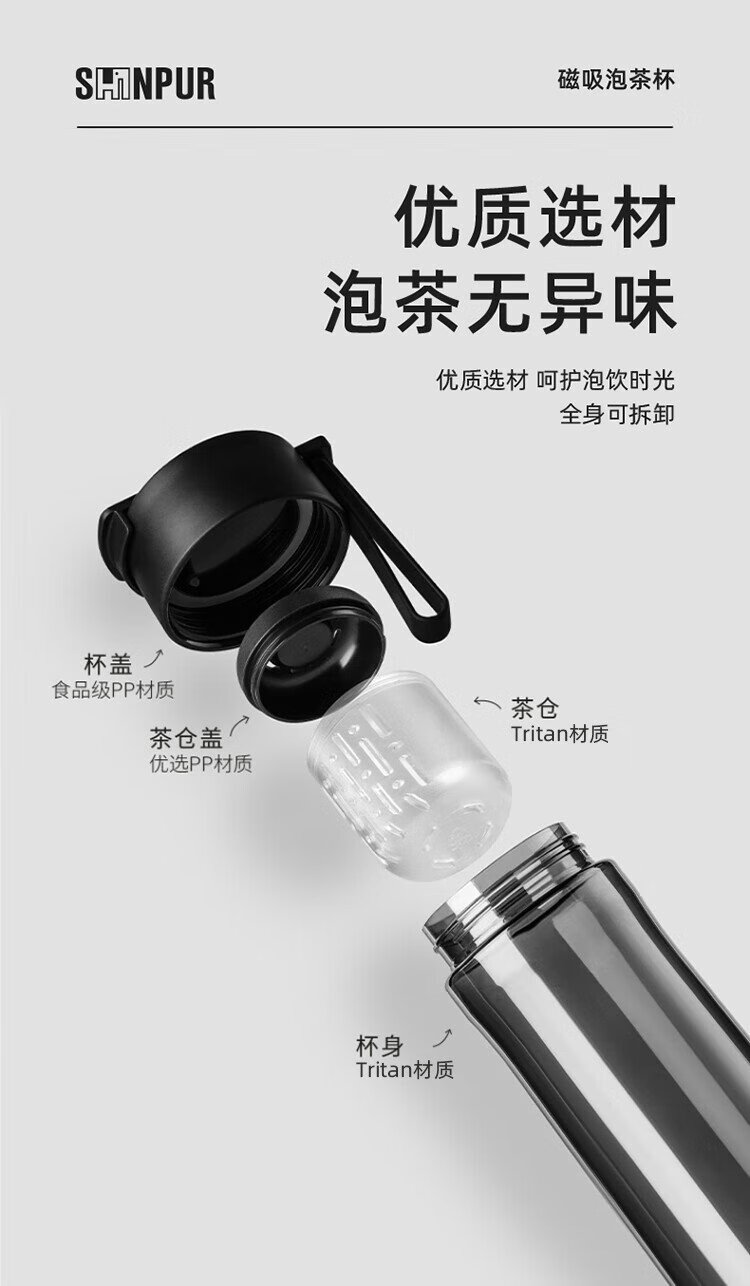 SHINPUR magnetic tea cup for men and women, portable large capacity, car-mounted tea and water separation, office tea cup, black 700ml