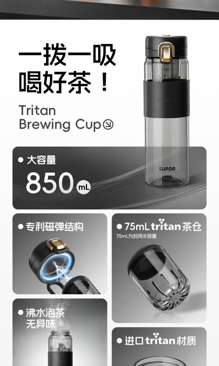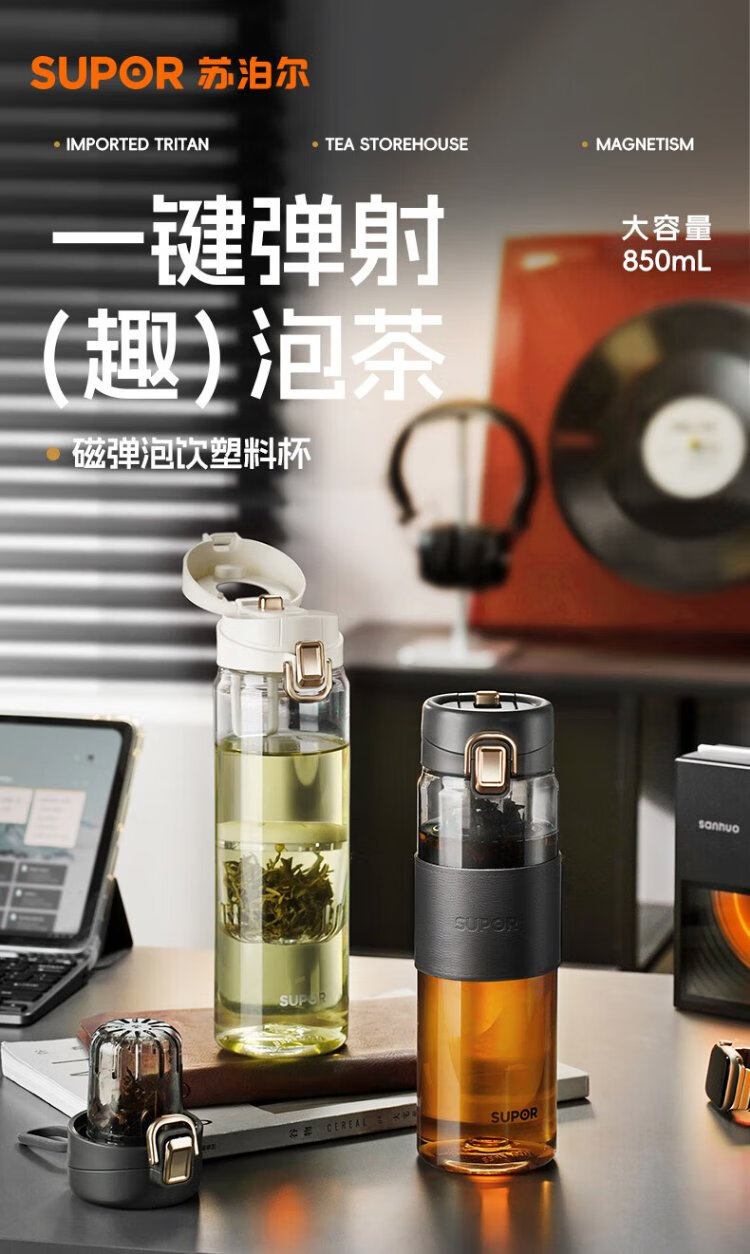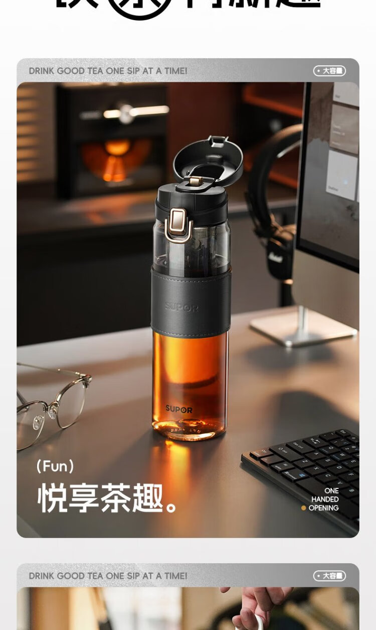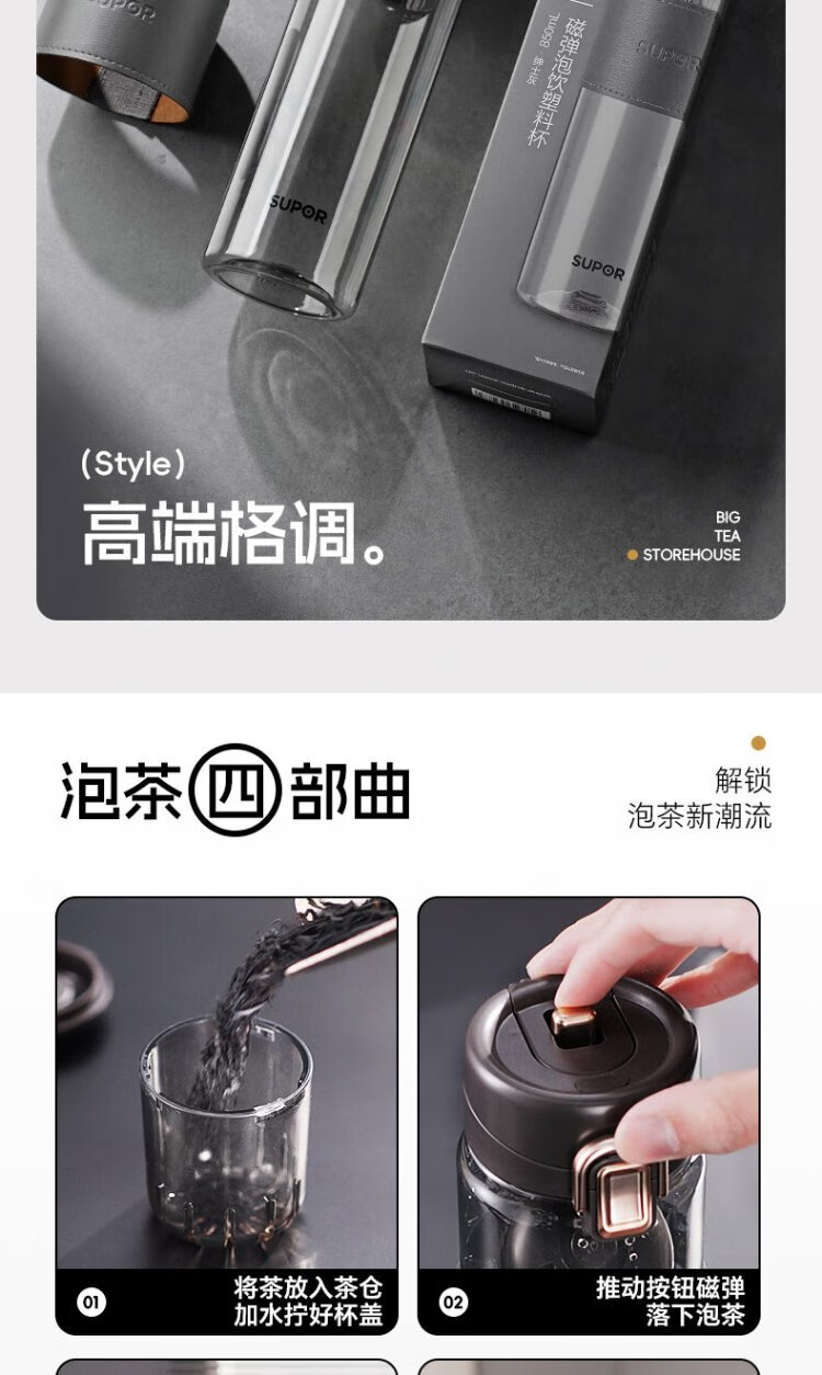 Supor Tea Water Separation Cup Magnetic Elastic Tea Cup Portable Travel Cup Summer Sports Large Capacity Plastic Tritan Water Cup