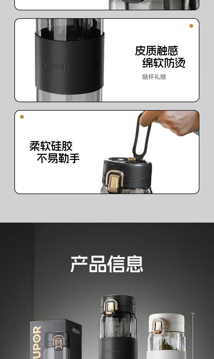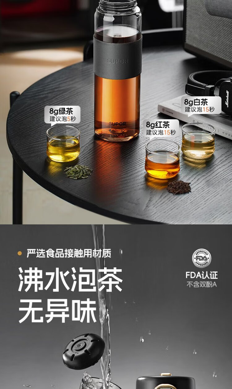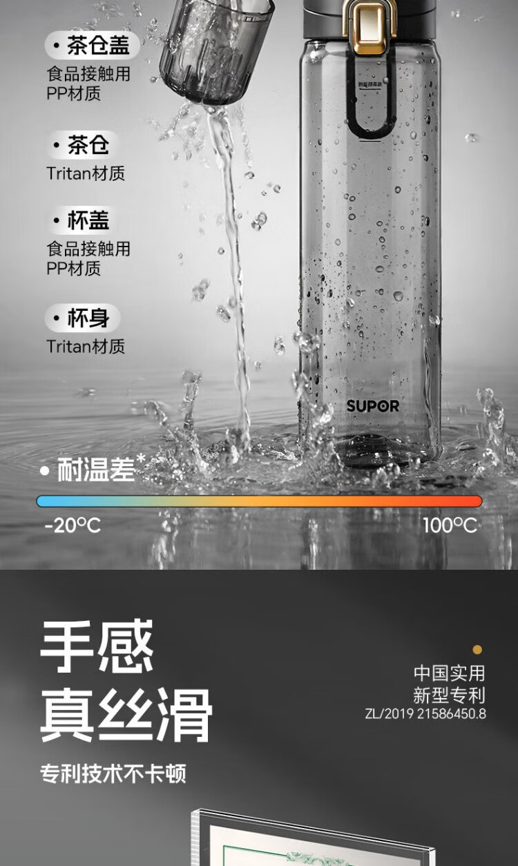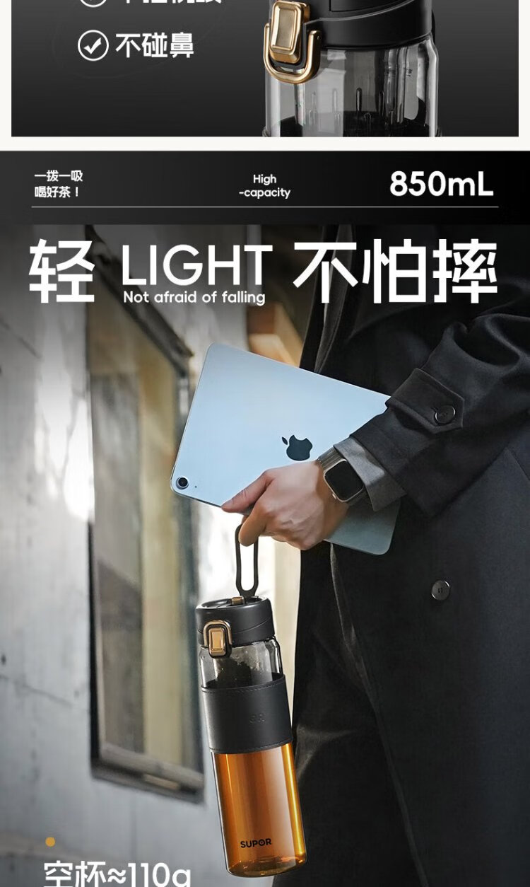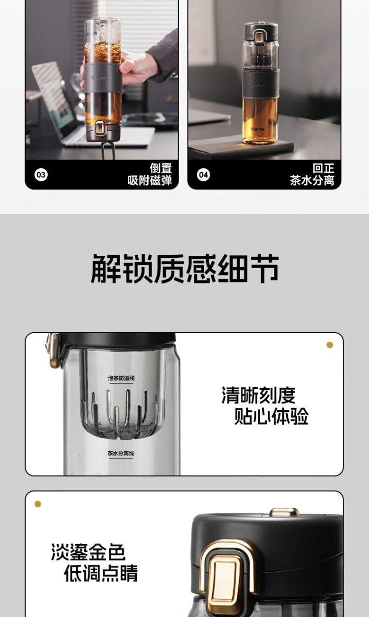 Supor Tea Water Separation Cup Magnetic Elastic Tea Cup Portable Travel Cup Summer Sports Large Capacity Plastic Tritan Water Cup