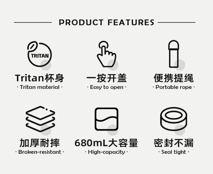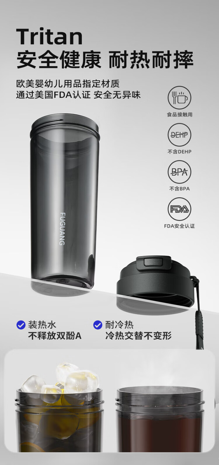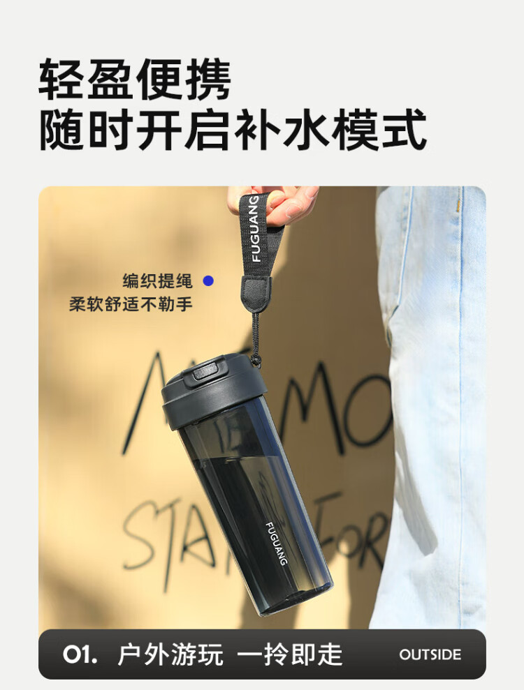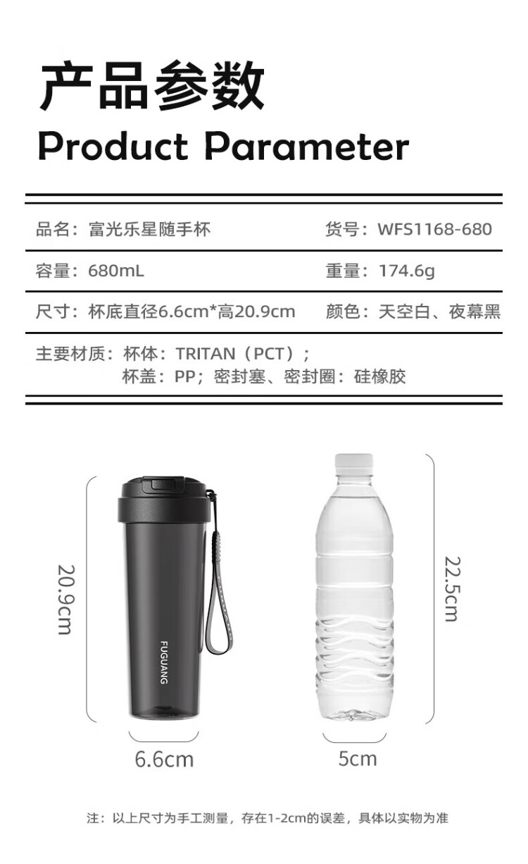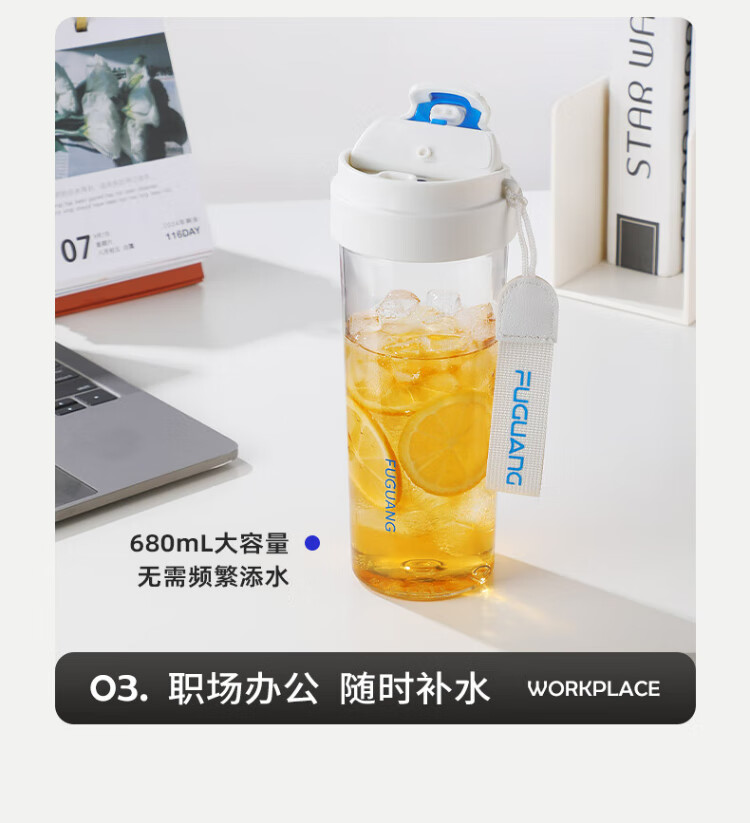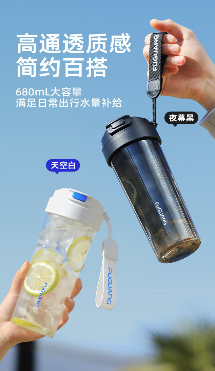 Fuguang large capacity tritan plastic portable tea cup for men and women student sports outdoor summer 680ml