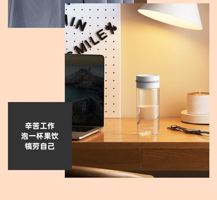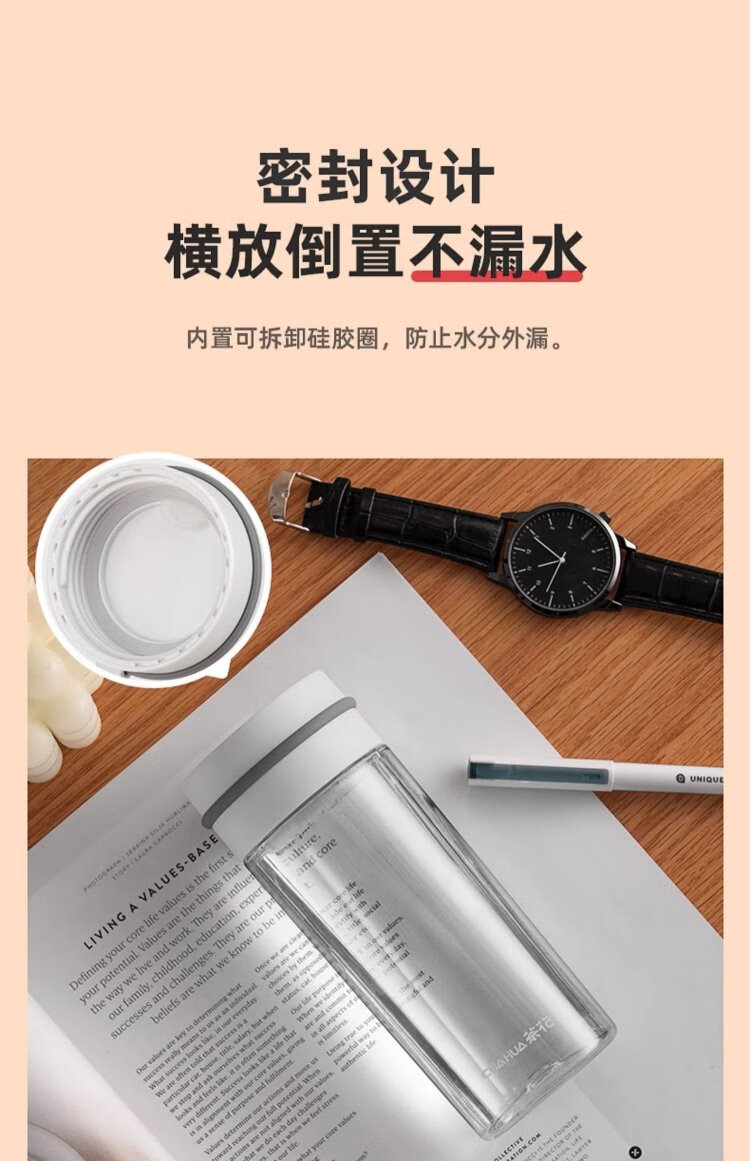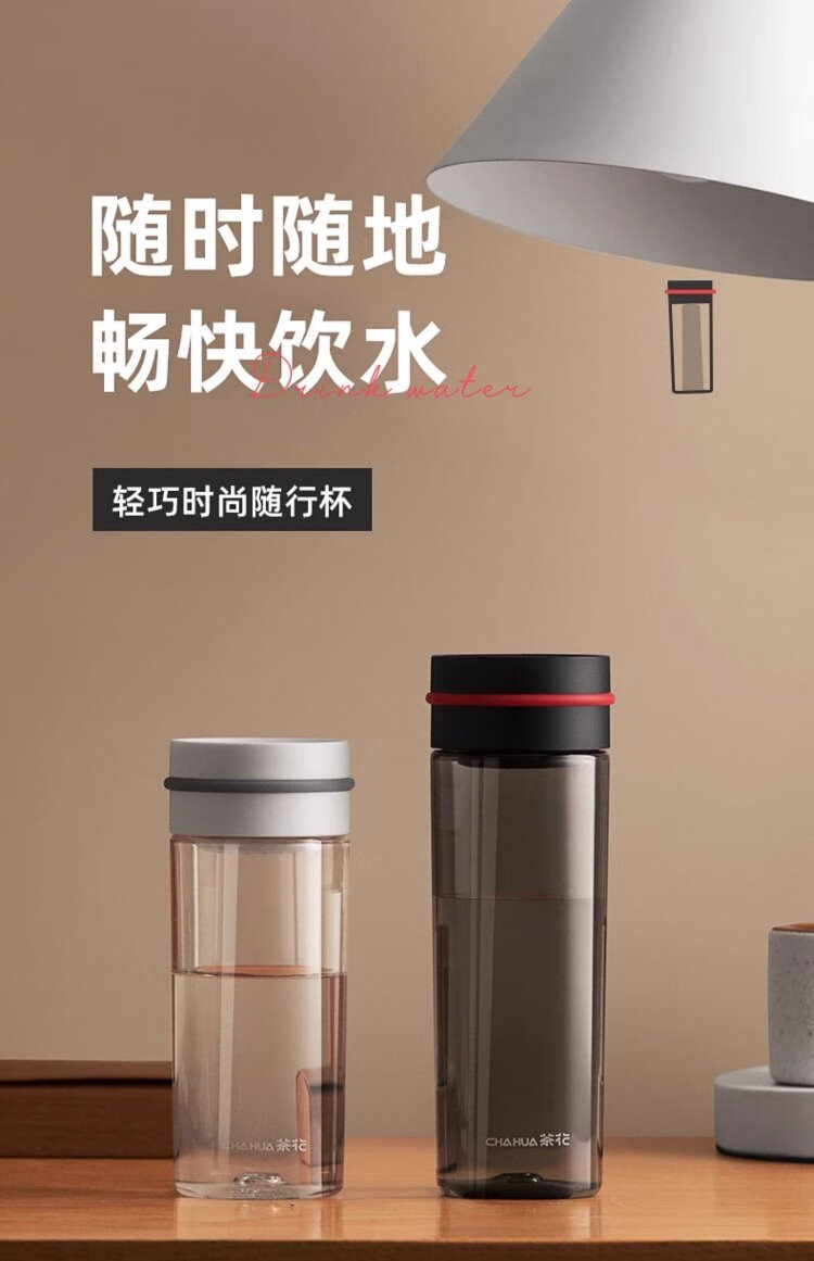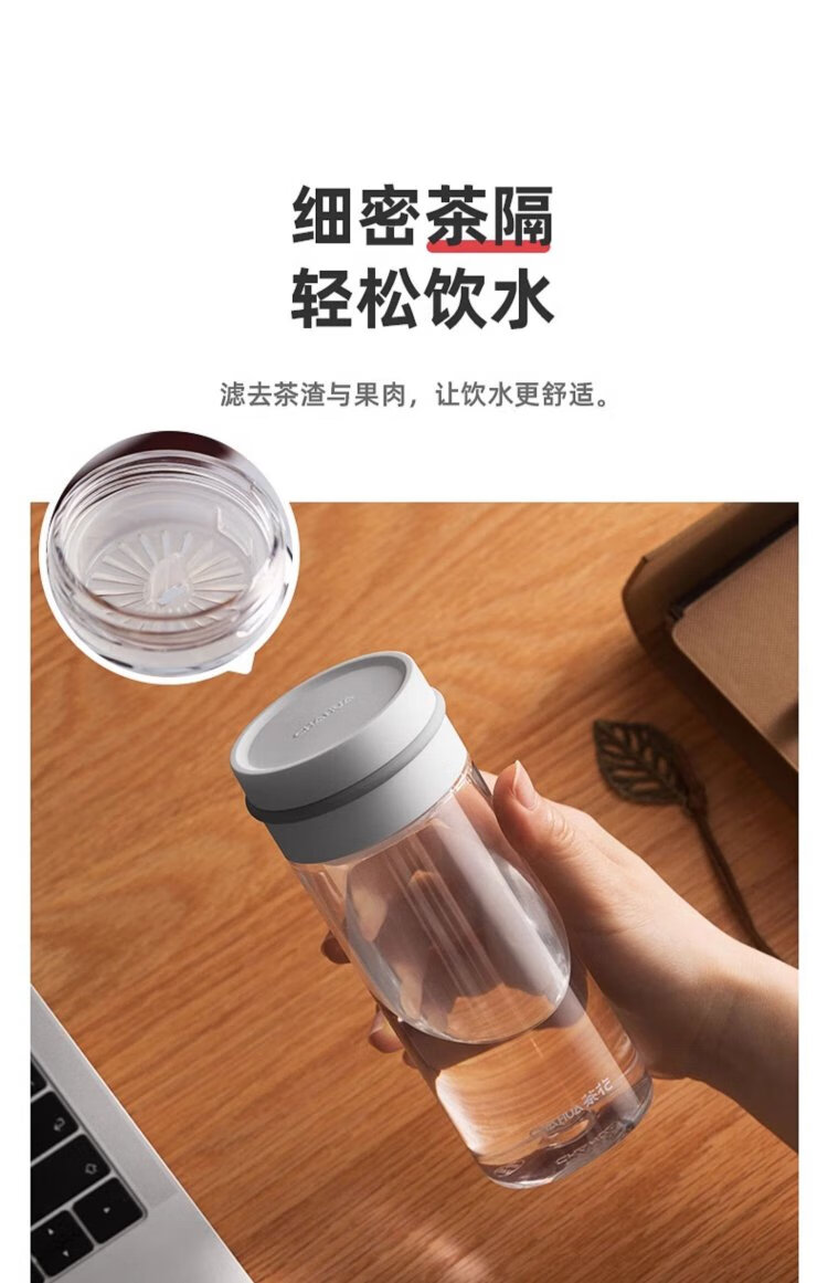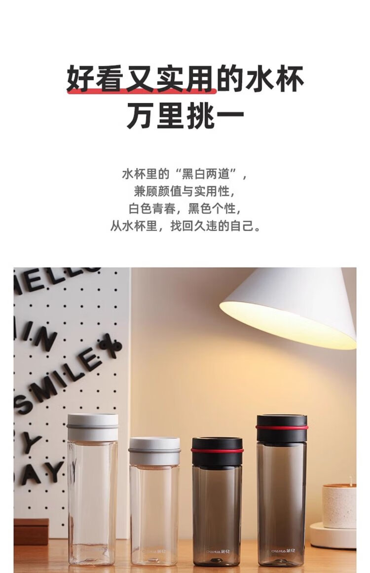 Camellia (CHAHUA) Water Cup Trendy Fashion Cup Portable Transparent Plastic Cup Outdoor Tumbler White 470ml