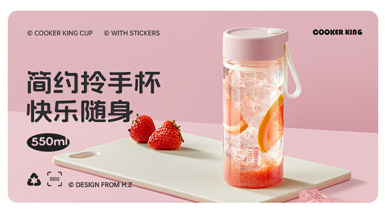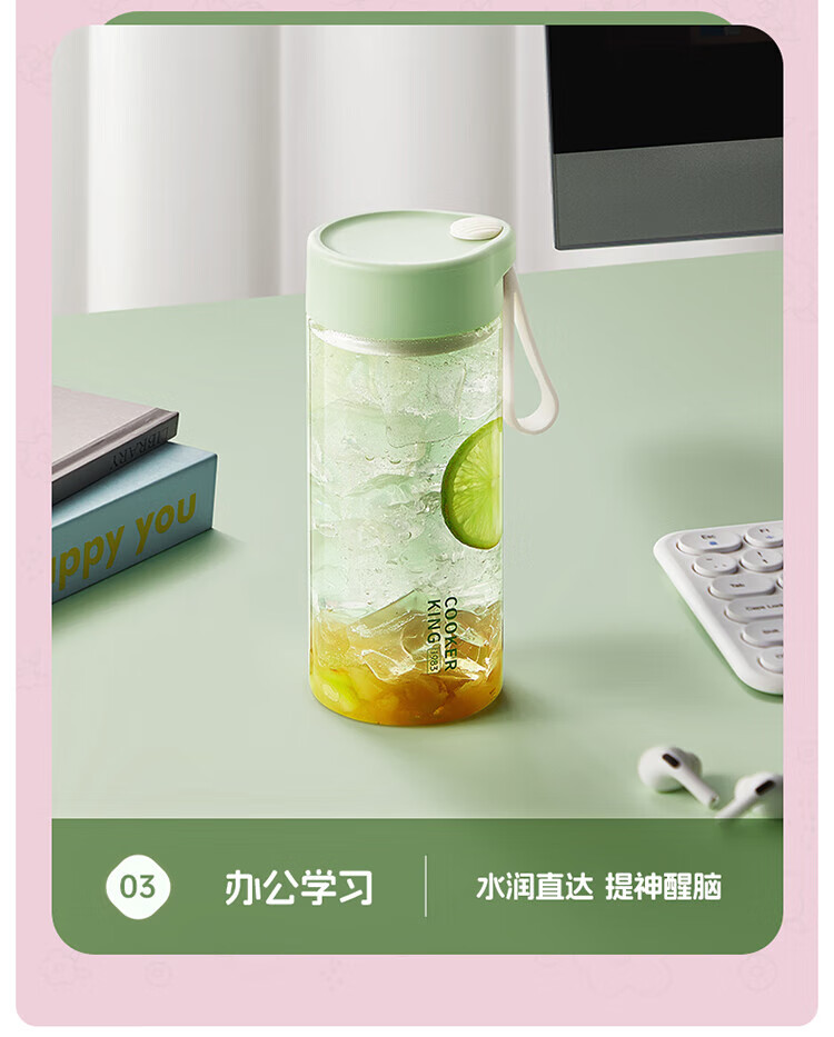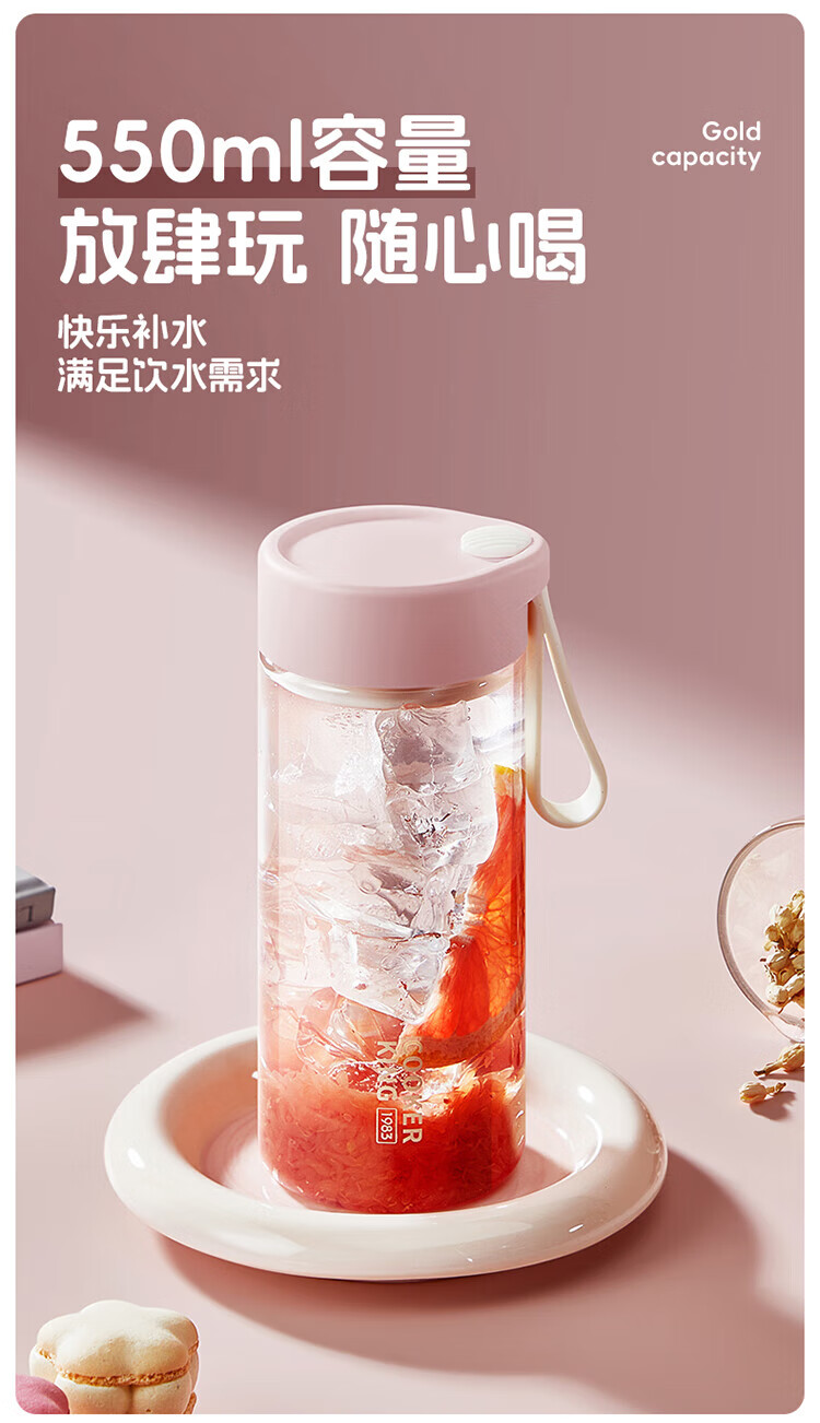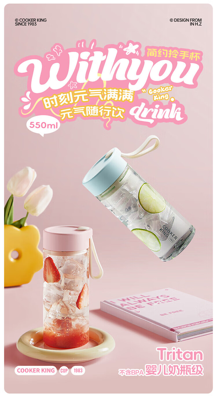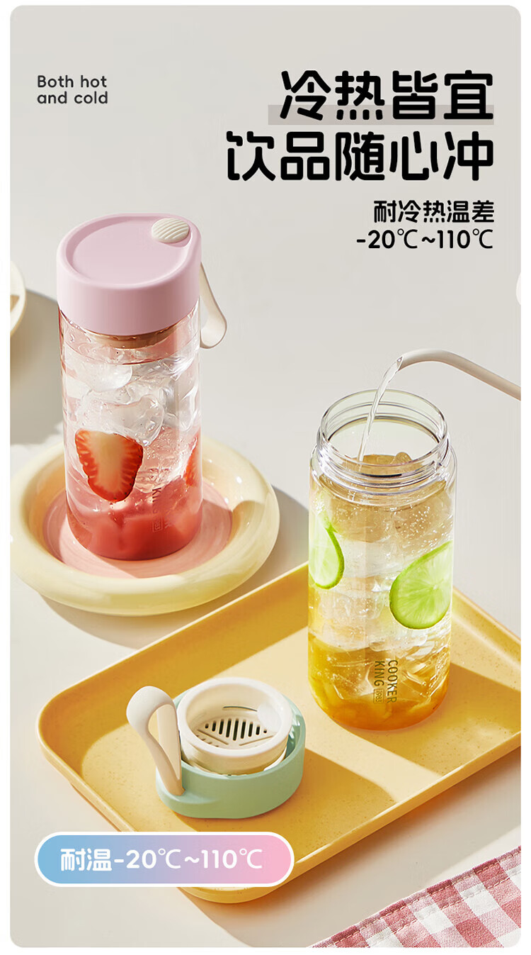 Cui Dahuang Water Cup Girls Summer Simple Hand Cup Tritan Children's Tea Cup Tea Water Separation 550ml (White)