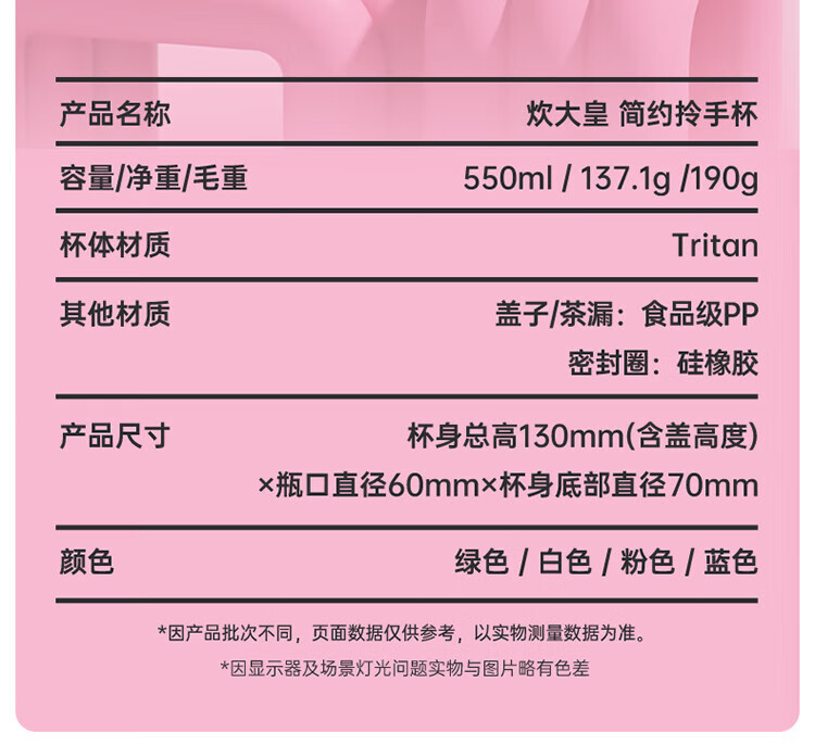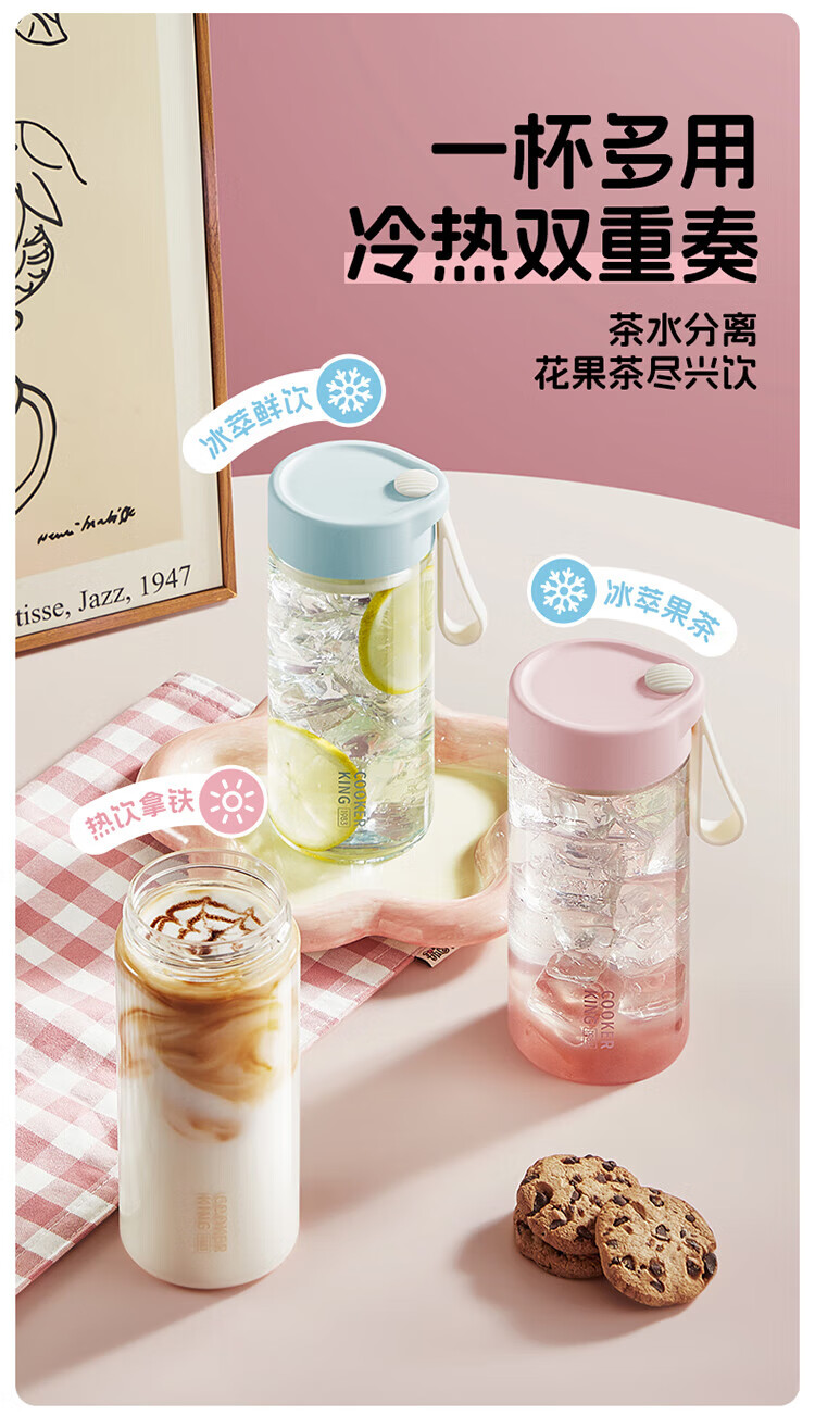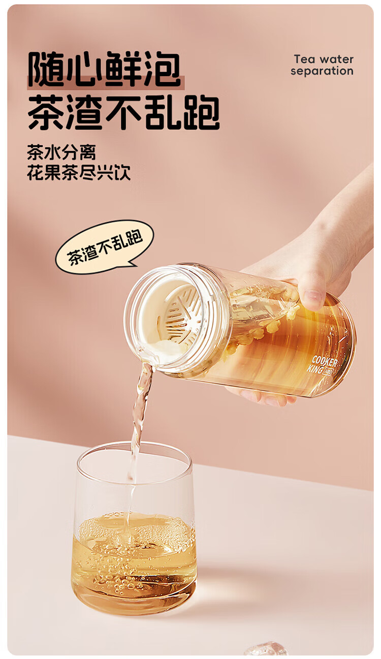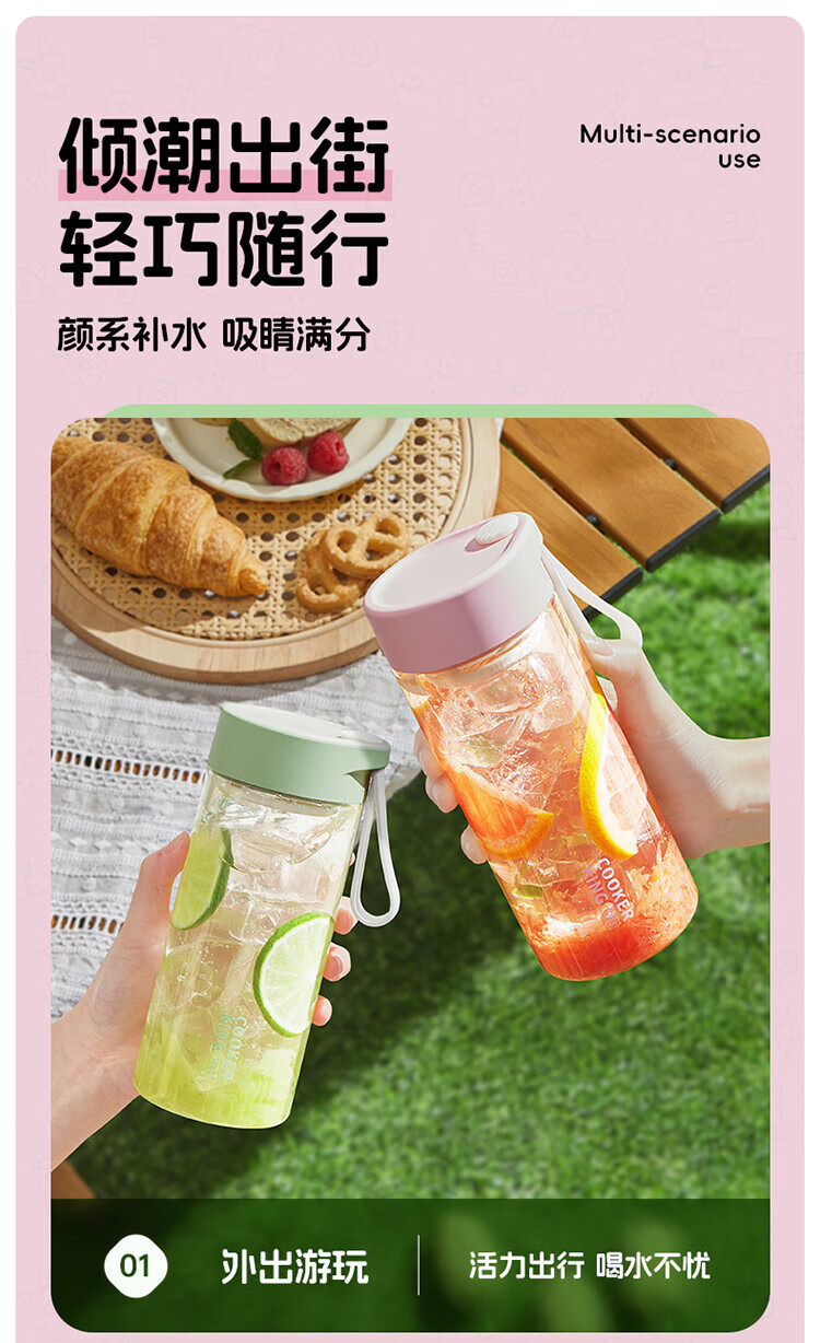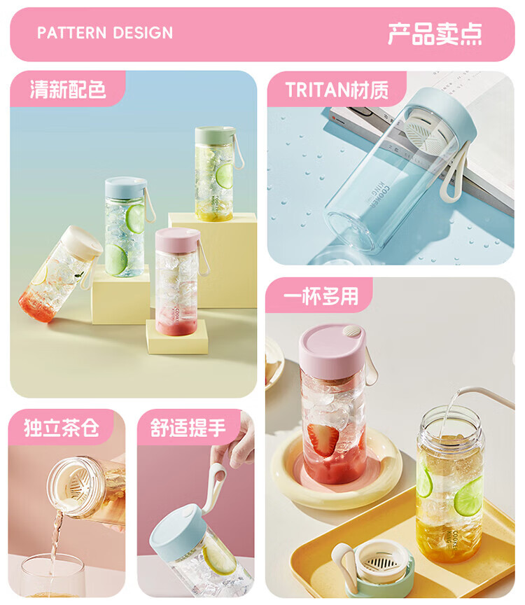 Cui Dahuang Water Cup Girls Summer Simple Hand Cup Tritan Children's Tea Cup Tea Water Separation 550ml (White)