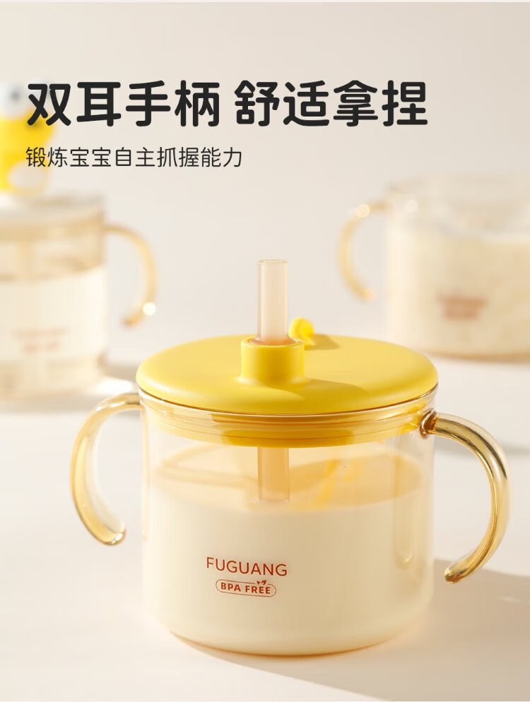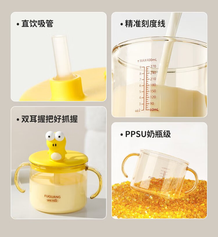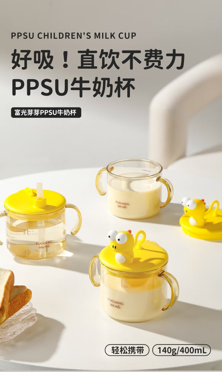 FGA Fuguang children's milk cup baby direct drink with handle drinking cup with scale bubble milk bottle PPSU learning drinking straw cup