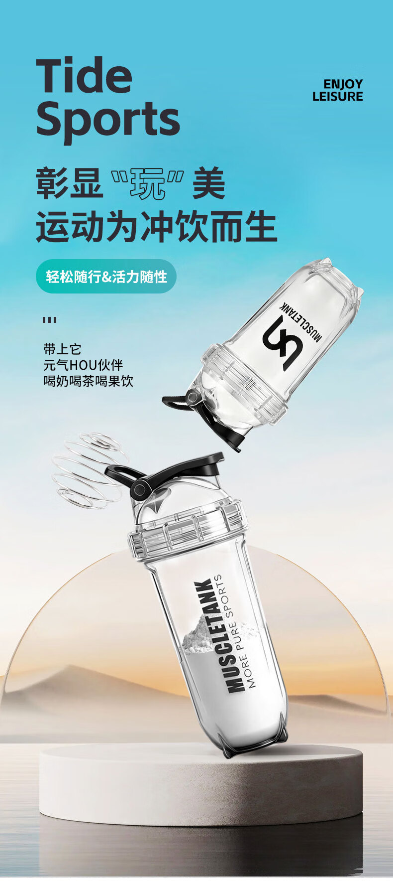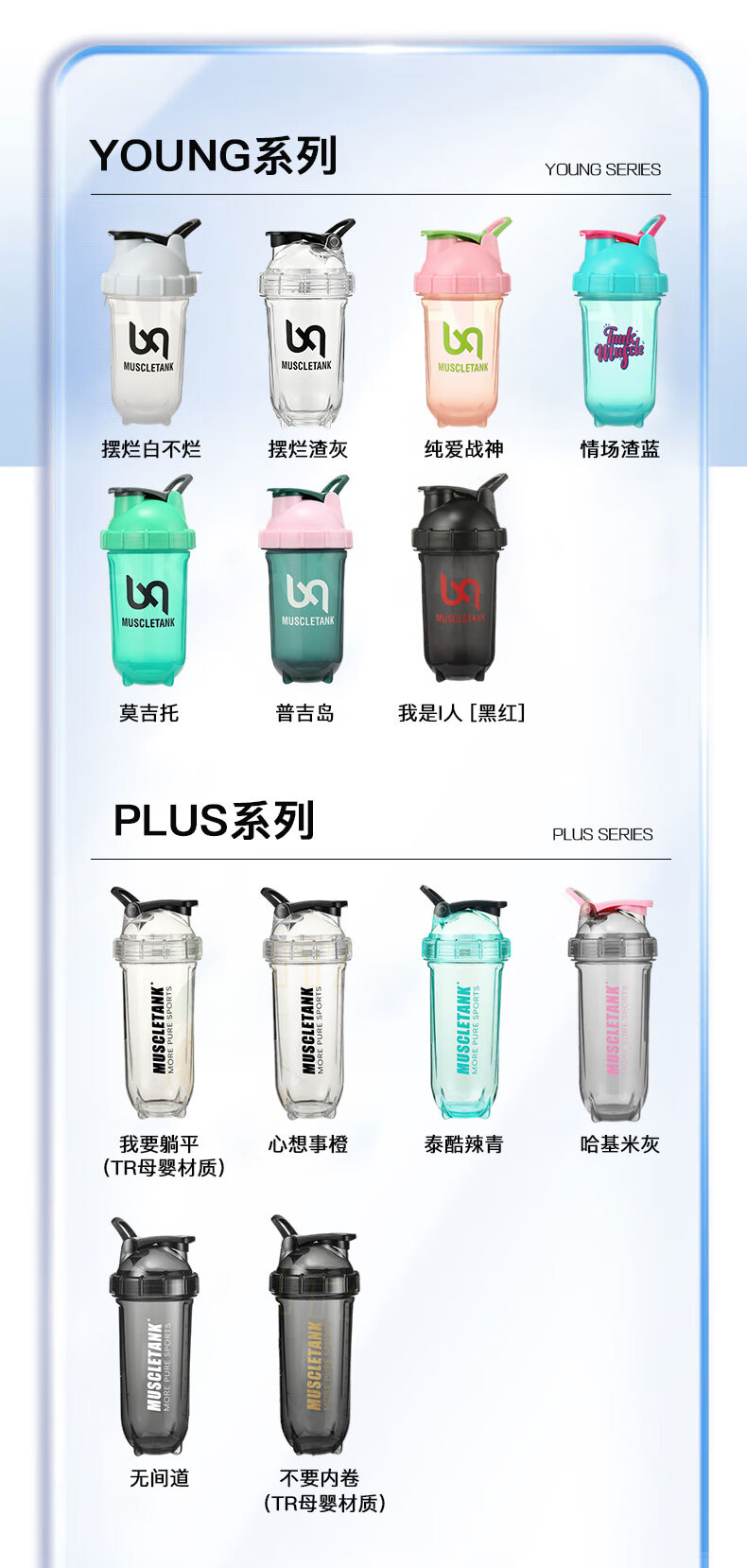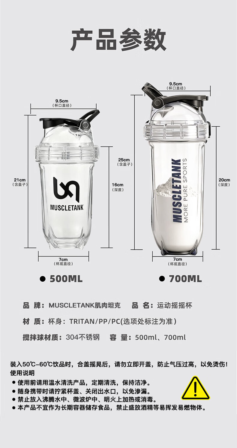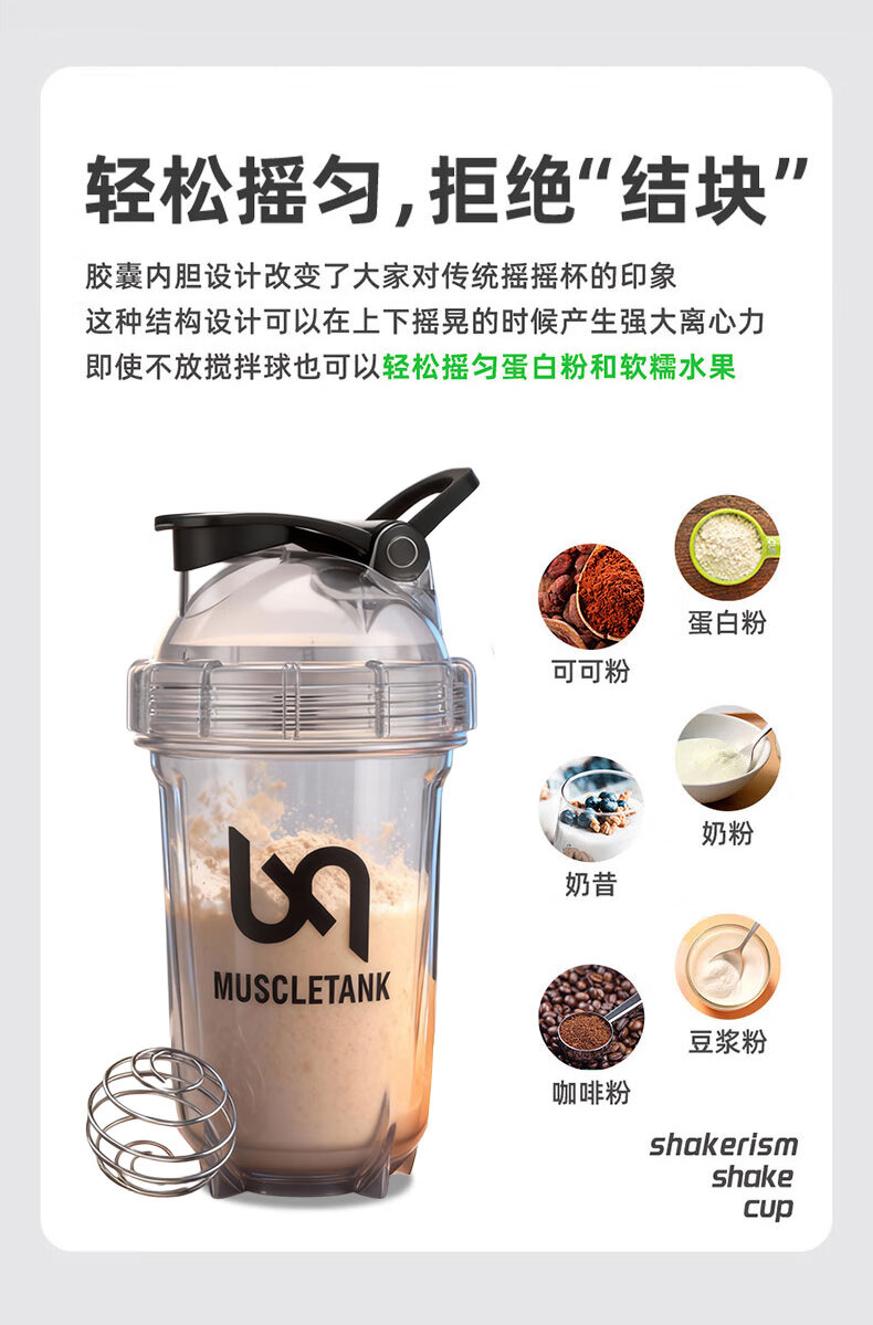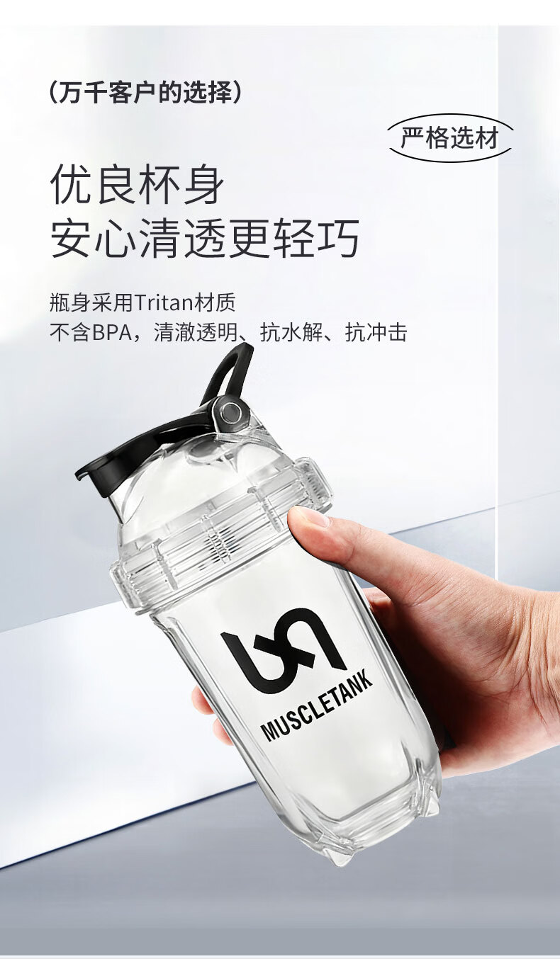 Muscle Tank Fully Transparent Tritan Shake Cup Protein Powder Fitness Sports Water Cup Women's 2025 New Mixing Cup Transparent White TRITAN Material 500ml 1 piece 500ML