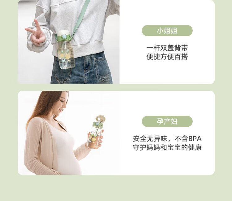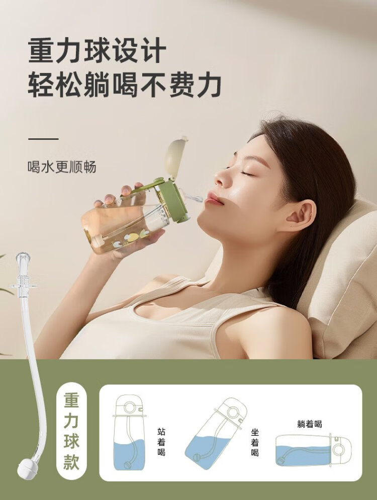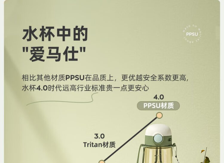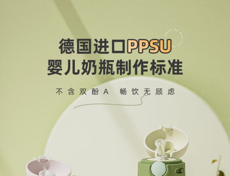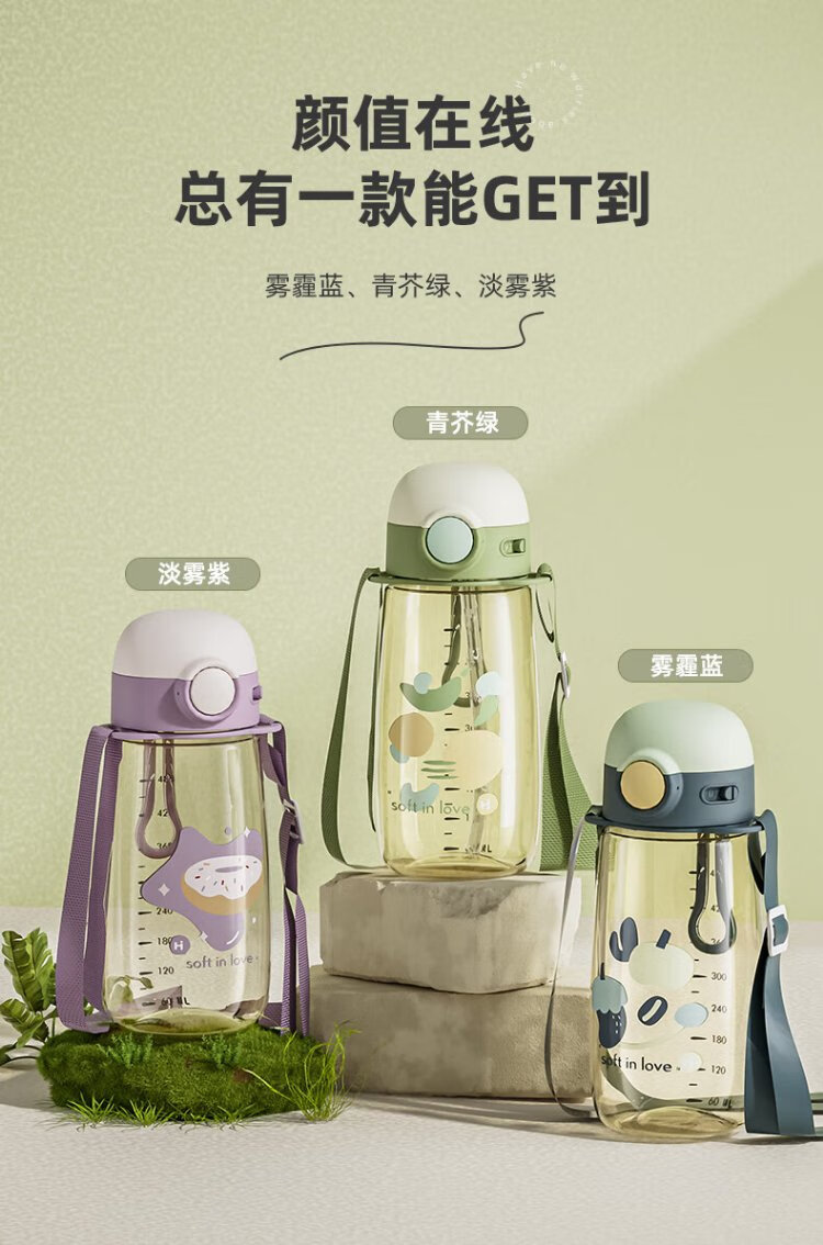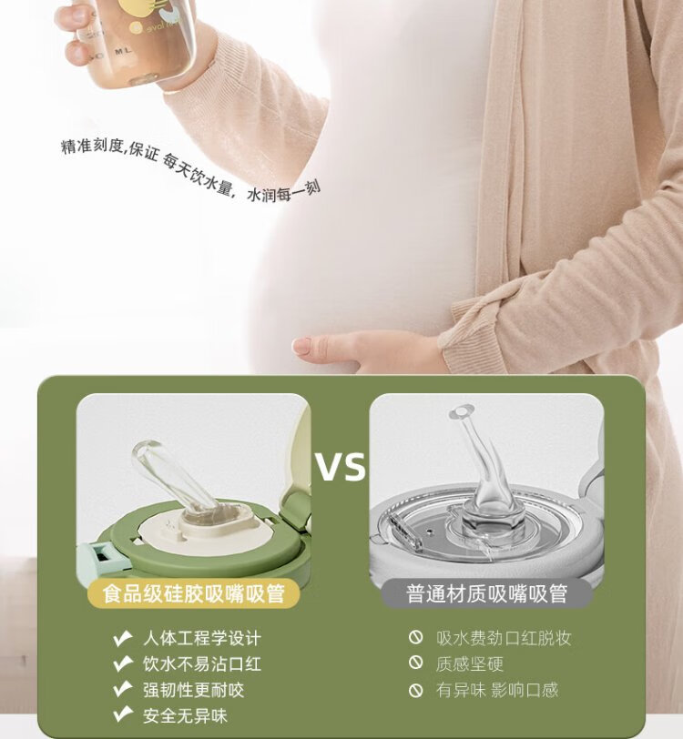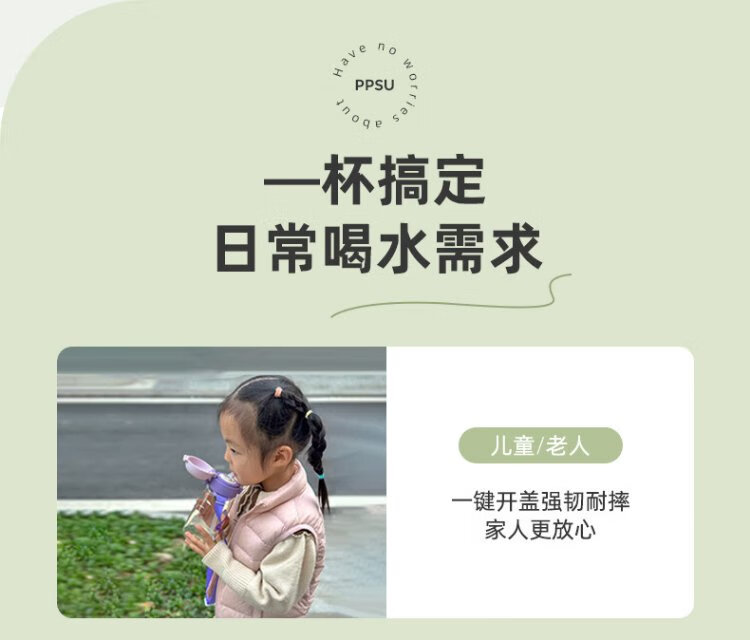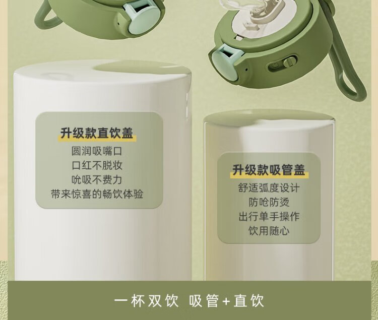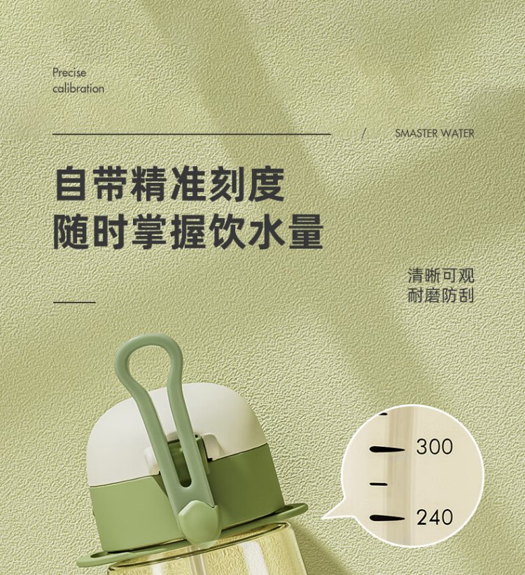 NRMEi ppsu water cup for adults with straw cup scale, pregnant women lying down to drink, children, students and girls, summer high temperature resistant kettle, mustard green, straw type PPSU + strap 550ml