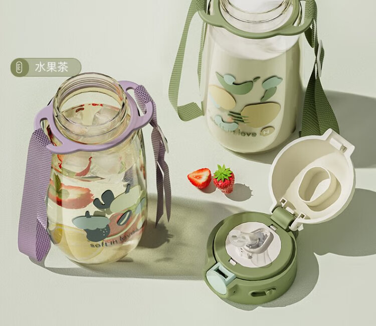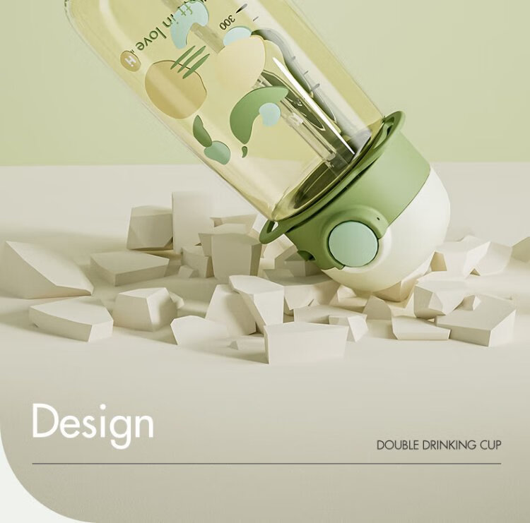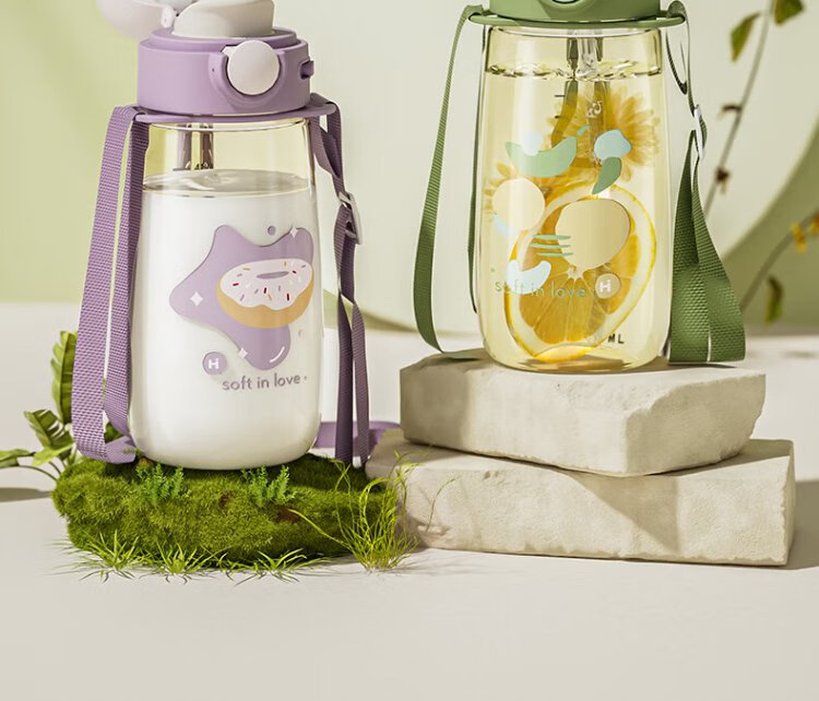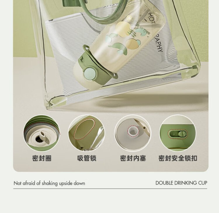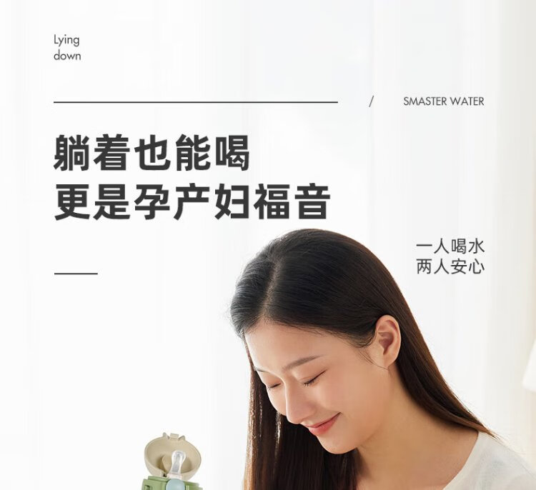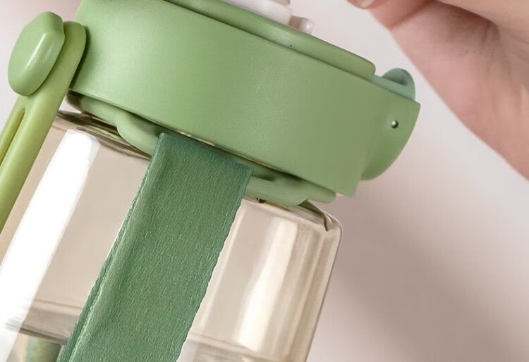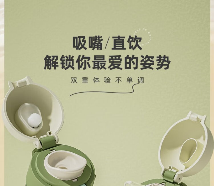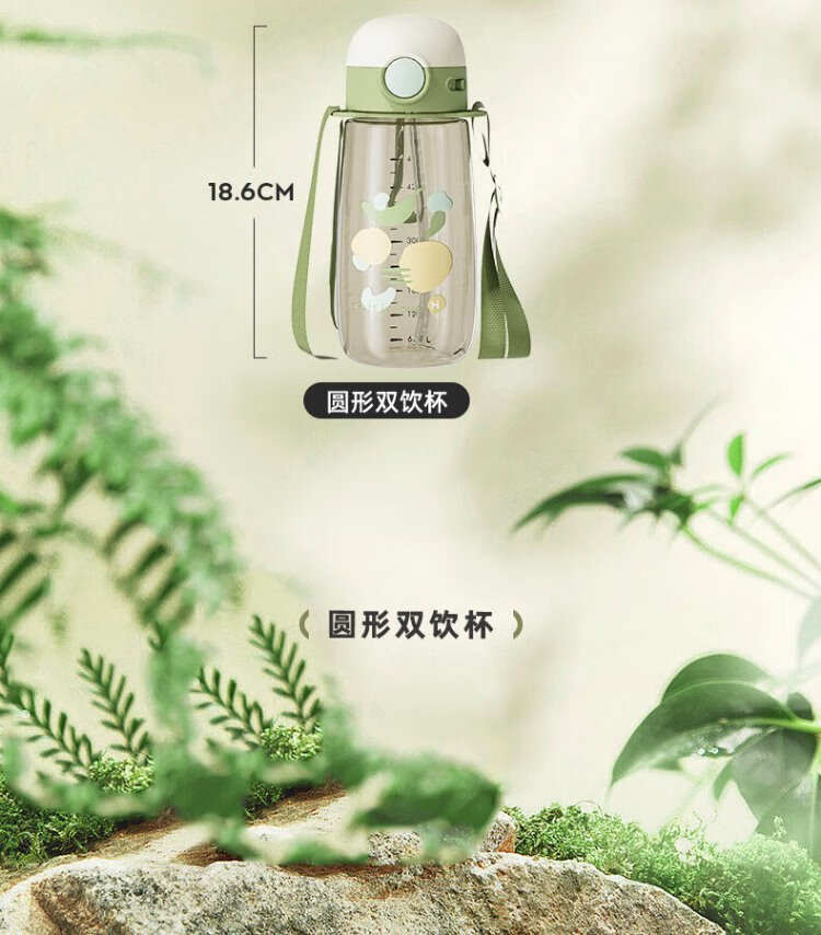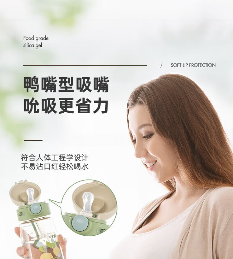 NRMEi ppsu water cup for adults with straw cup scale, pregnant women lying down to drink, children, students and girls, summer high temperature resistant kettle, mustard green, straw type PPSU + strap 550ml