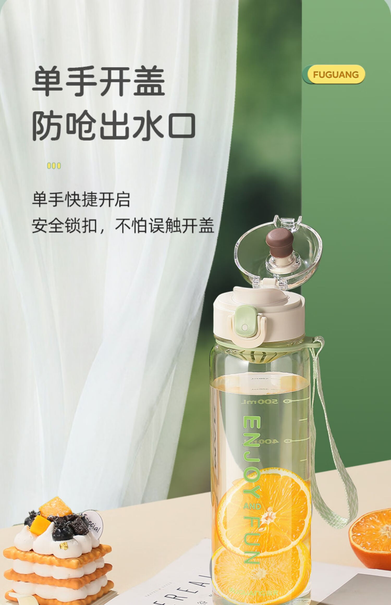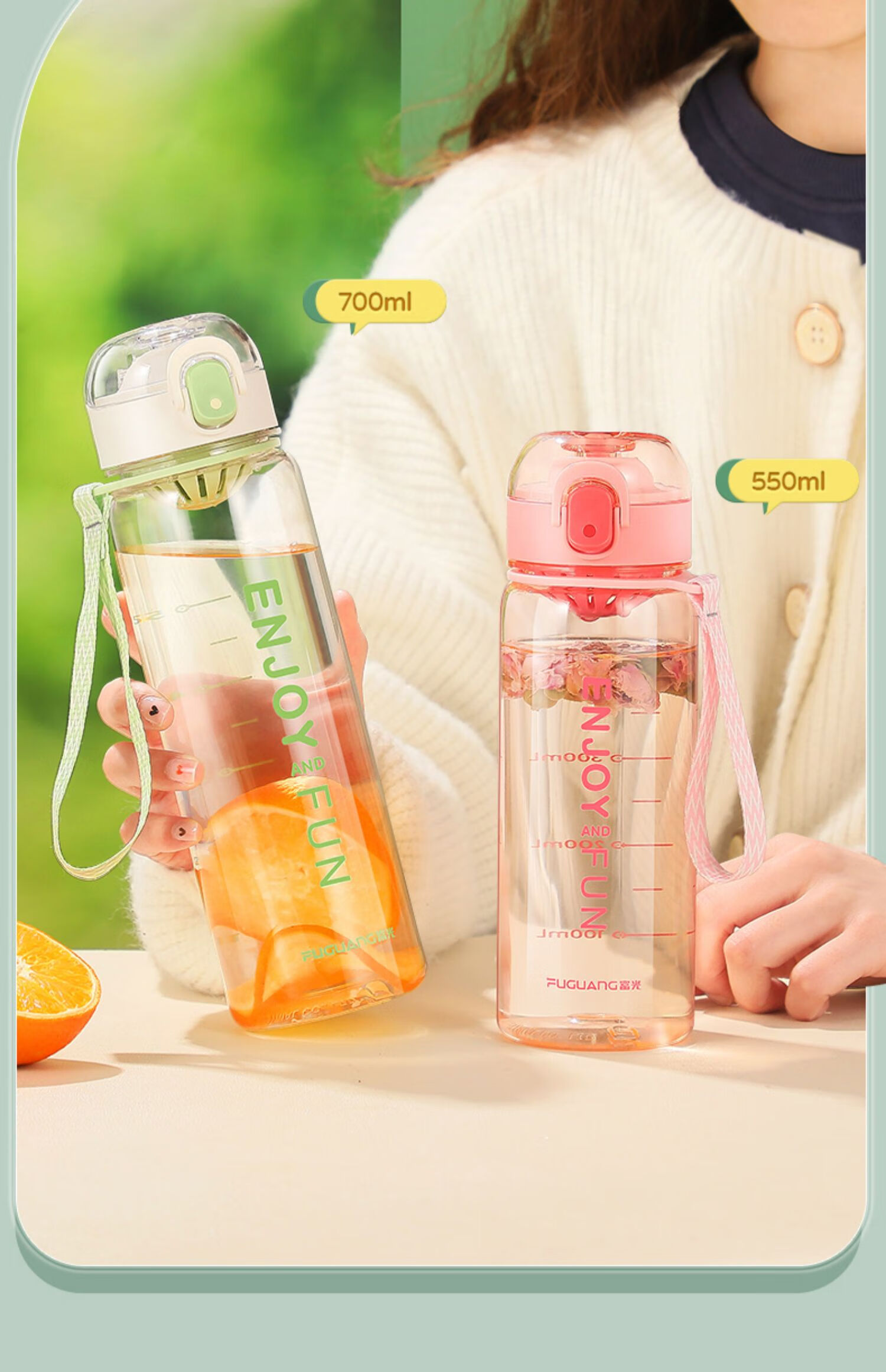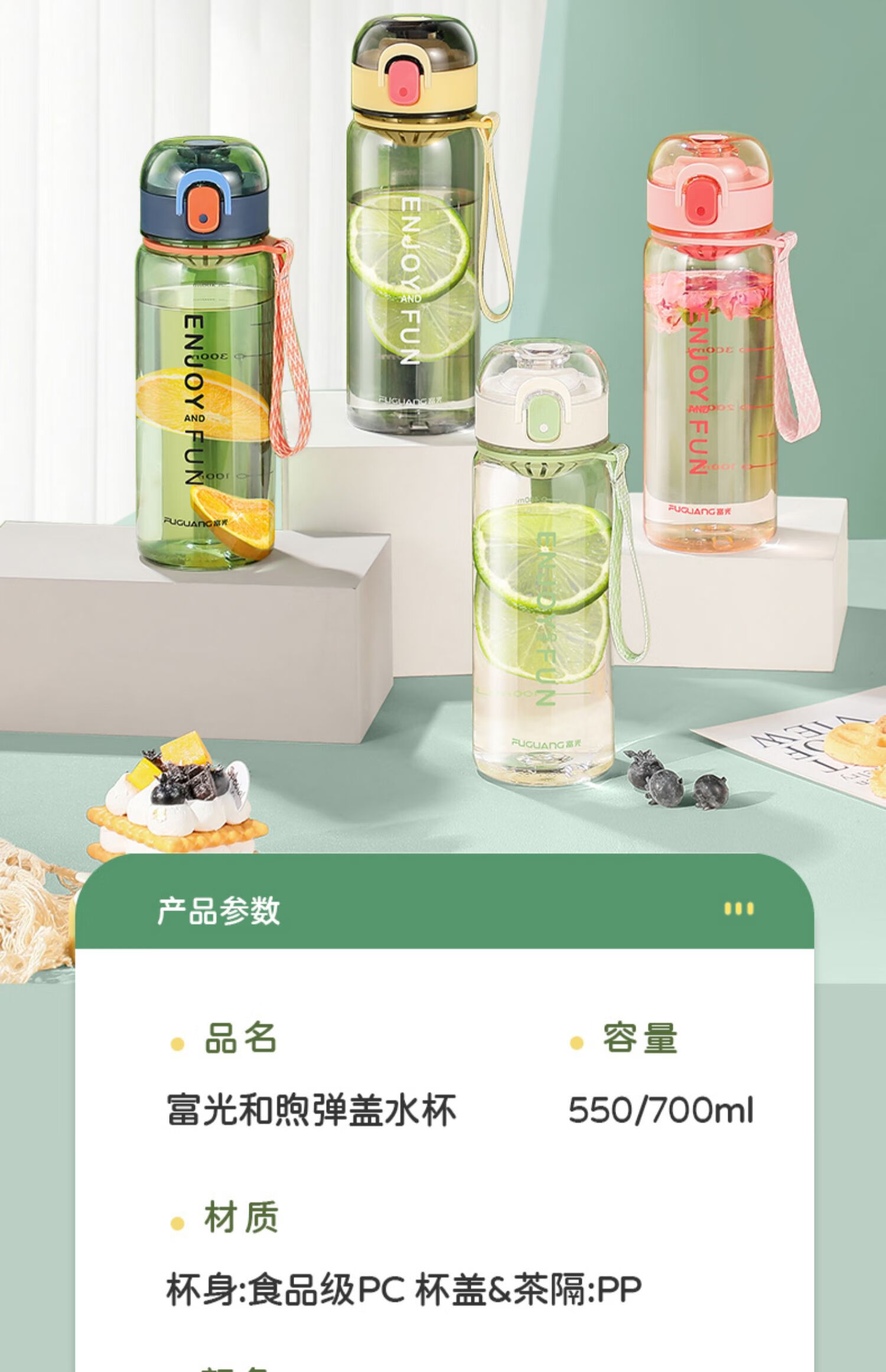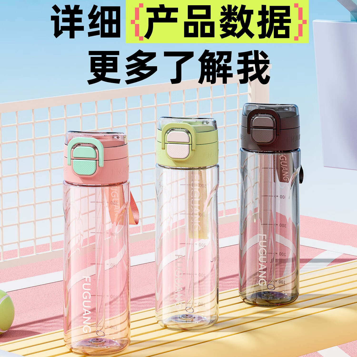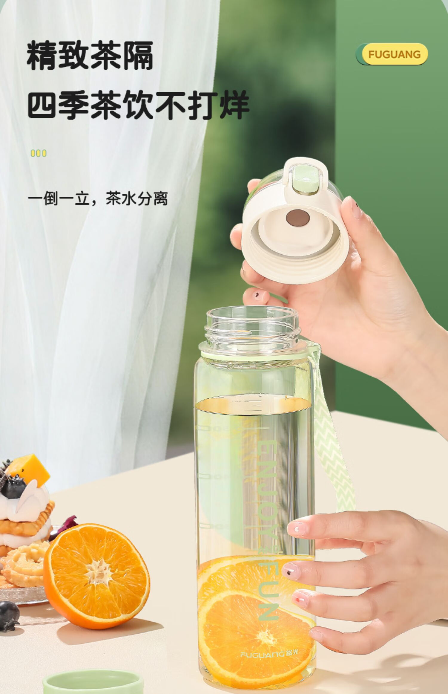 Fuguang plastic cup water cup for men and women portable sports water cup large capacity tea cup leak-proof student cup space cup transparent (with filter) 550ml