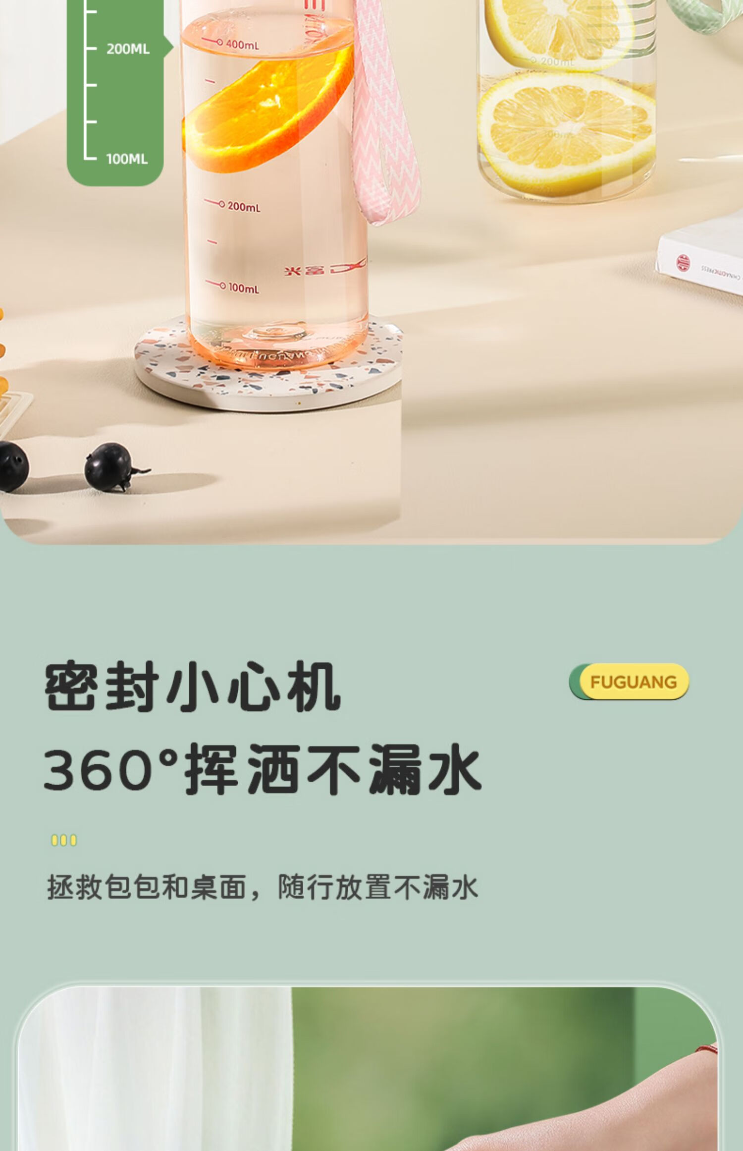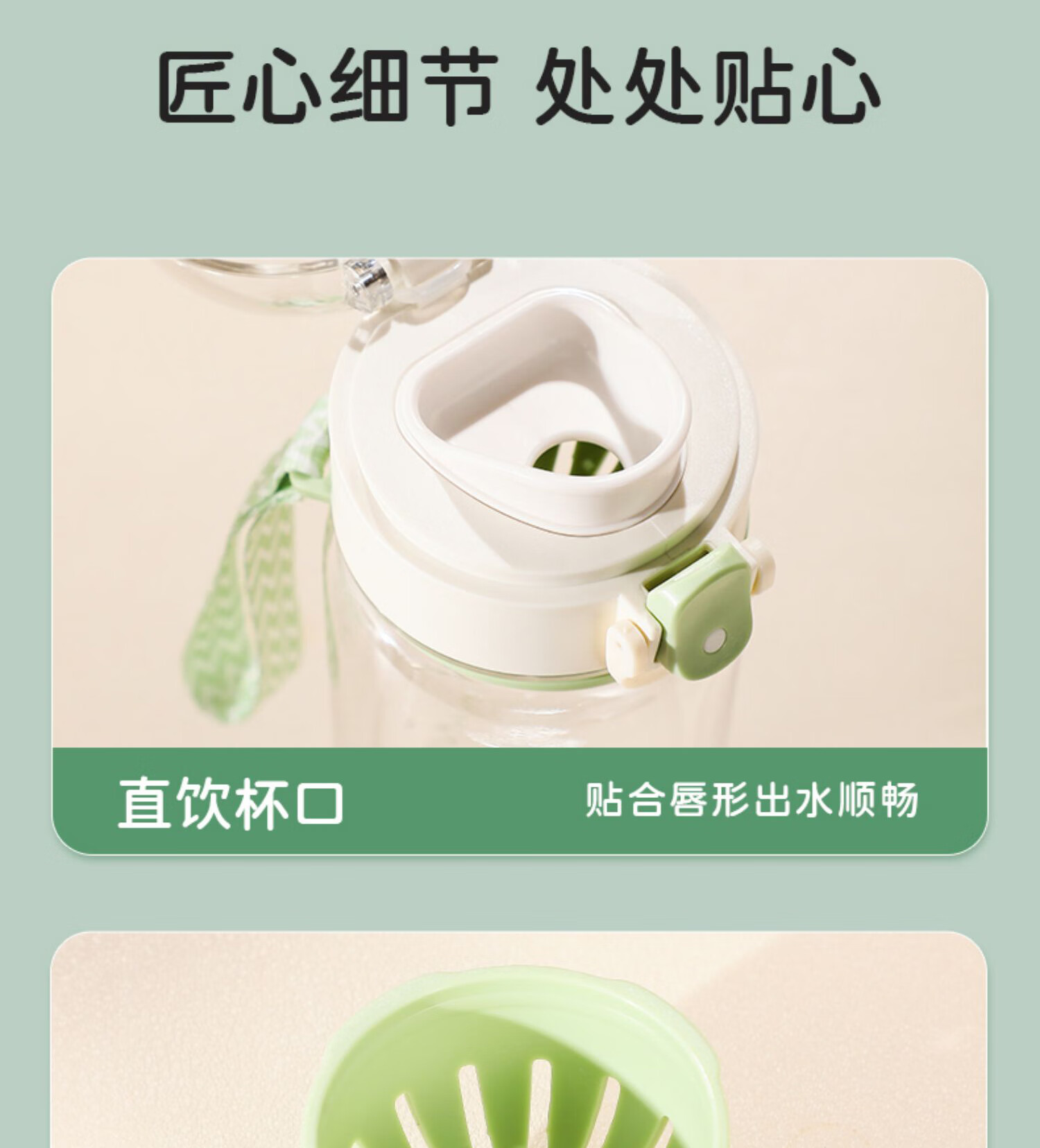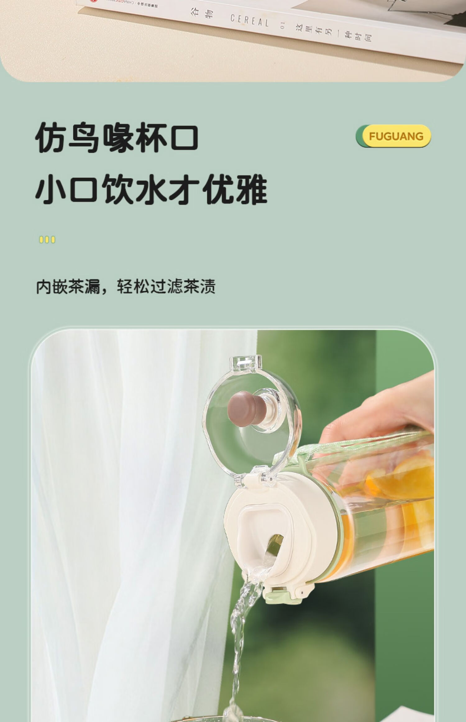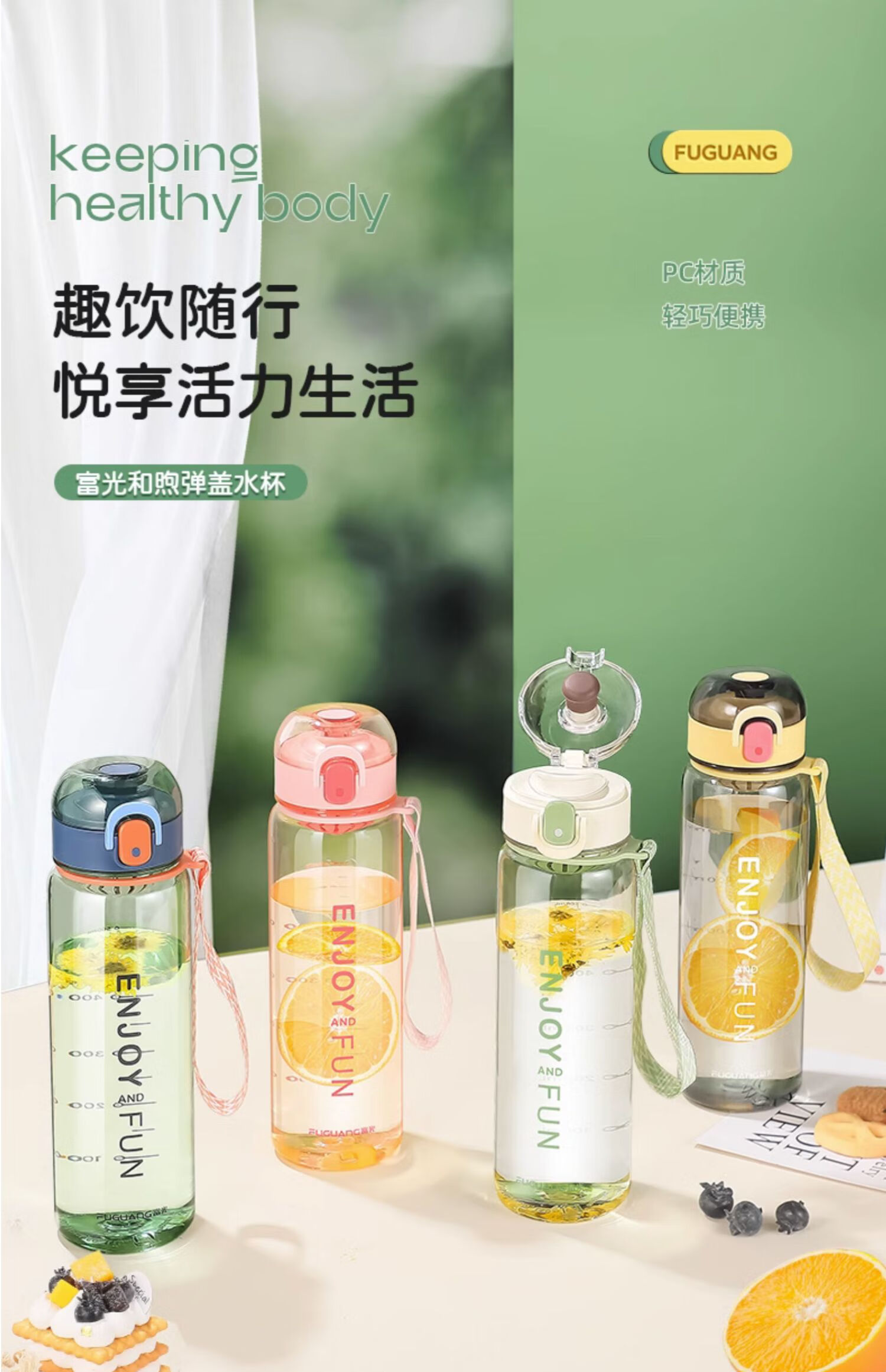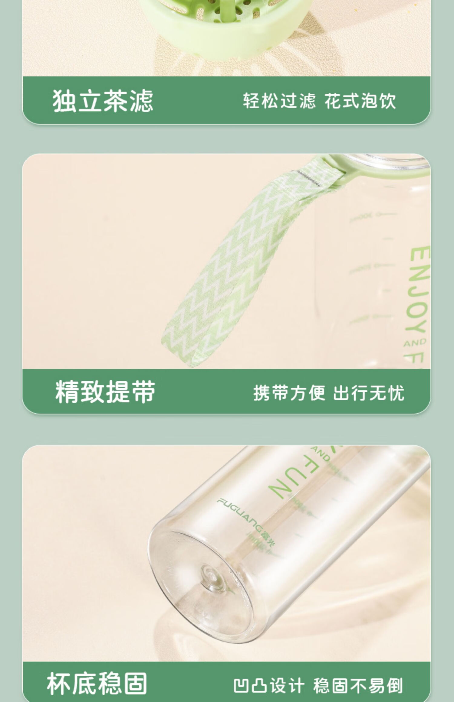 Fuguang plastic cup water cup for men and women portable sports water cup large capacity tea cup leak-proof student cup space cup transparent (with filter) 550ml