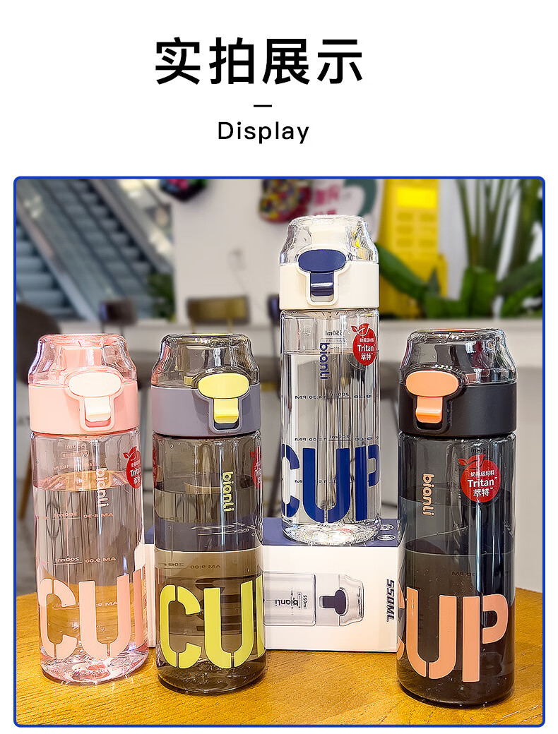 Iron helper tritan student water cup, high-looking plastic cup, special sports water cup for boys and girls going to school, cute cup, white with filter tea separator, 550ml 1 tritan material student water cup