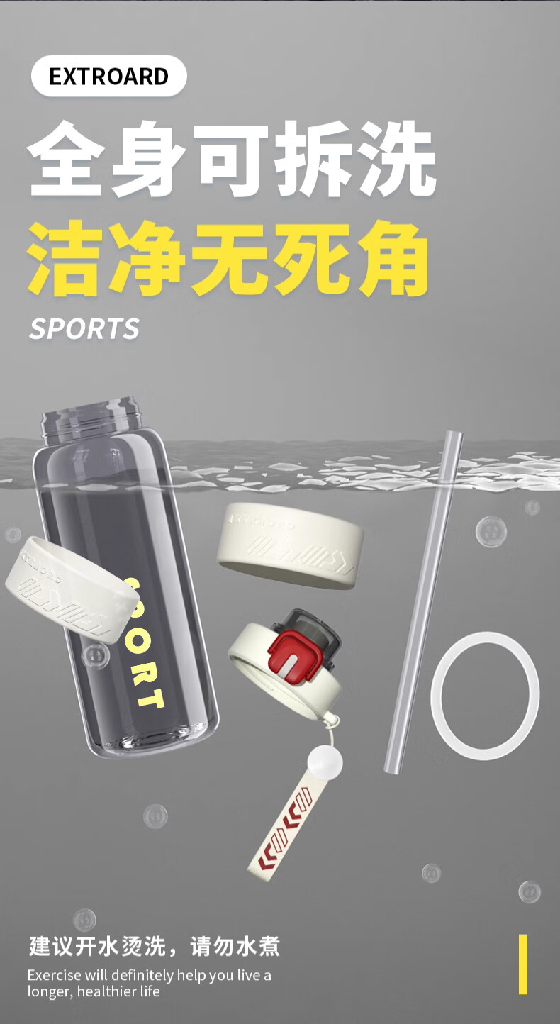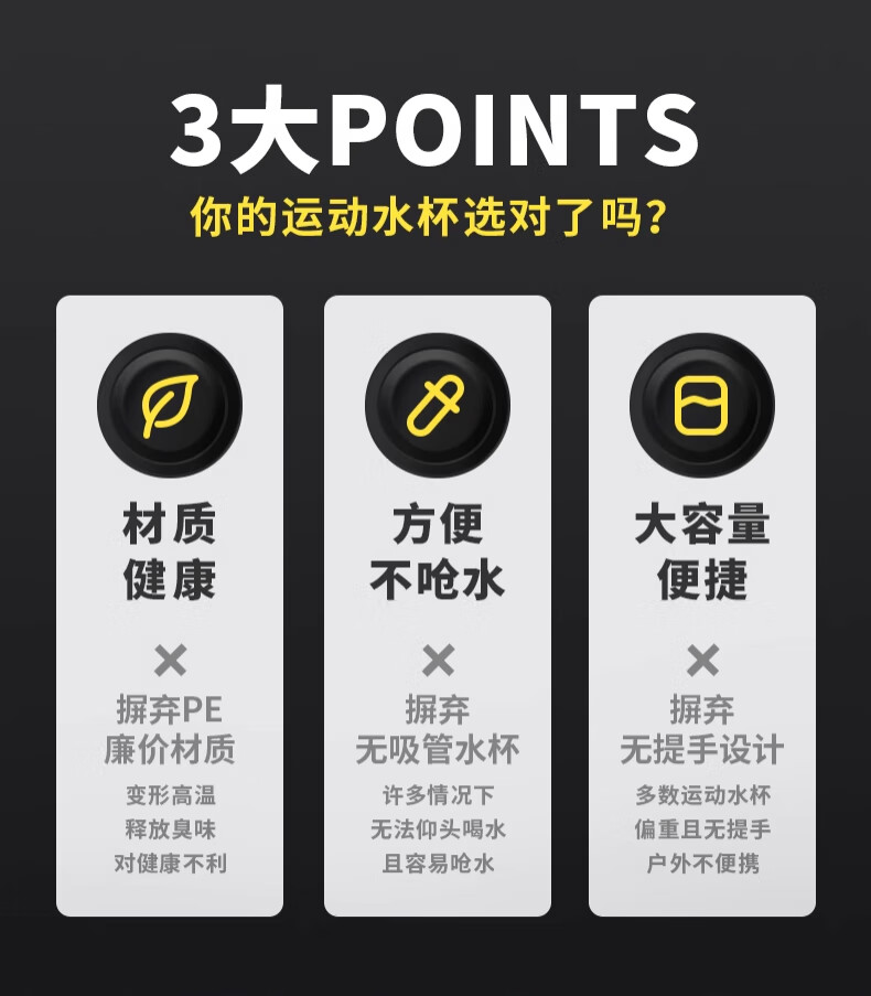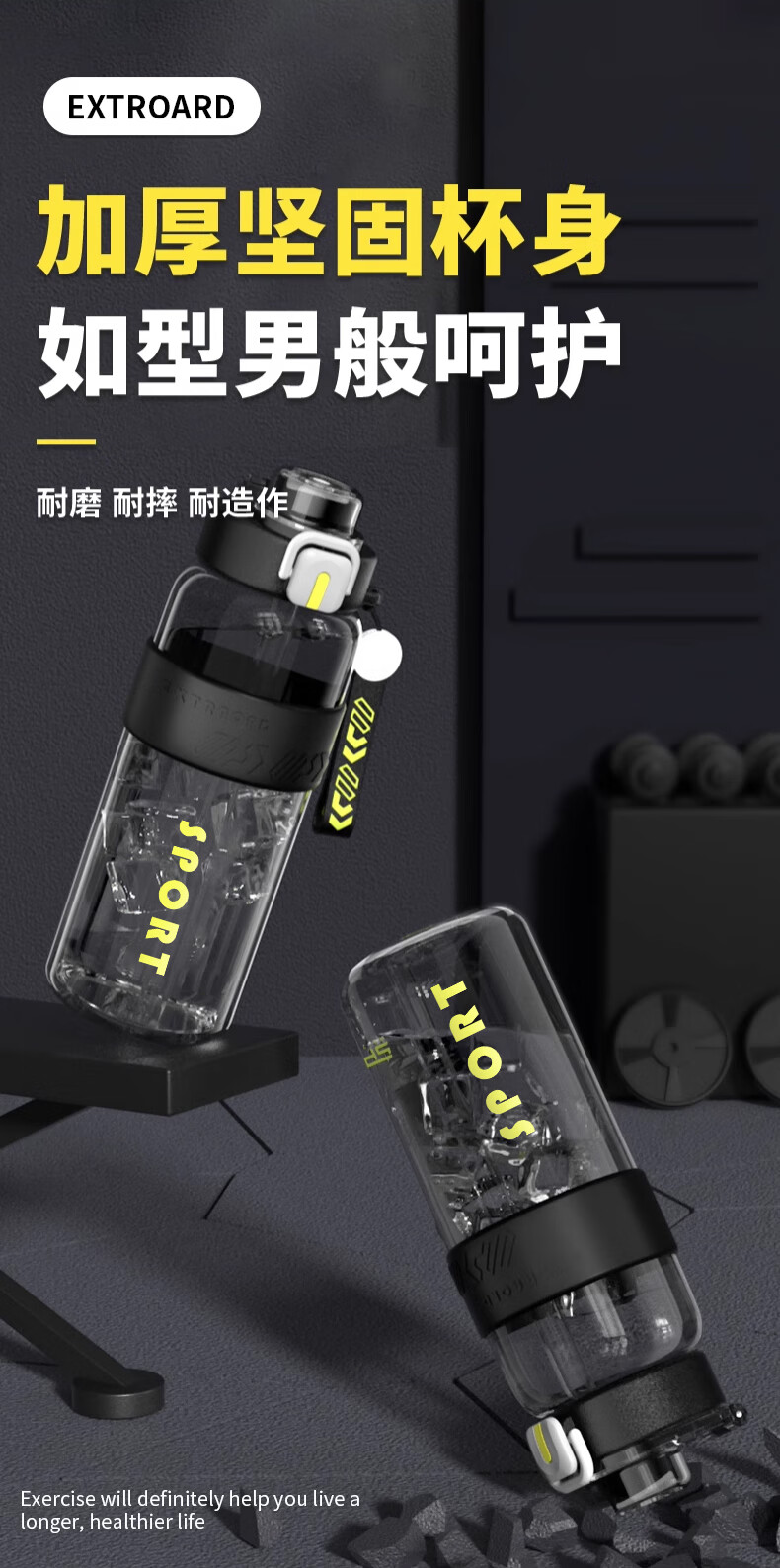 COOKSS Sports Water Cup Large Capacity Sports Water Bottle for Boys and Girls Summer Students Going to School Special Fitness Portable Water Bottle High Temperature Resistant Outdoor Deep Black - Thickened PC Double Drink 800ml