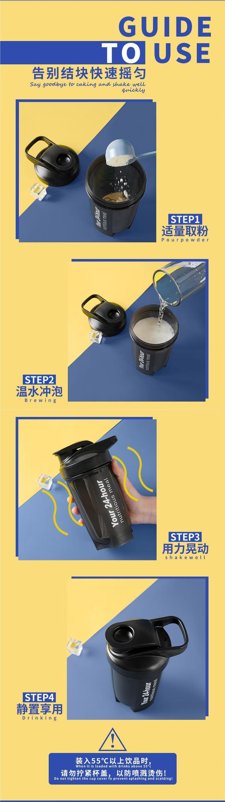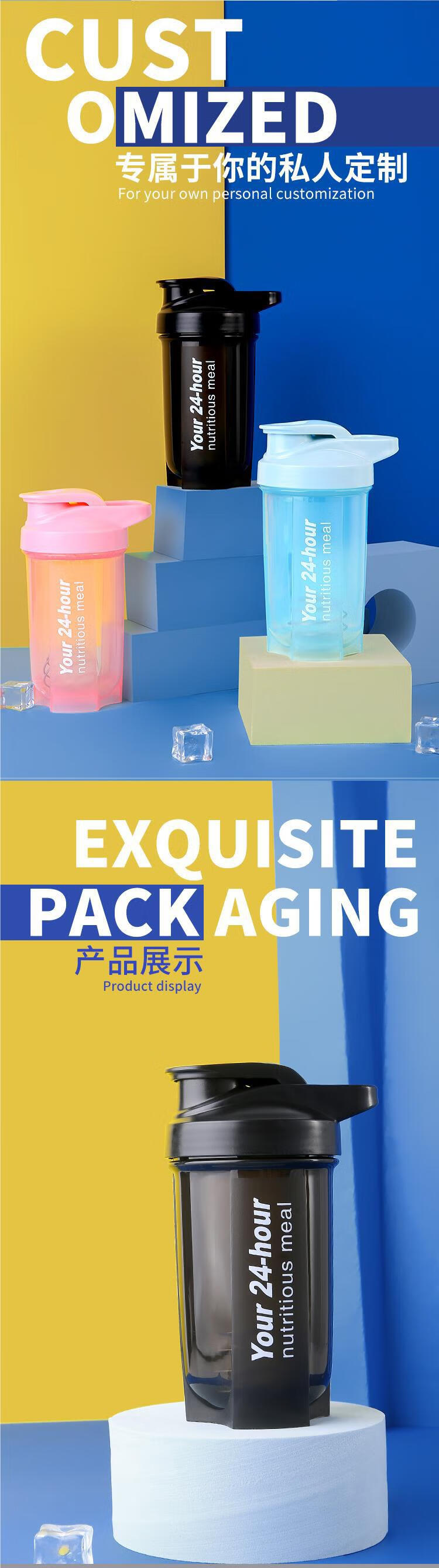 Iron helper hand shake cup fitness sports water cup men's milkshake leak-proof stirring cup scale cup milk tea shake cup protein powder kettle 500ml classic black + with scale + stainless steel ball 1