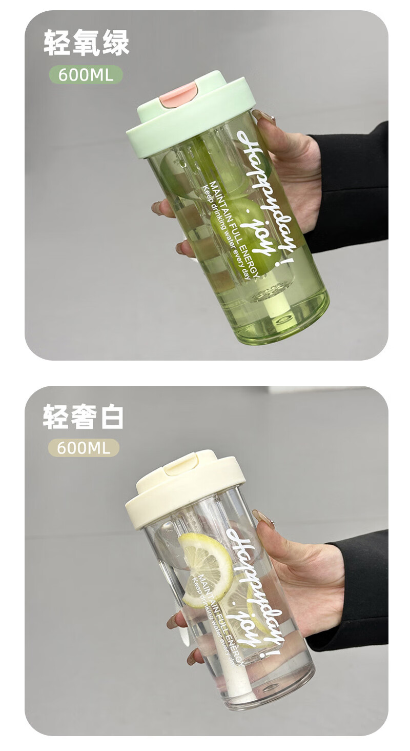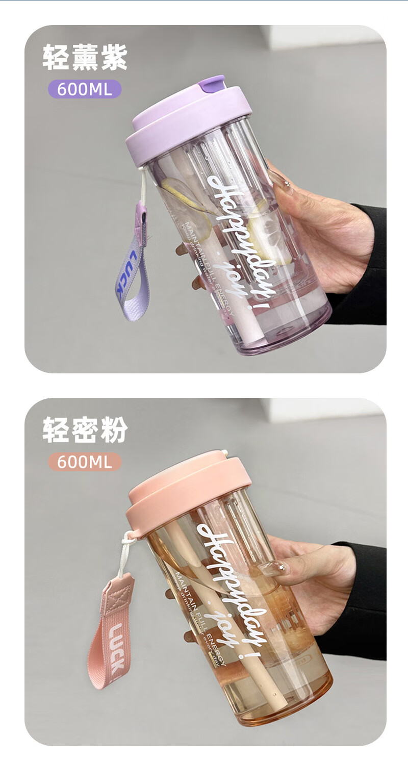 Water Cup 2025 Female Summer High-Looking Straw Portable Summer High Temperature Resistant Girls Drinking Water Cup Coconut Milk White 600ml