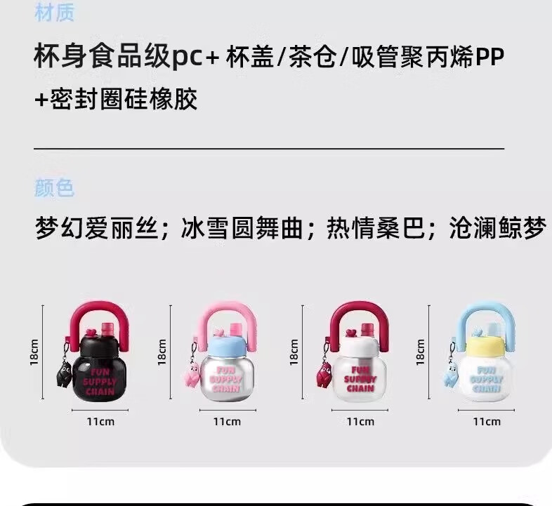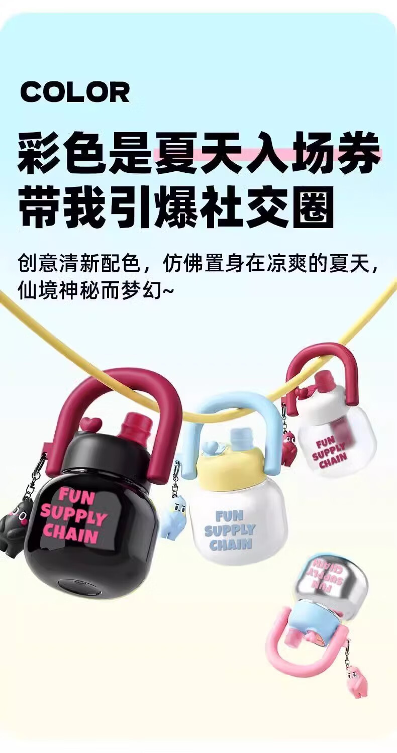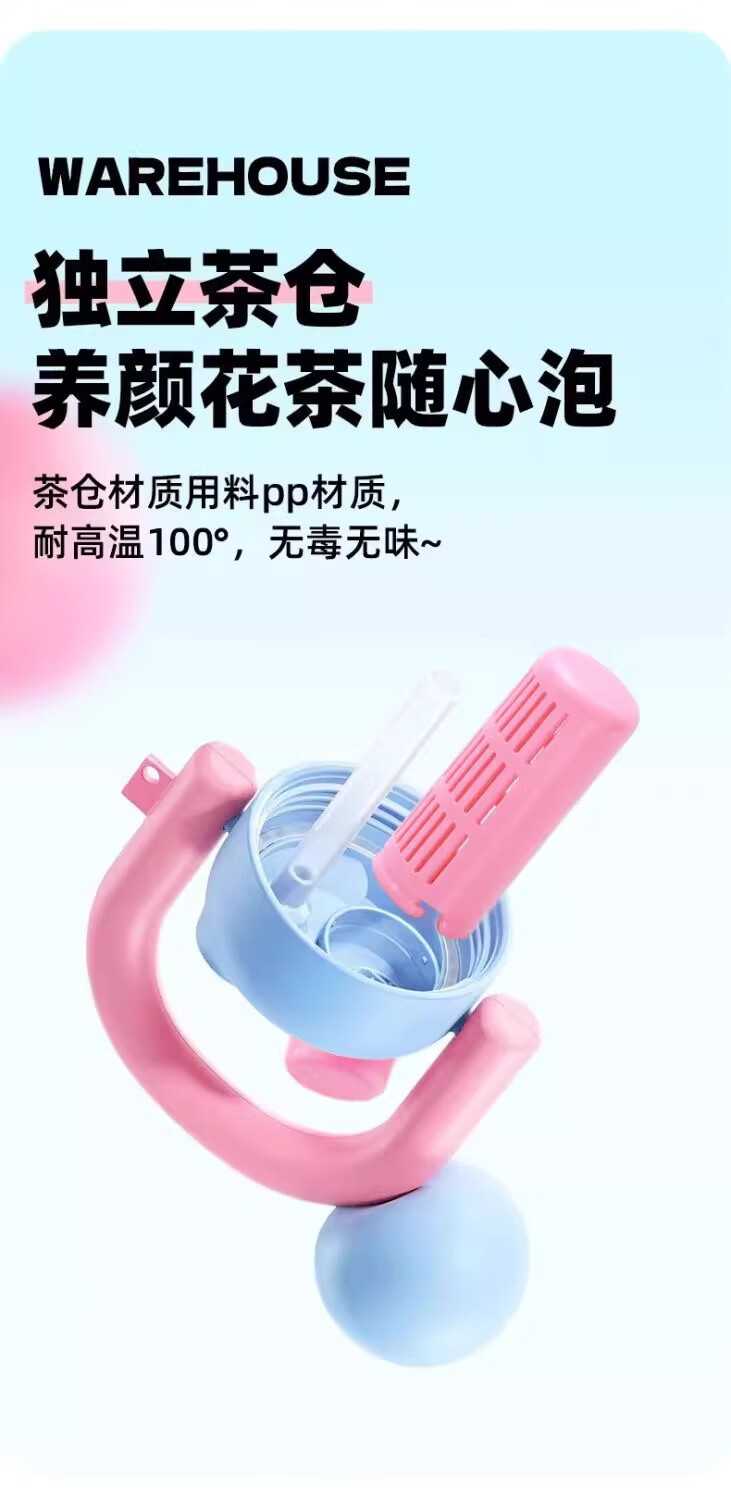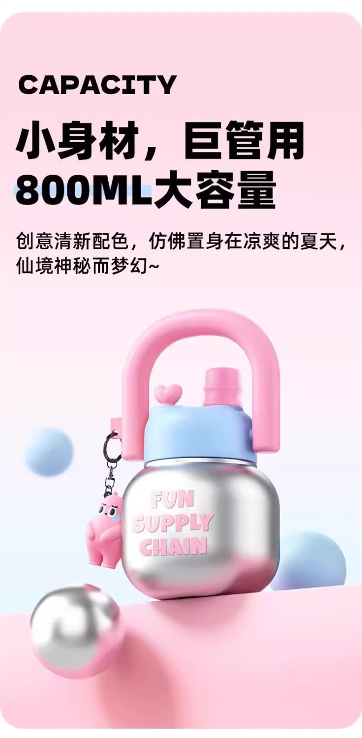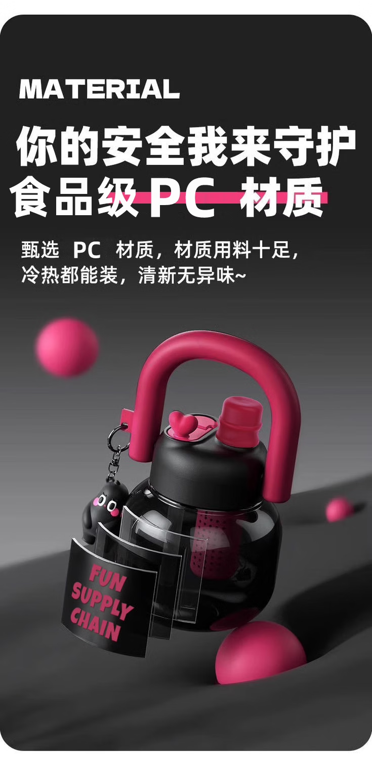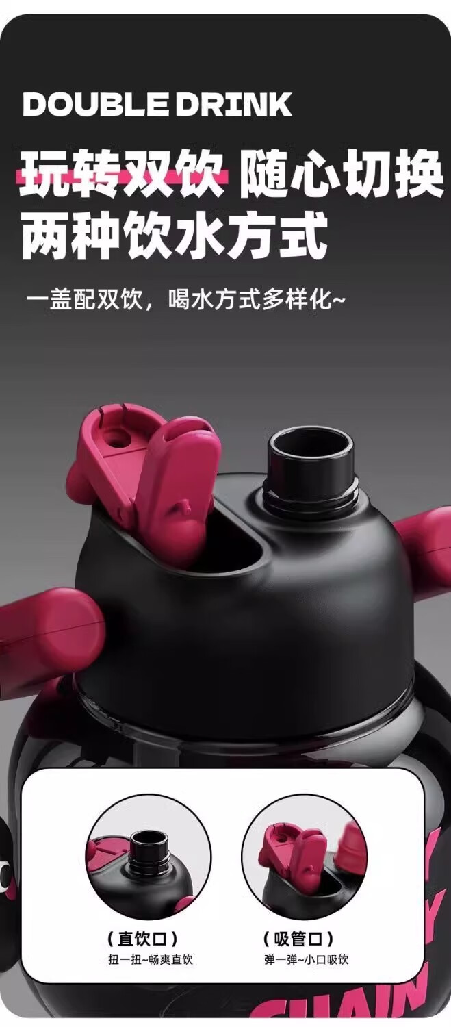 JD Logistics Internet celebrity cute water cup double drink carry kettle large capacity portable plastic cup student girl silver pink 800ml