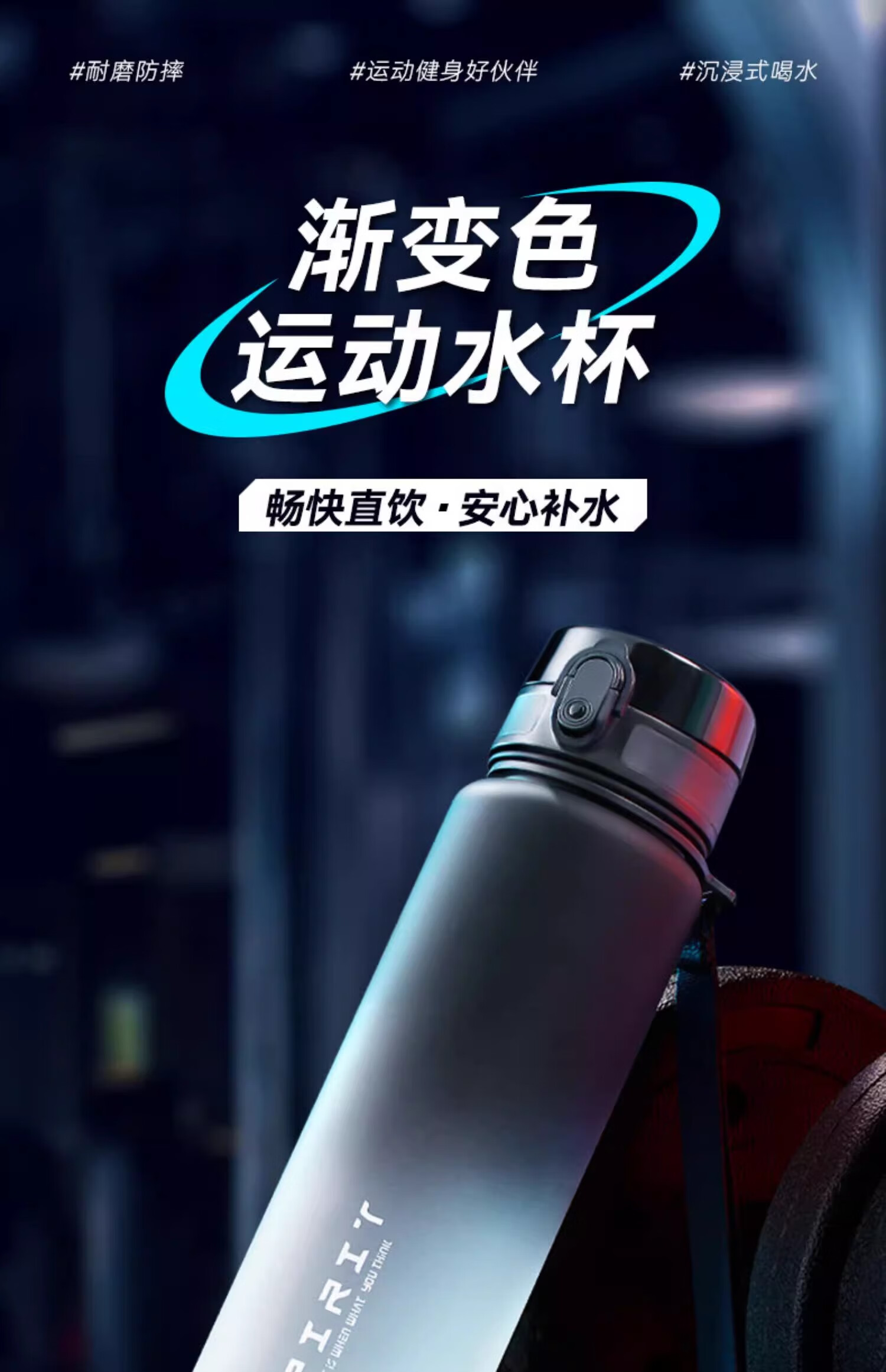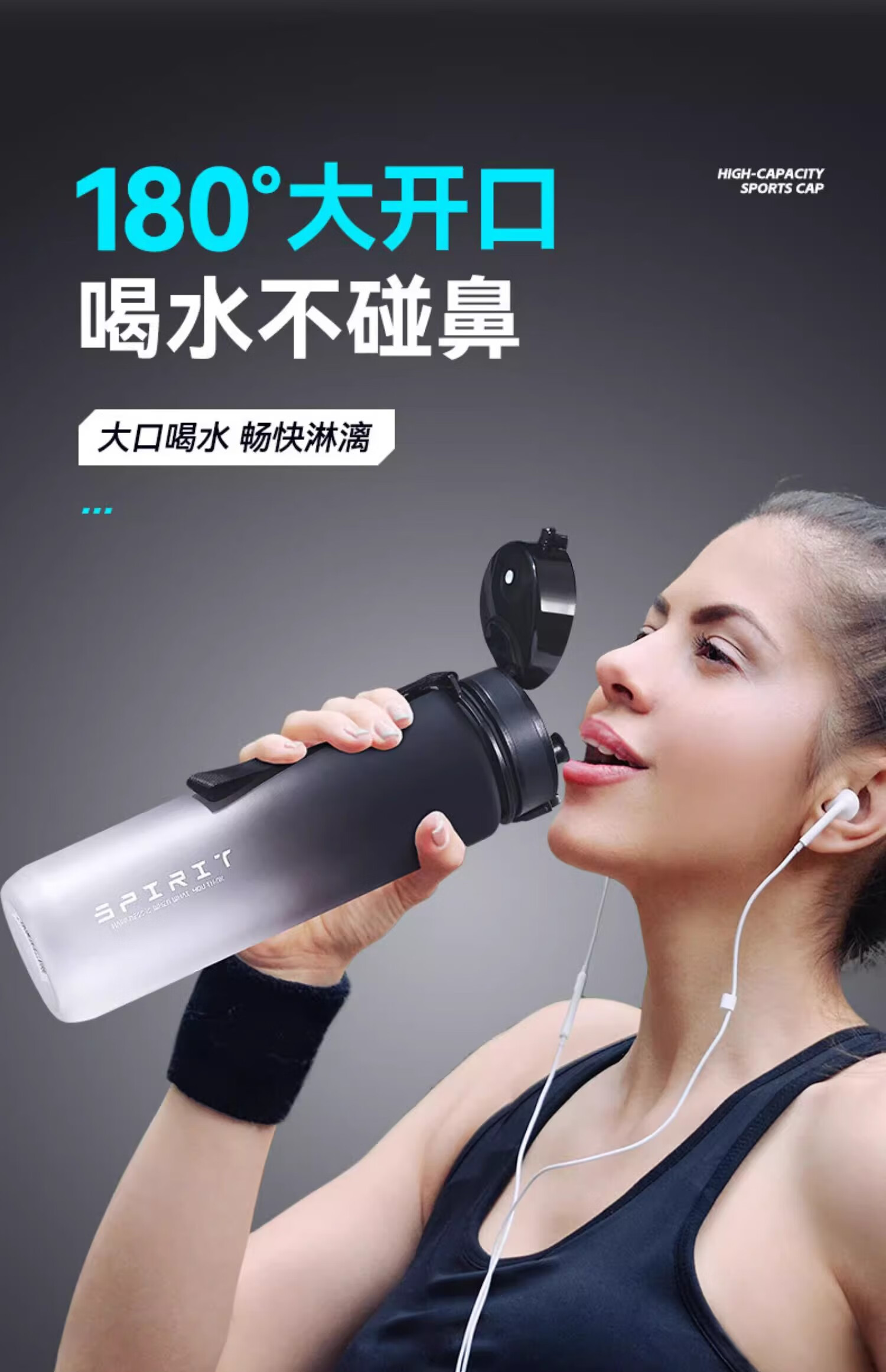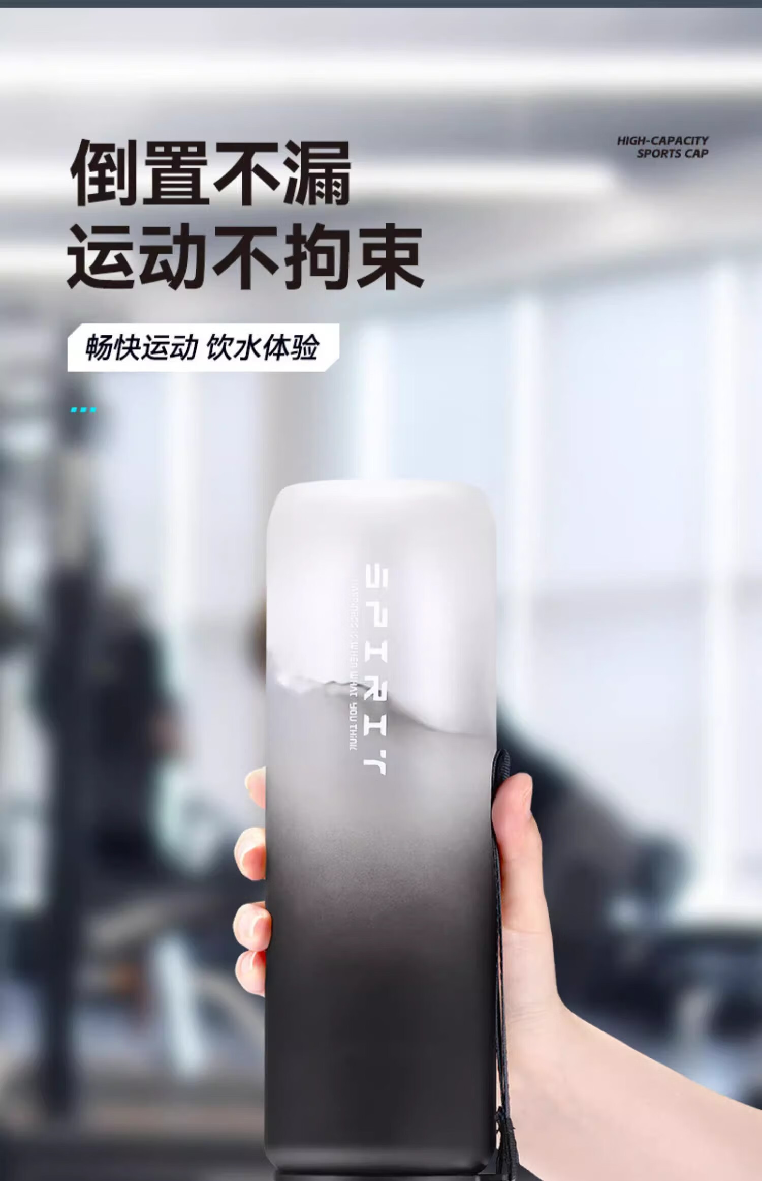 Fiyuega Sports Water Cup Large Capacity Large Water Cup Men's Fitness Water Cup Frosted Gradient Plastic Cup with Tea Leak Student Water Cup Black and White Gradient 650ml