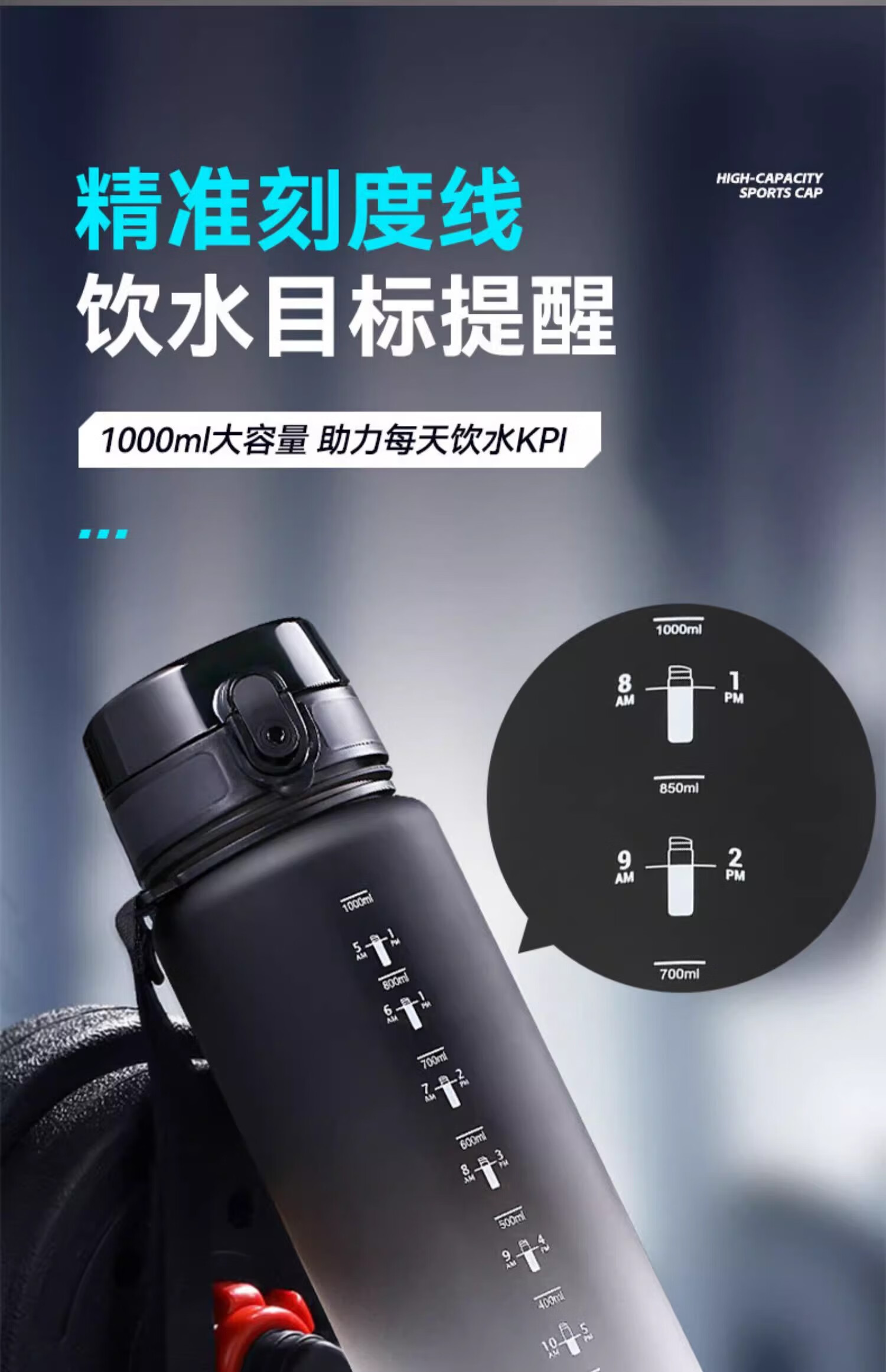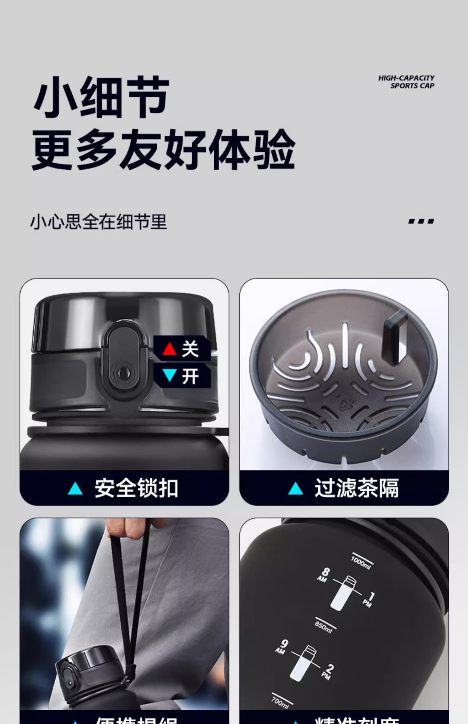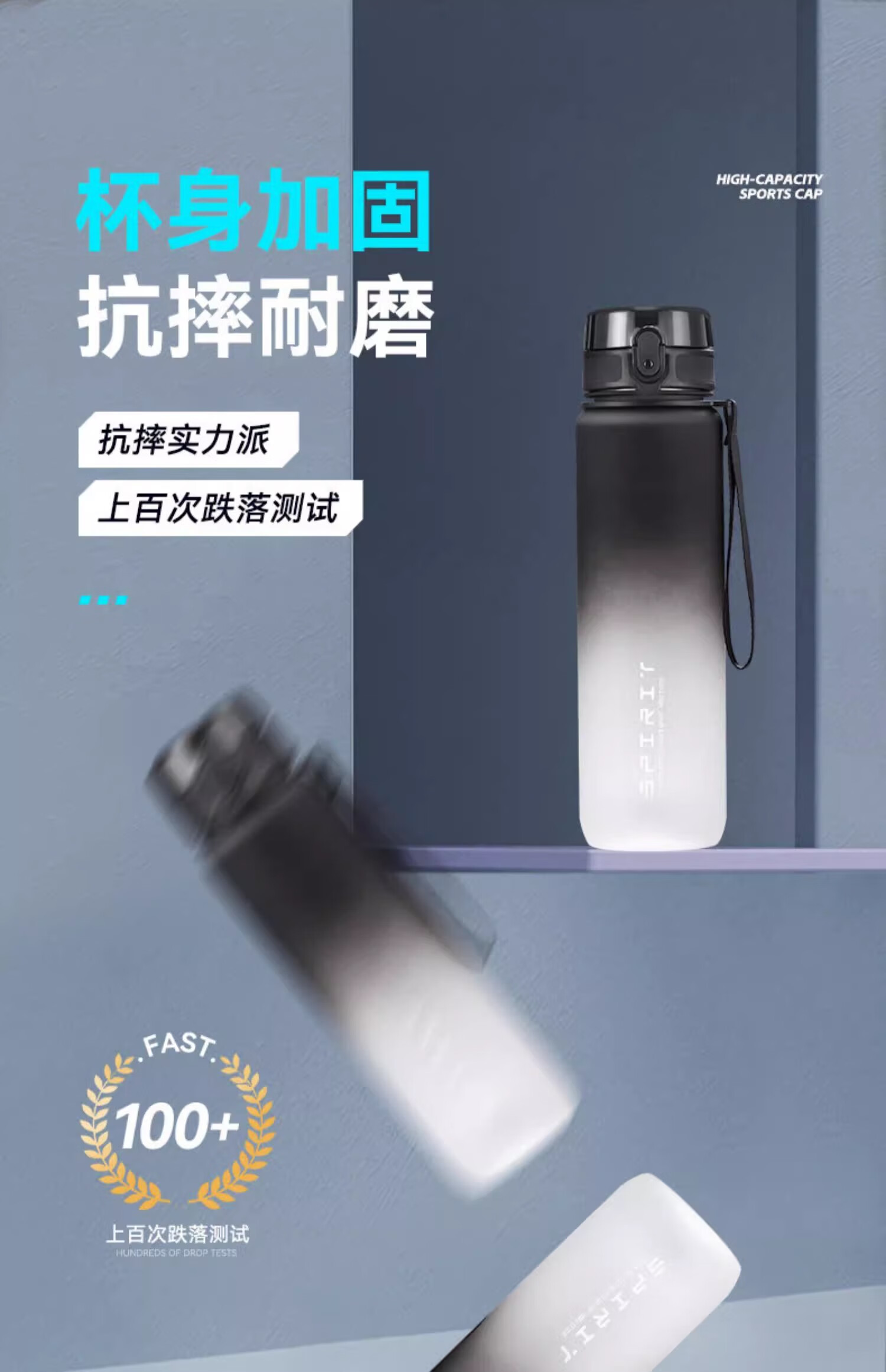 Fiyuega Sports Water Cup Large Capacity Large Water Cup Men's Fitness Water Cup Frosted Gradient Plastic Cup with Tea Leak Student Water Cup Black and White Gradient 650ml