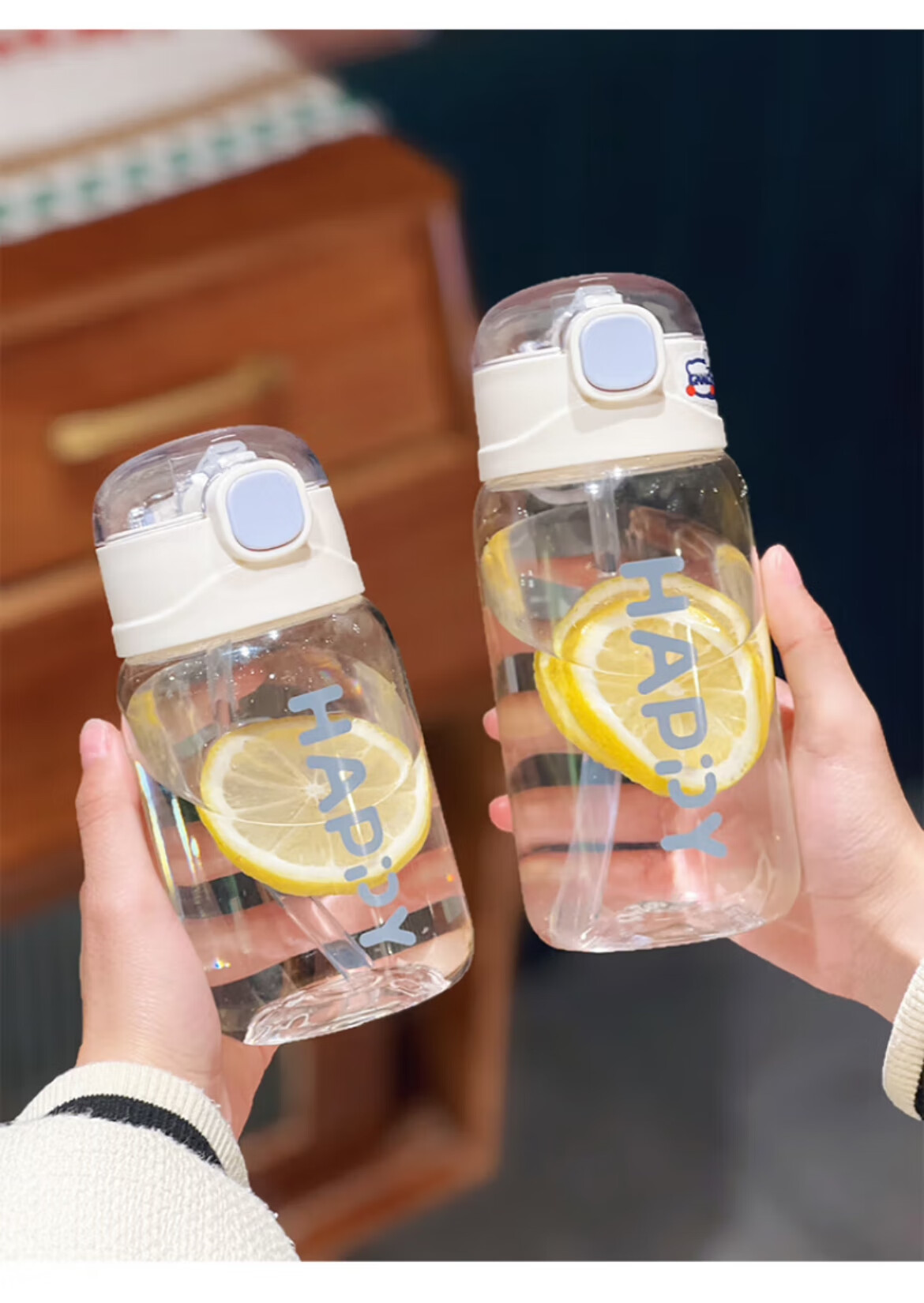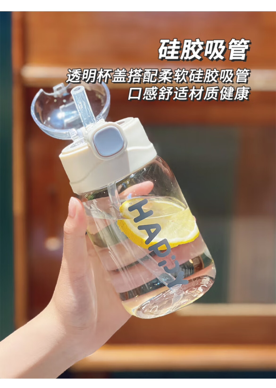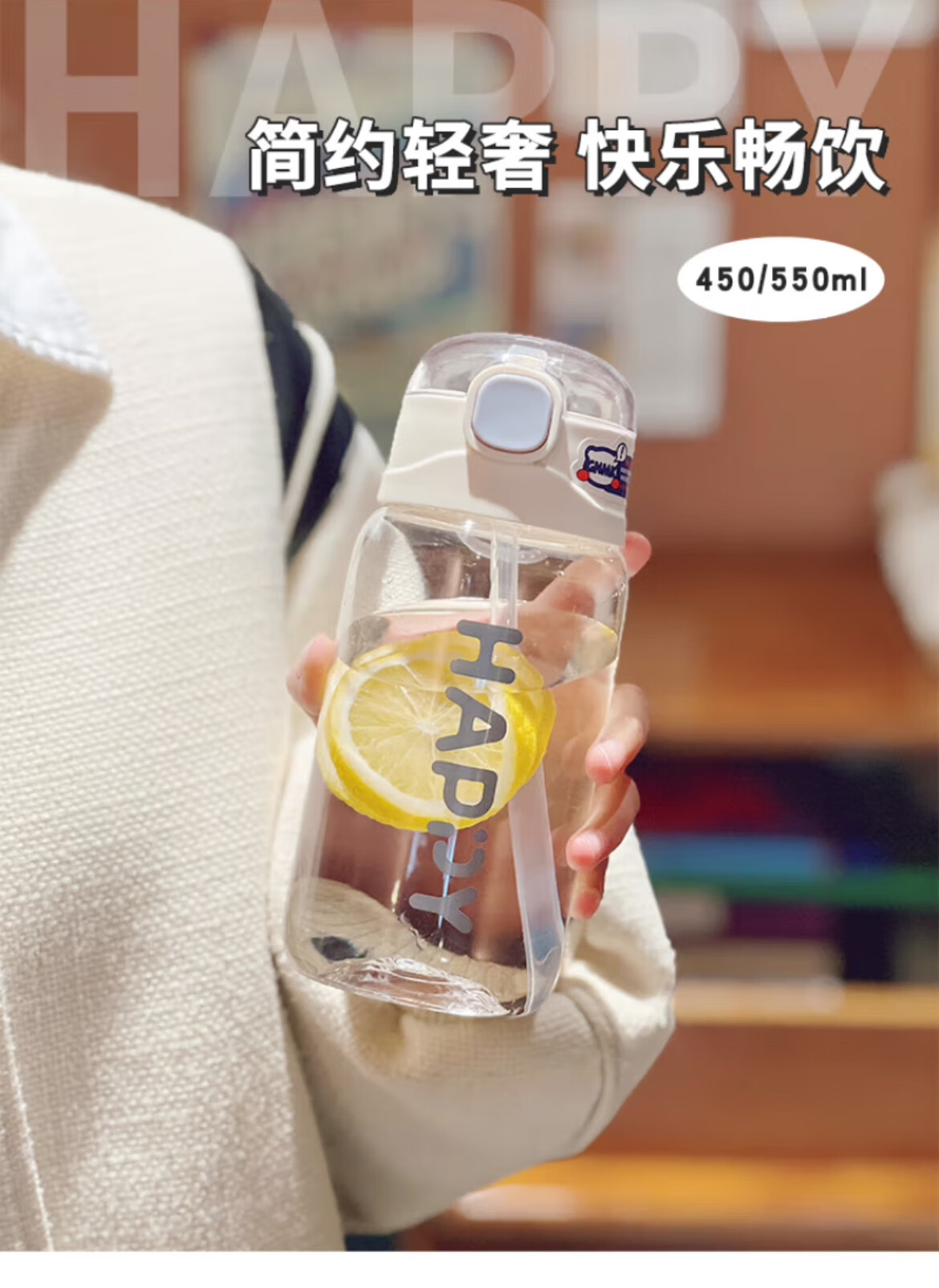 New Spring Simple Straw Plastic Cup High-Looking Student Water Cup Portable Sports Cup Large Capacity Line Gray 550ml Single Cup