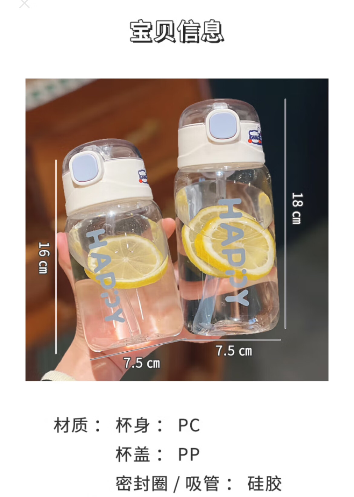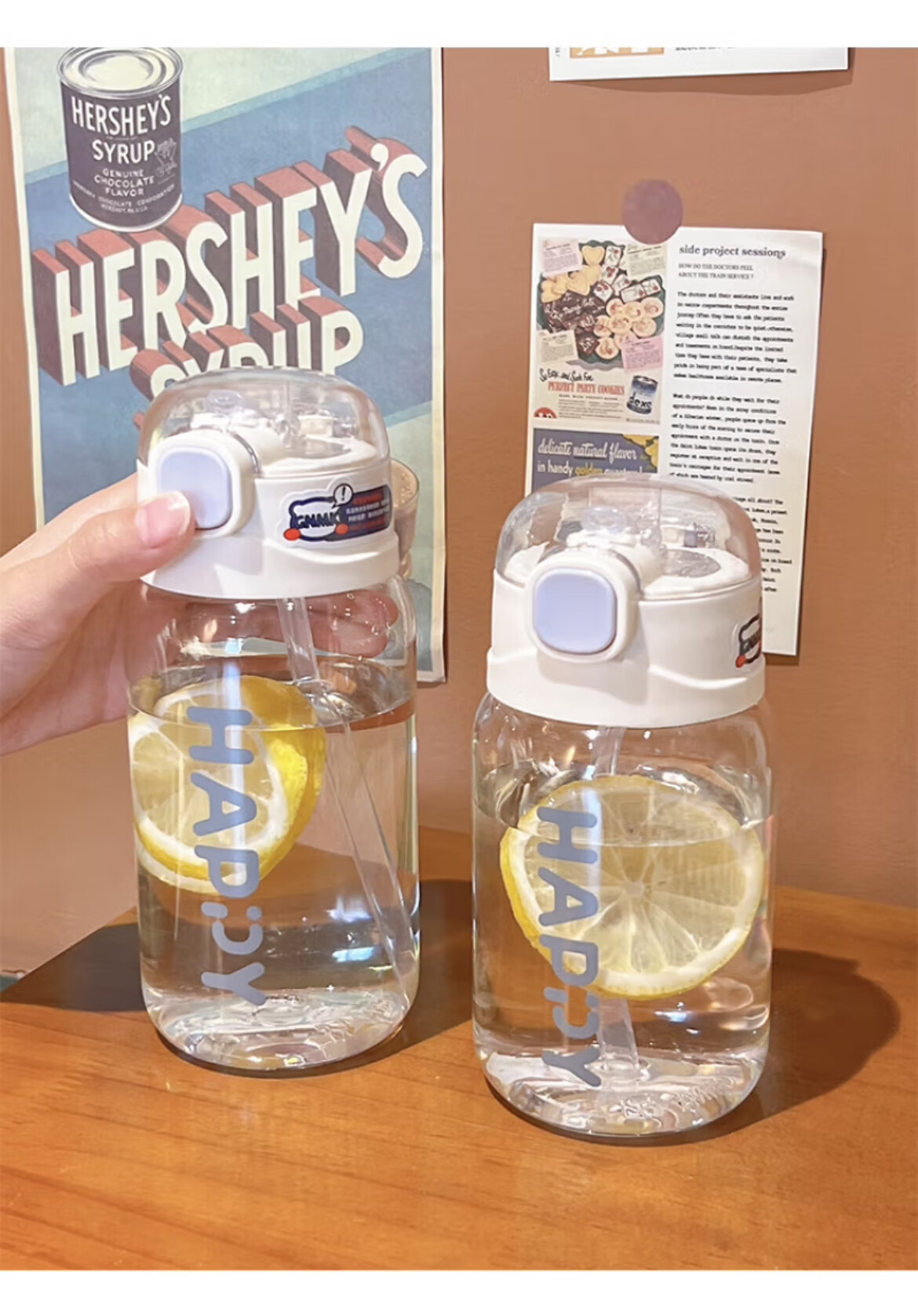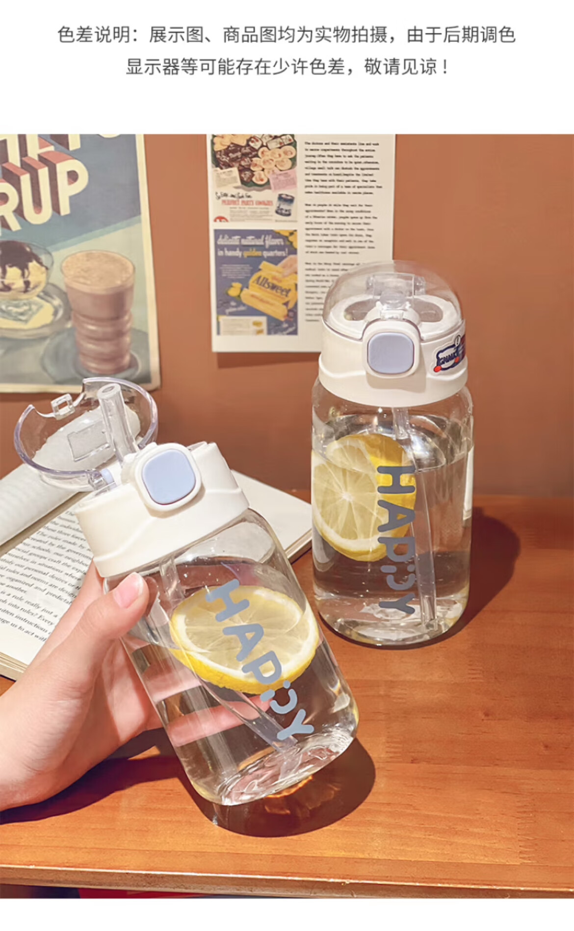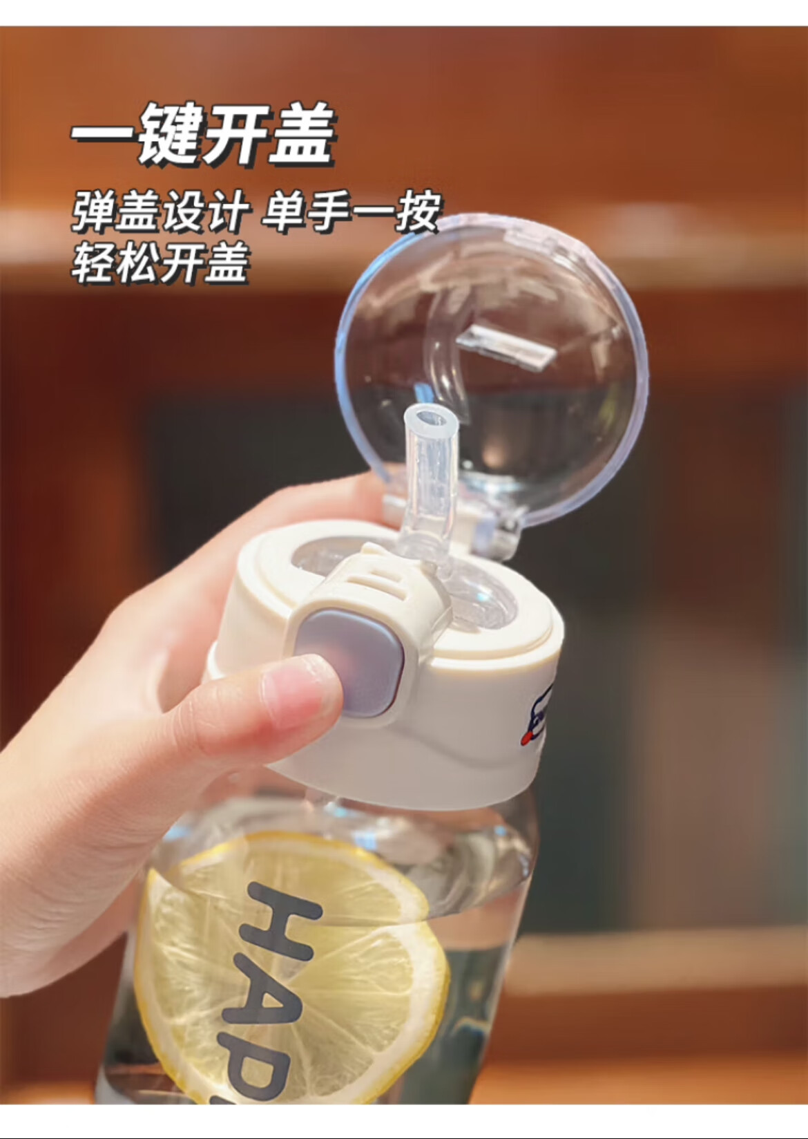 New Spring Simple Straw Plastic Cup High-Looking Student Water Cup Portable Sports Cup Large Capacity Line Gray 550ml Single Cup