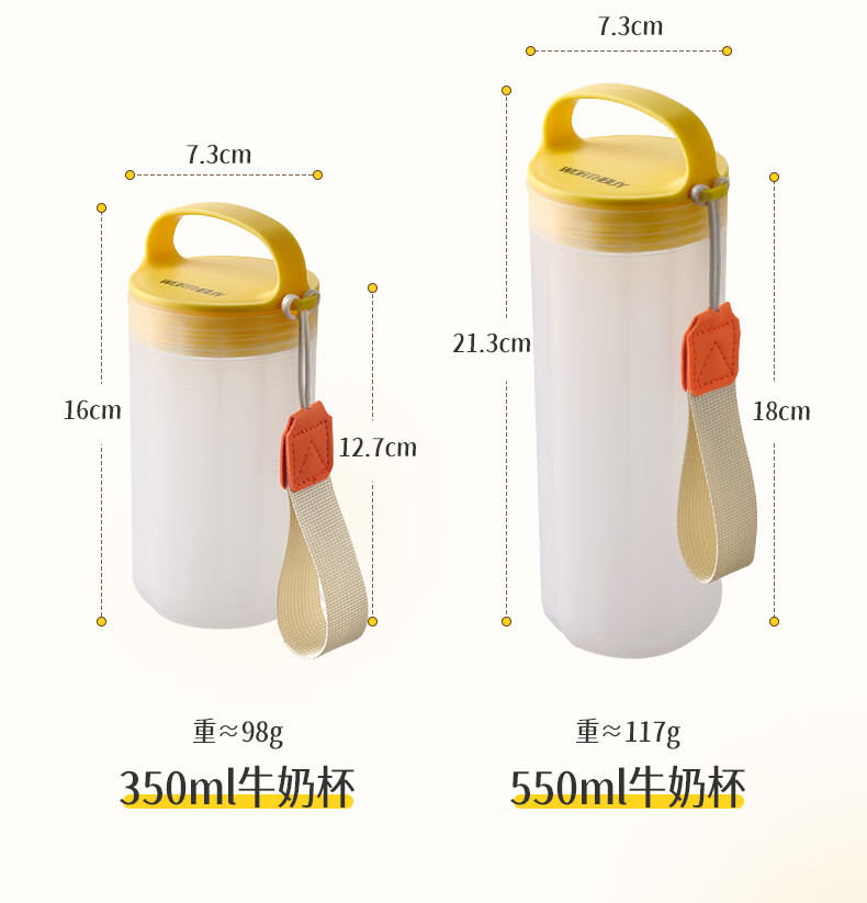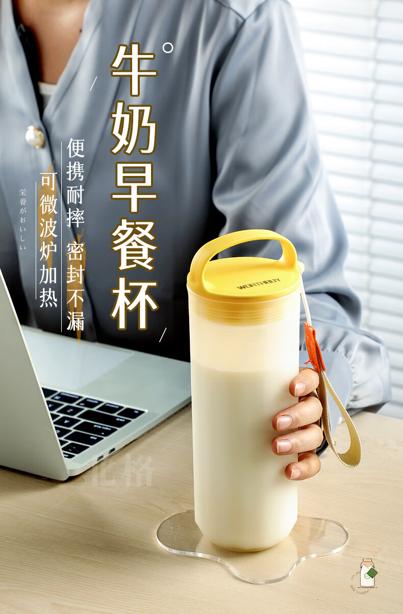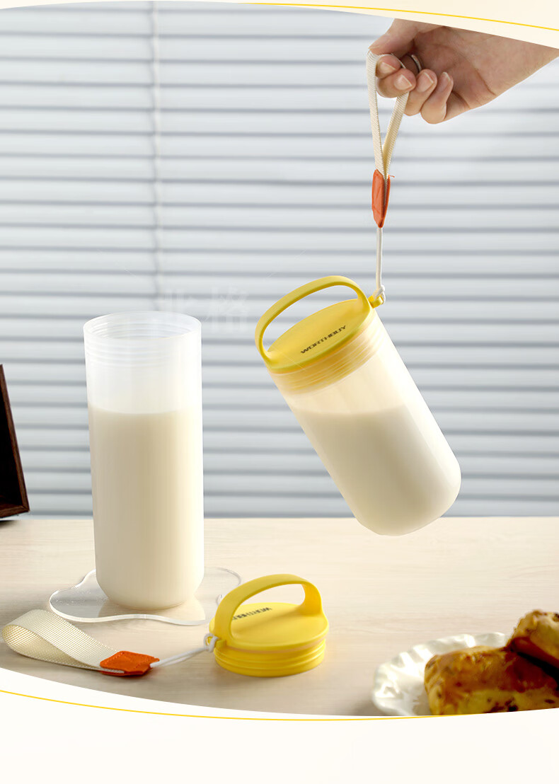 Beige milk cup, take-away work breakfast cup, household portable cup, microwaveable, sealed soy milk, high temperature resistant hot drinking water cup, food grade PP breakfast cup 550ml lemon yellow