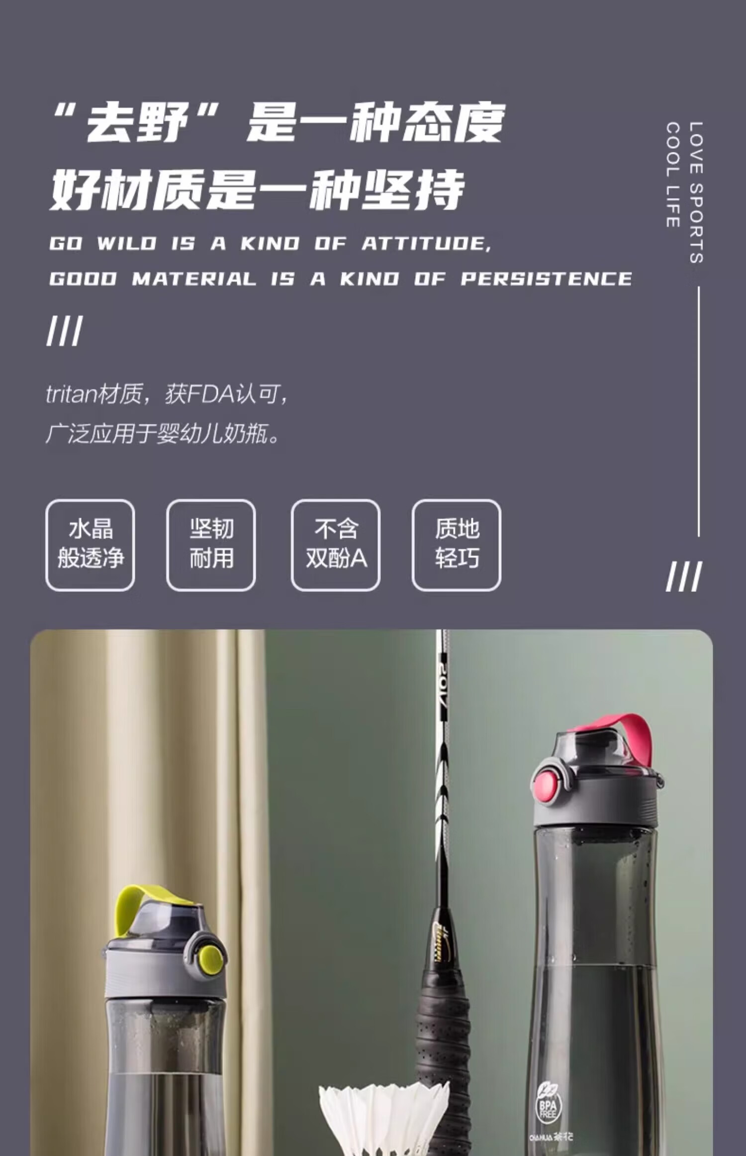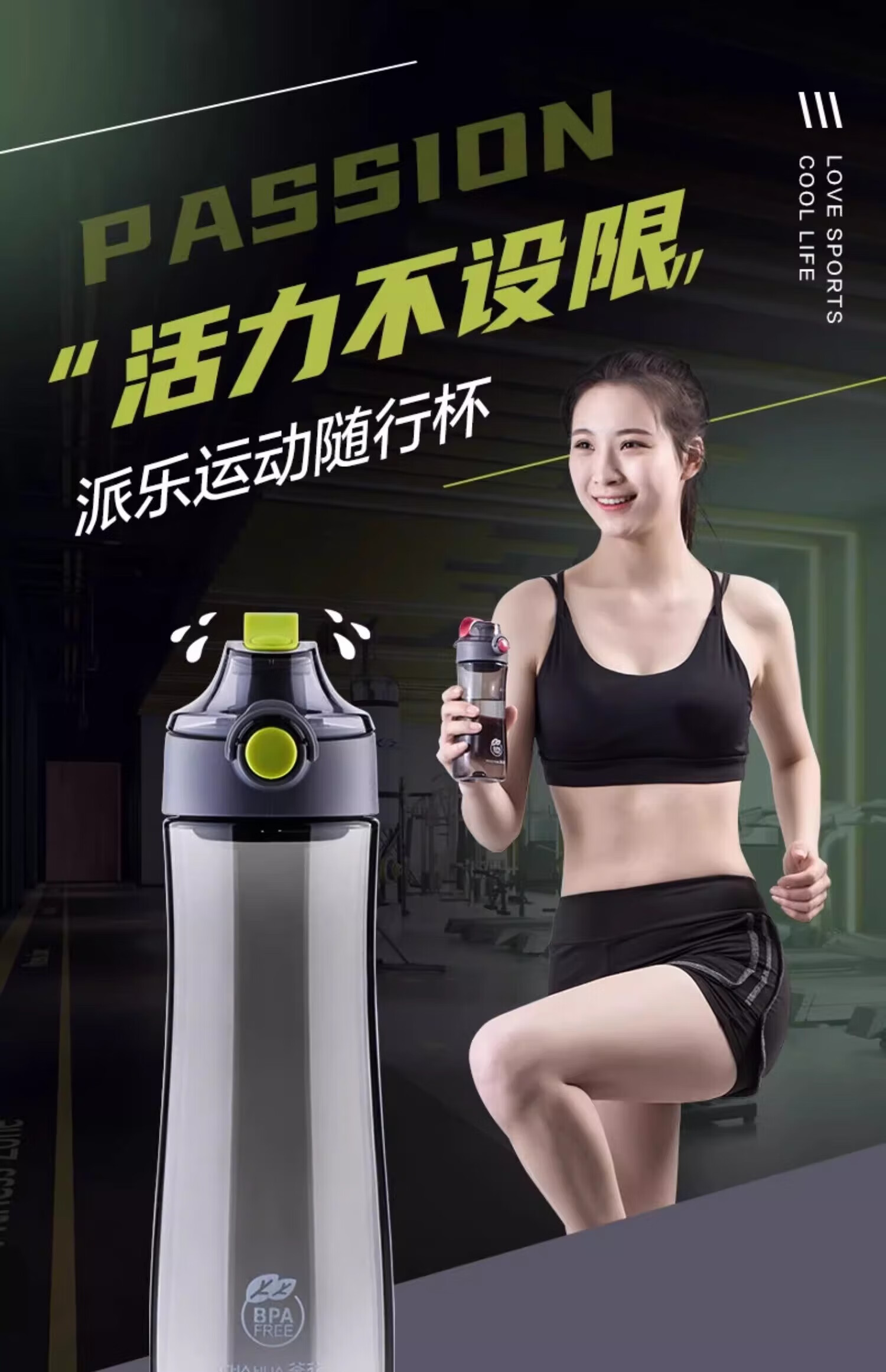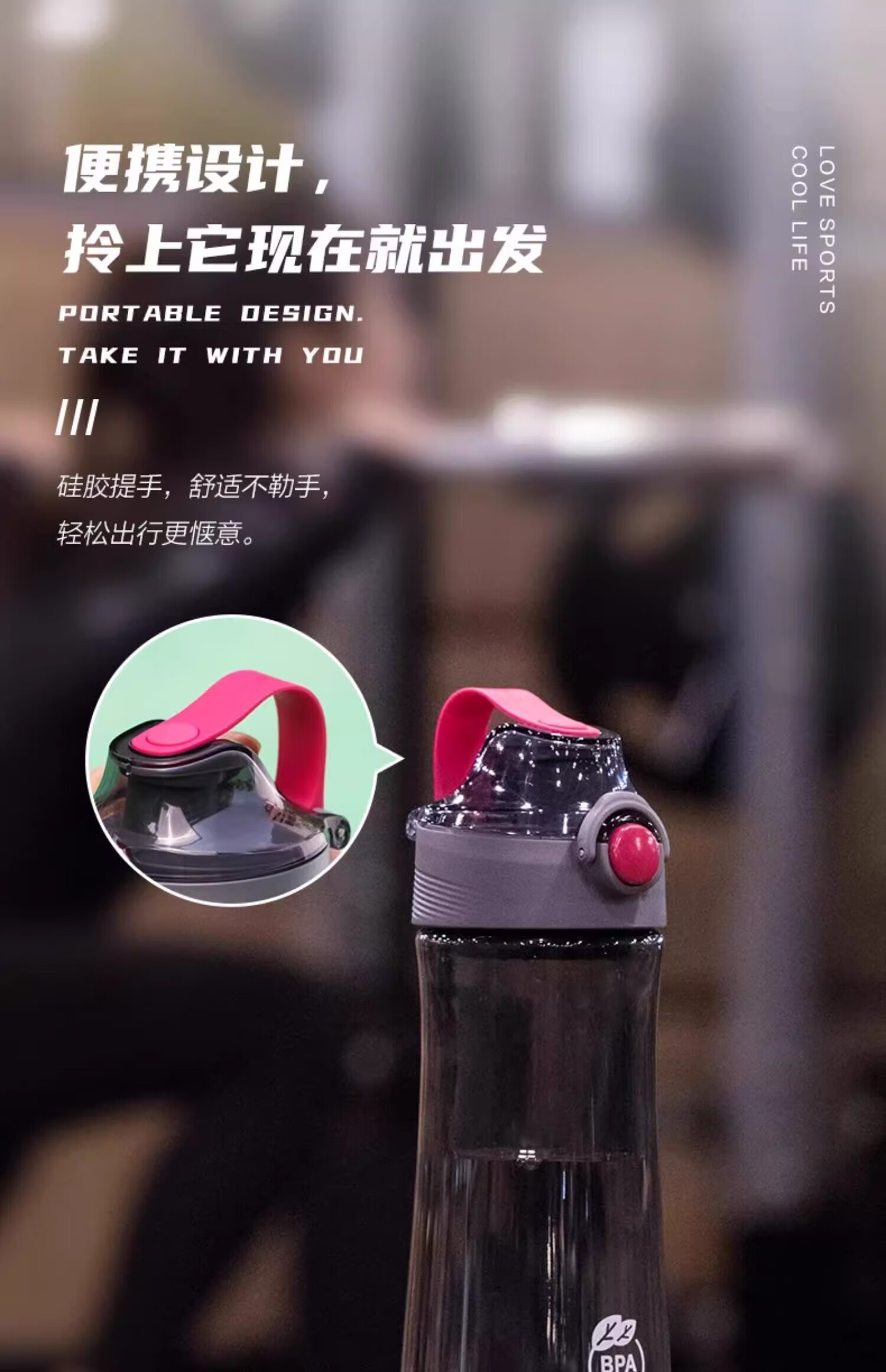 Camellia (CHAHUA) tritan water cup summer plastic cup portable sports fitness water bottle large capacity high temperature resistant cup pink 610ml 1