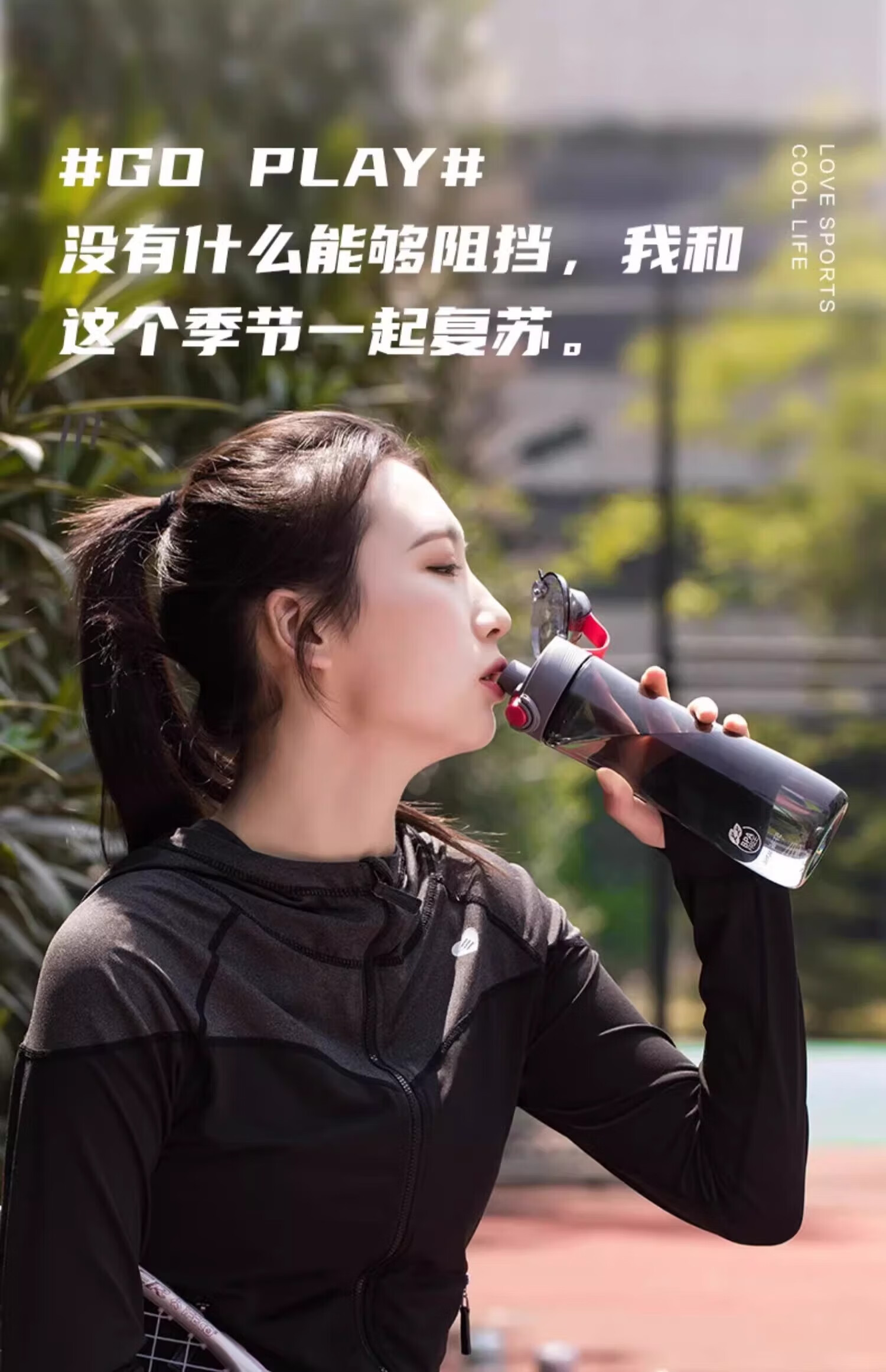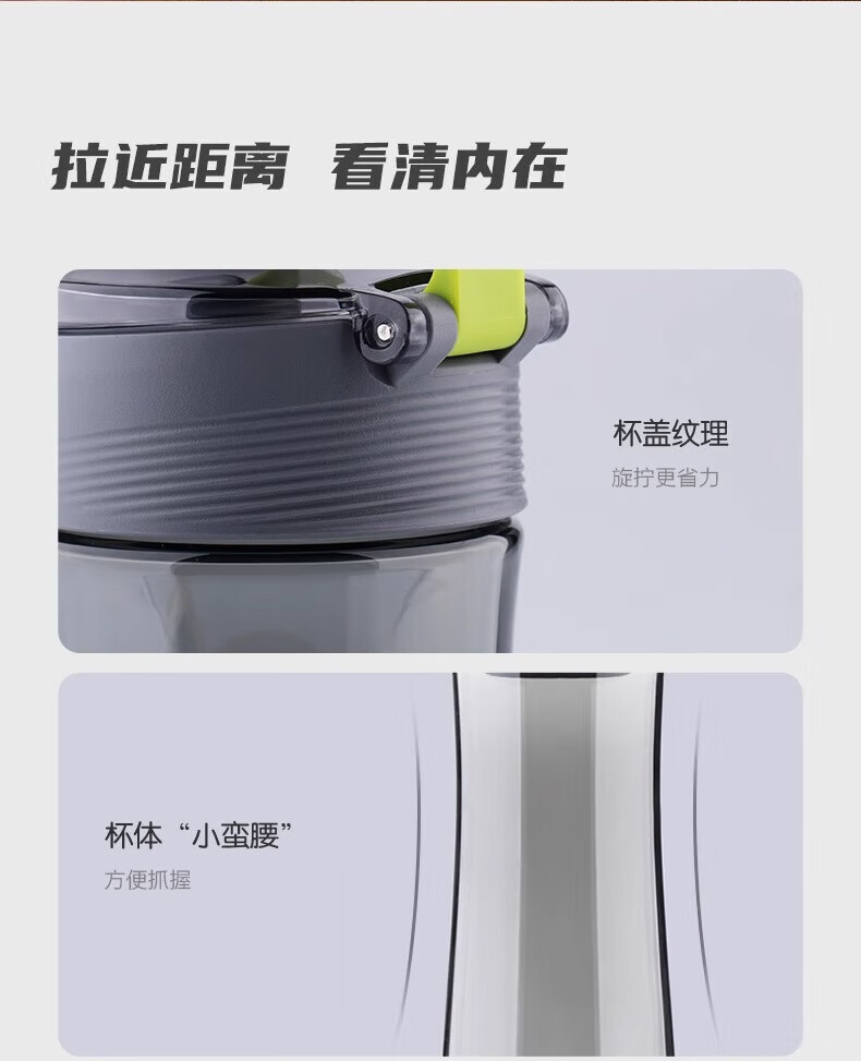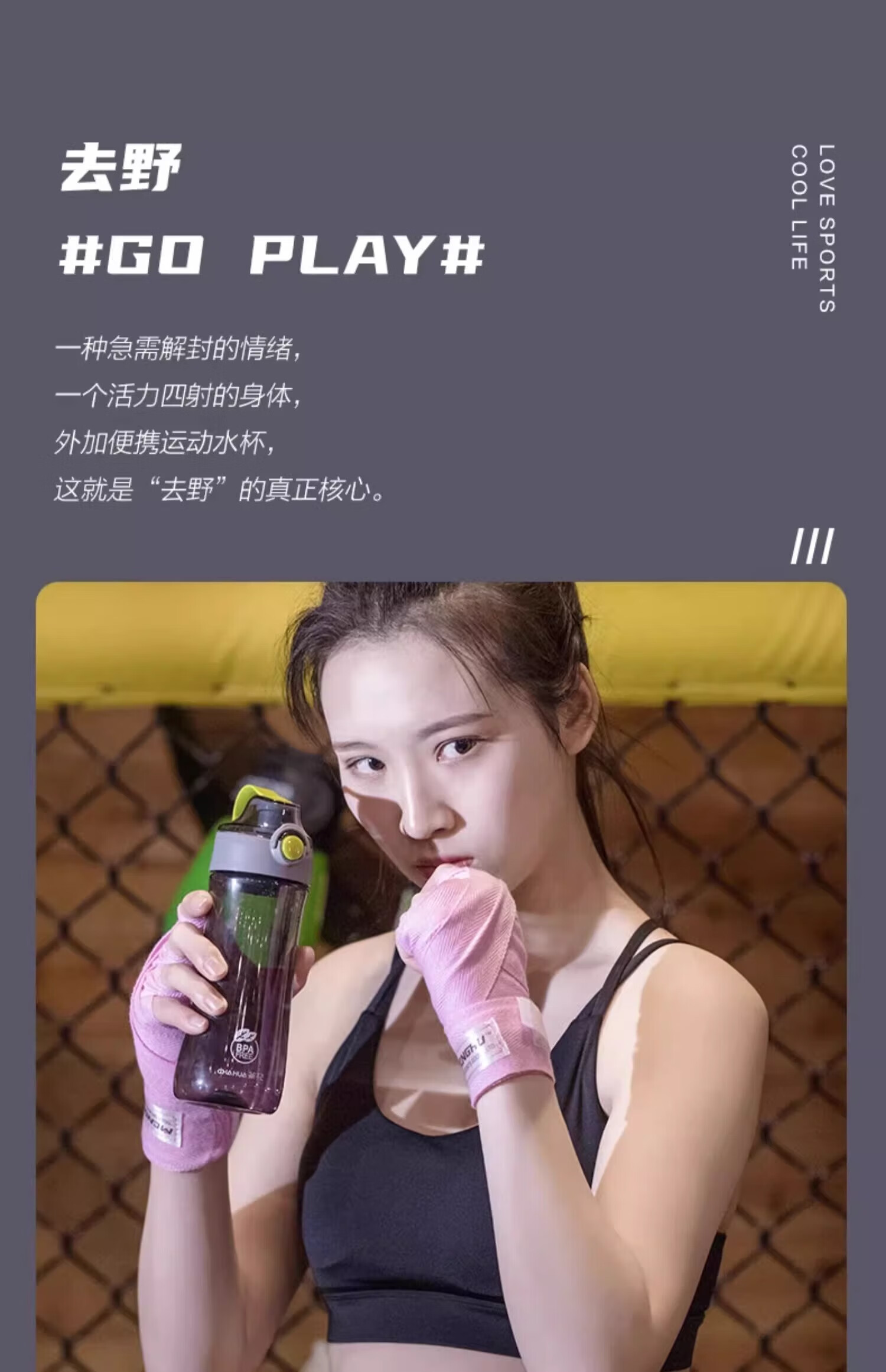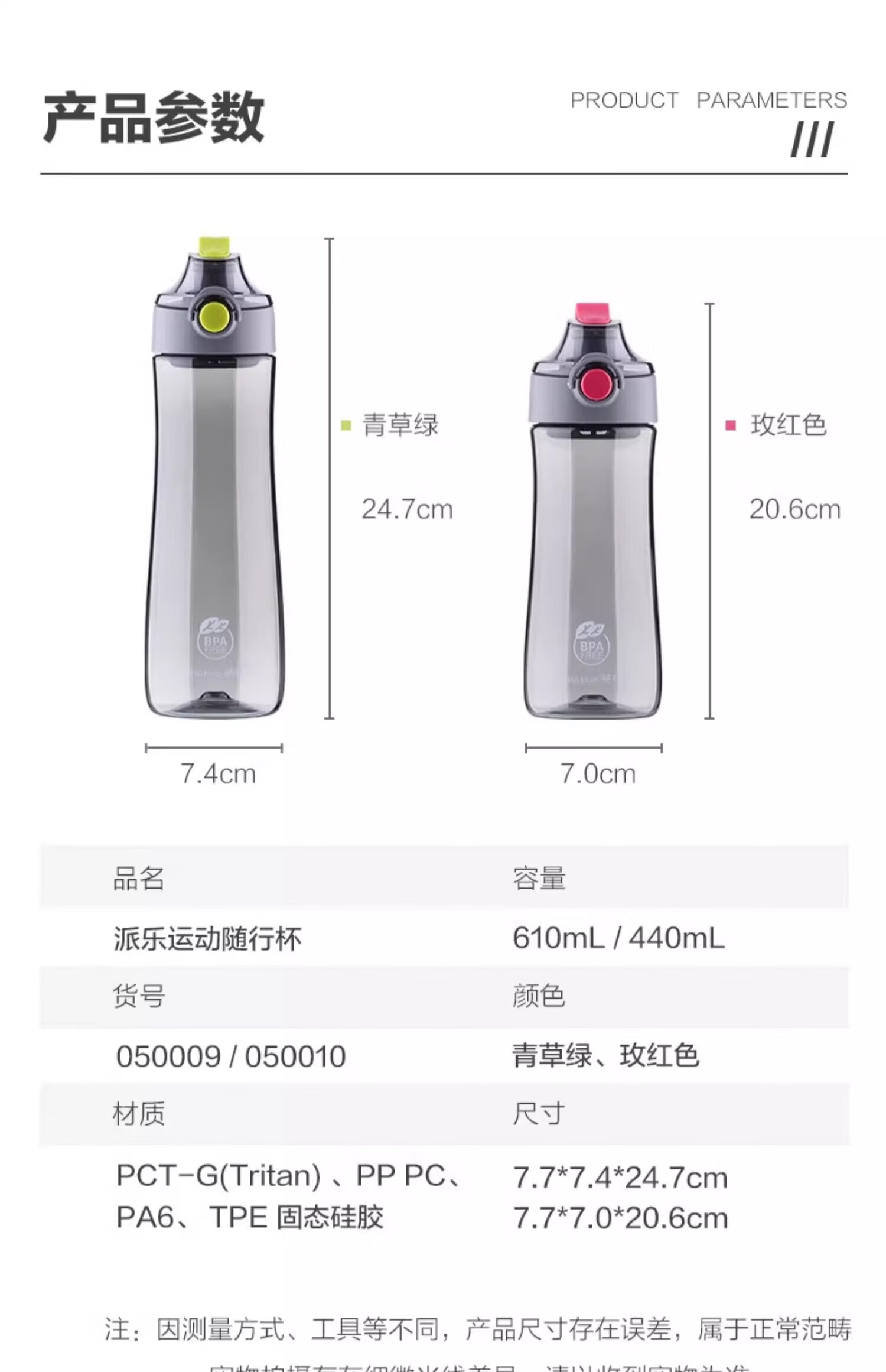 Camellia (CHAHUA) tritan water cup summer plastic cup portable sports fitness water bottle large capacity high temperature resistant cup pink 610ml 1