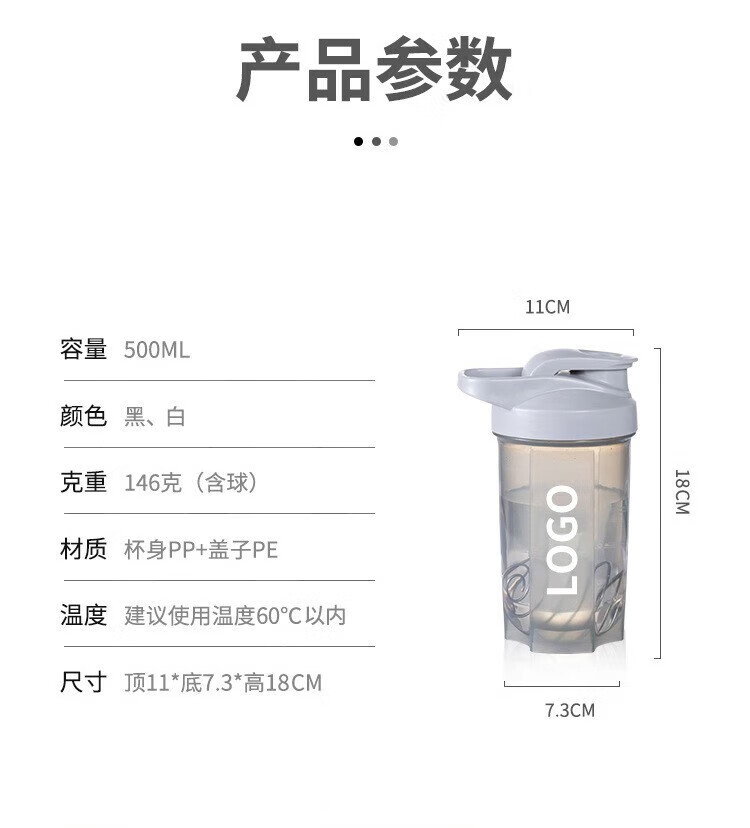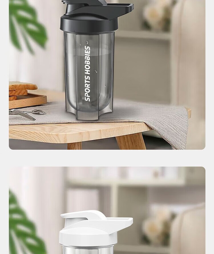 Chengyang Shake Cup Protein Powder Cup Fitness Men and Women Large Capacity Sports Water Cup with Scale Stirring Ball Plastic Cup Black Shake Cup with Stirring Ball 500ml