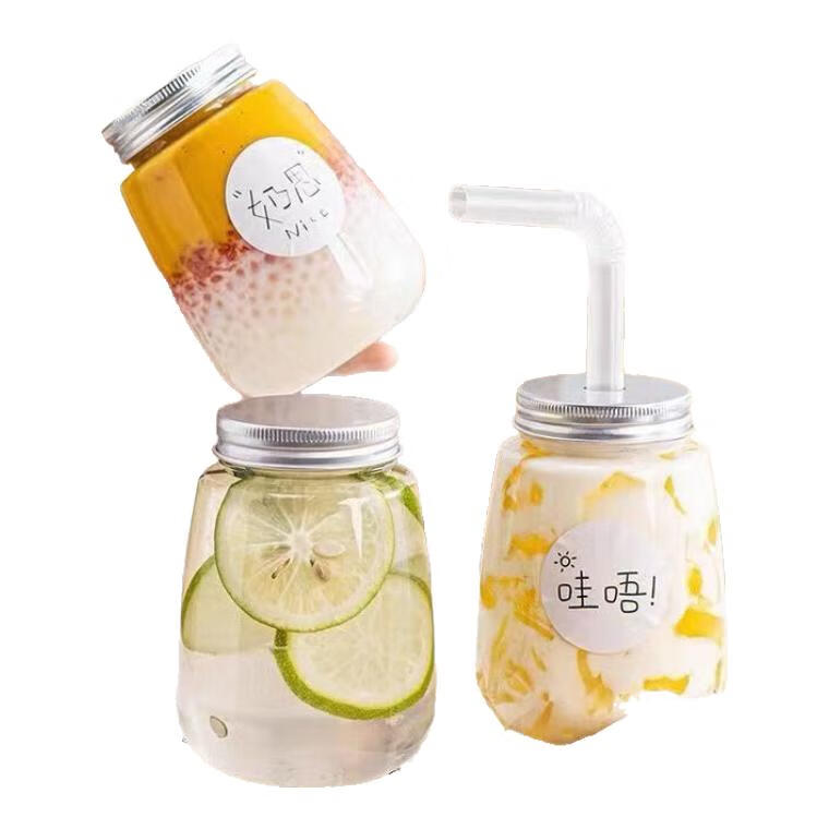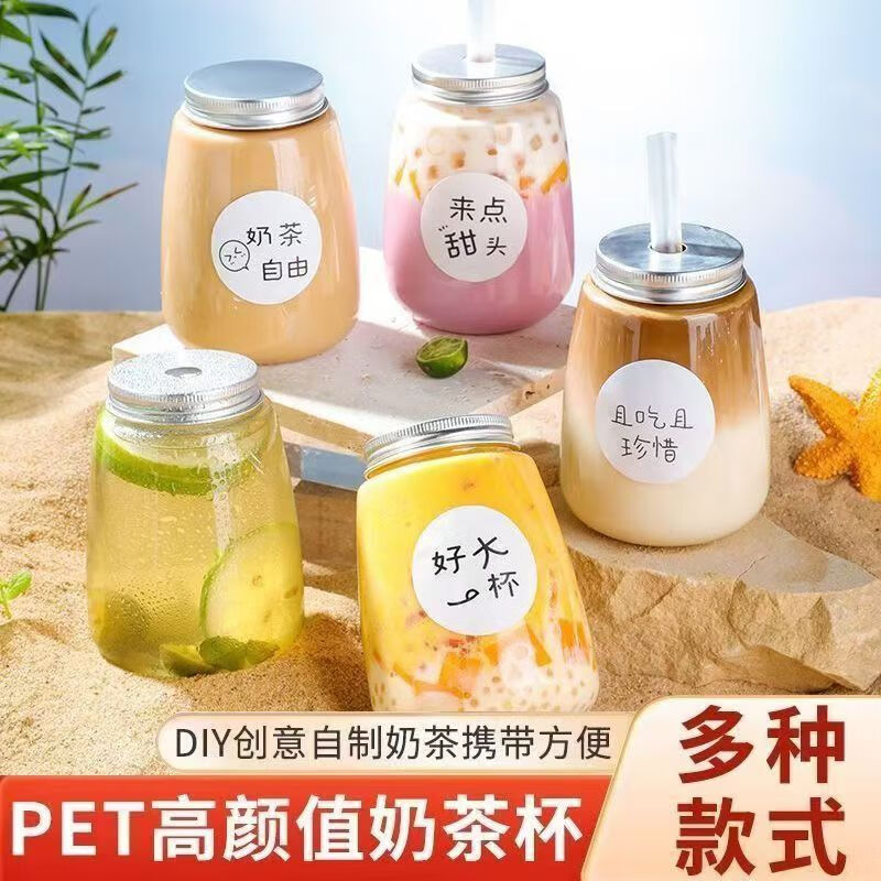Disposable milk tea cup with lid for fat household Internet celebrity juice cold drink cup poplar nectar bottle packaged u-cup 350ml 10 pieces