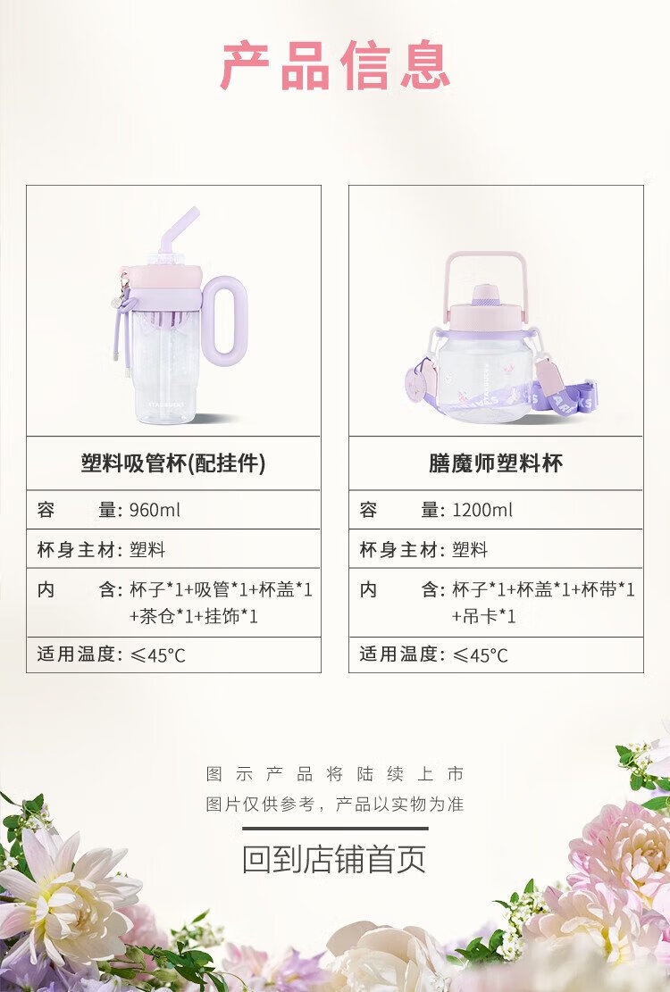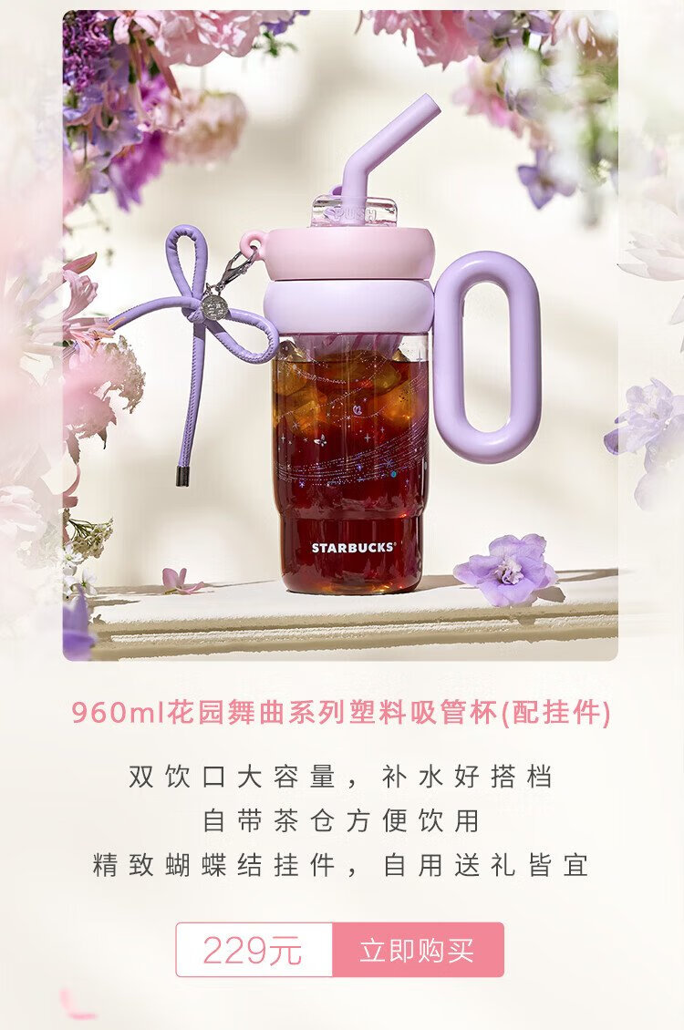 Starbucks Cup Garden Dance Series Plastic Cup Large Capacity Portable Water Cup Gift for Men and Women Thermos Plastic Cup 1200ml