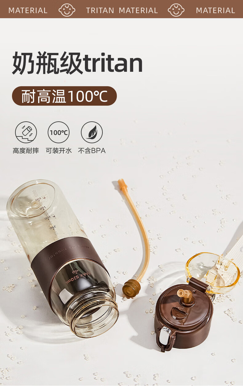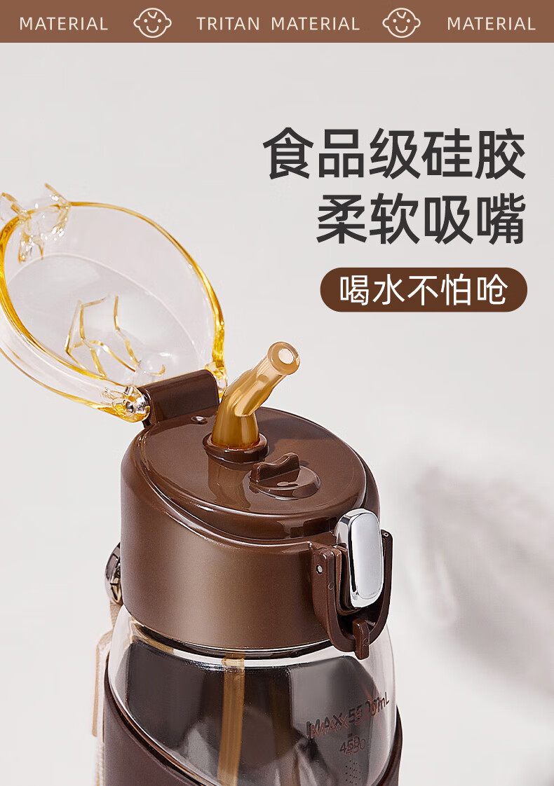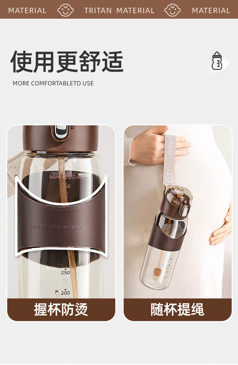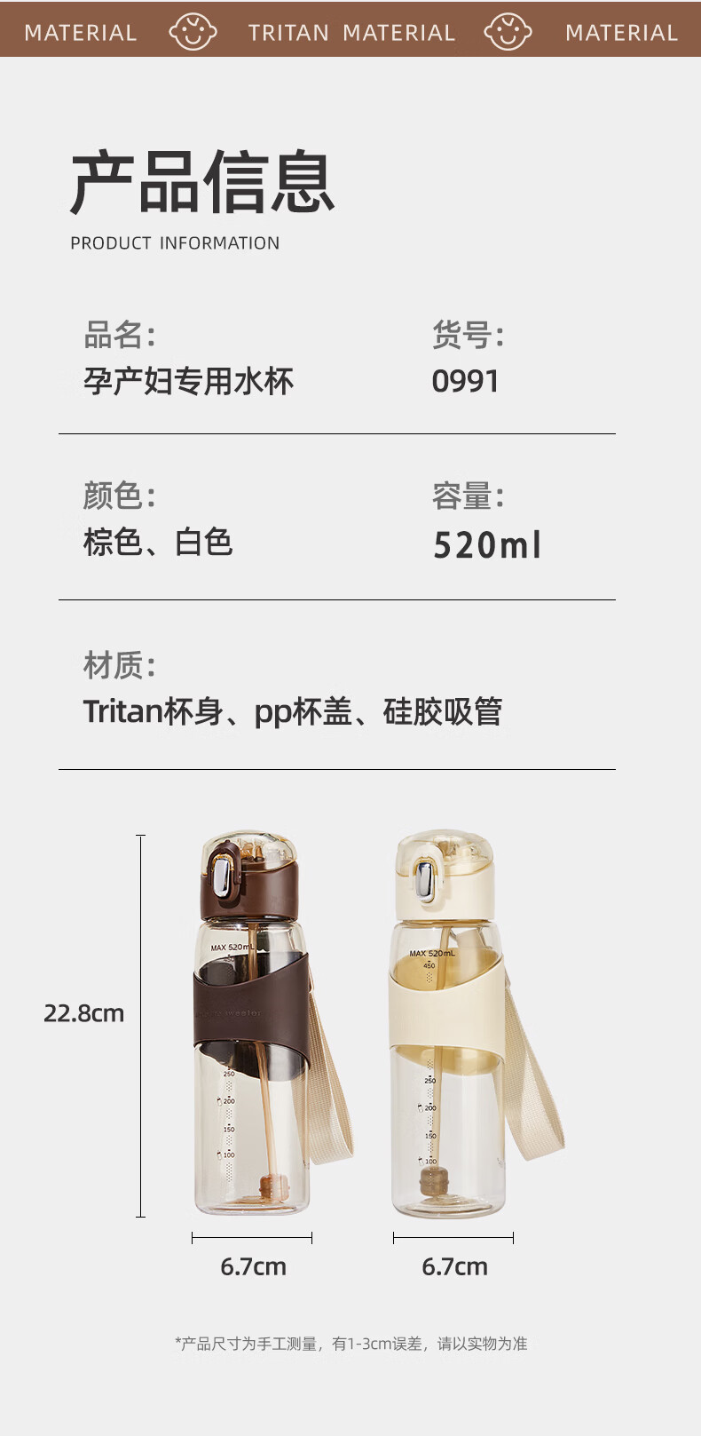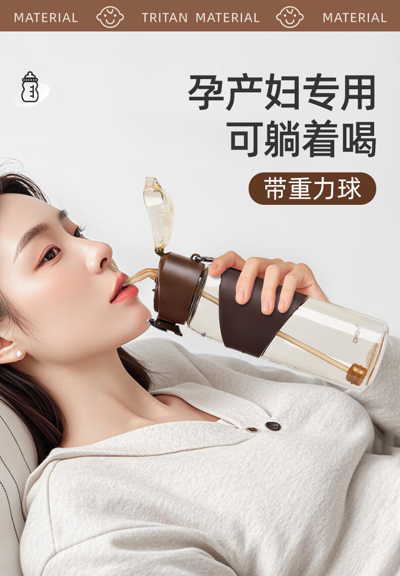 Cica straw cup for pregnant women lying down and drinking water tritan plastic children's student water cup women's summer sugar resistant with scale tritan material + cup brush + straw brush beige 520ml