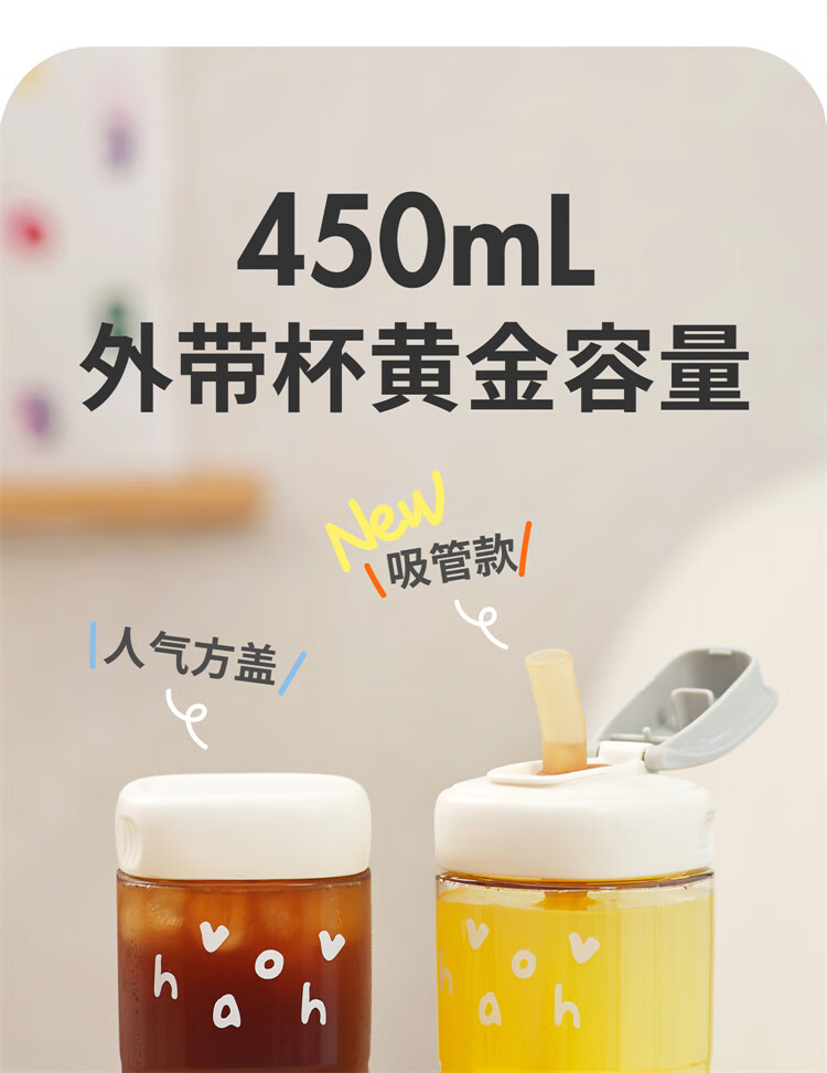 Good classmate PPSU coffee cup, good-looking water cup, high temperature resistant cup for female students, summer anti-fall straw, portable cup for children, flat lid for direct drinking 450ml