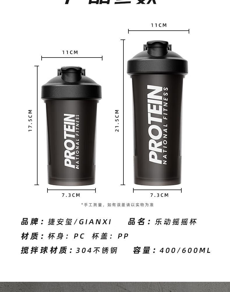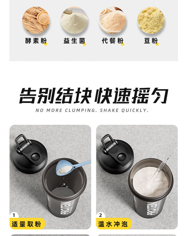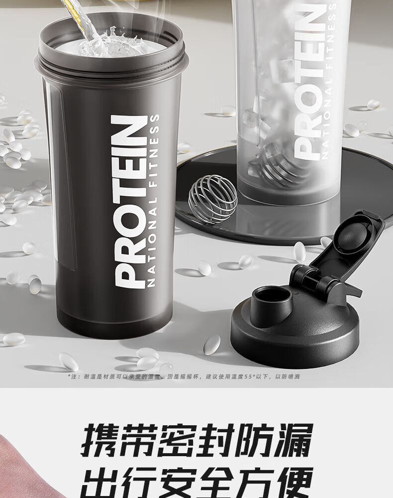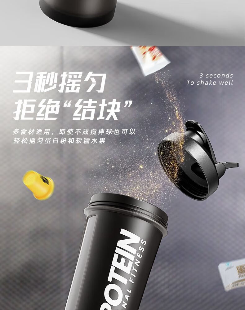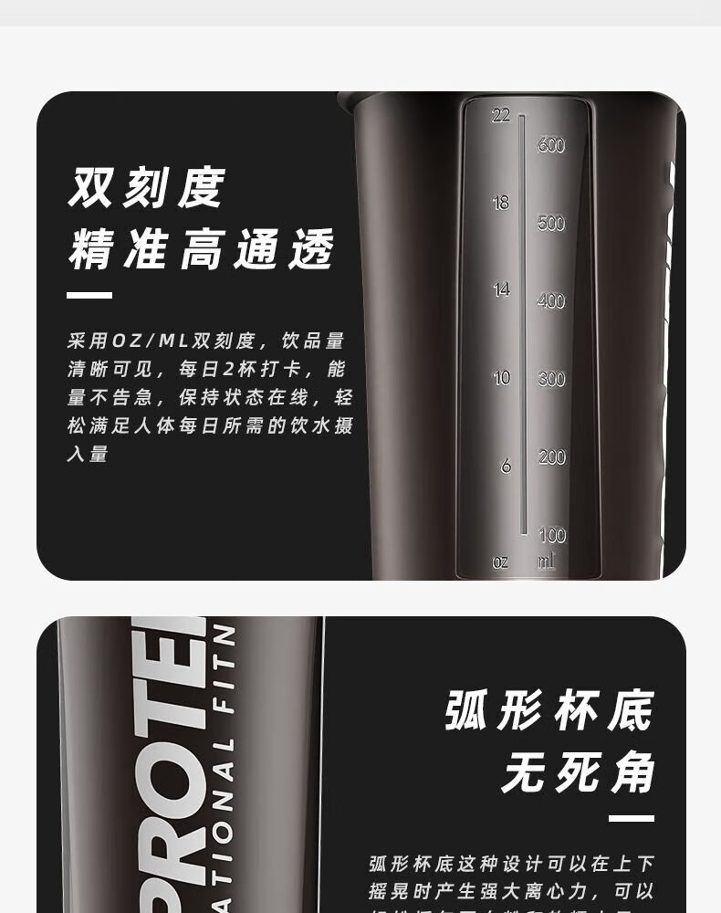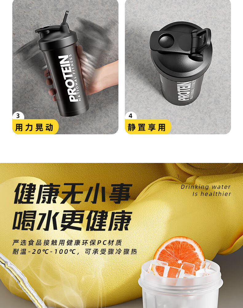 YIEXENON shaker cup protein powder shaker cup fitness large capacity sports water cup portable plastic cup with scale mixing ball 600ml obsidian black