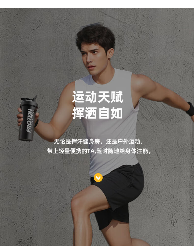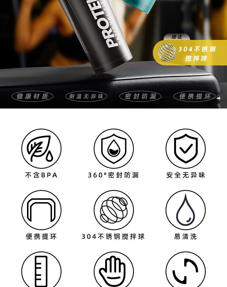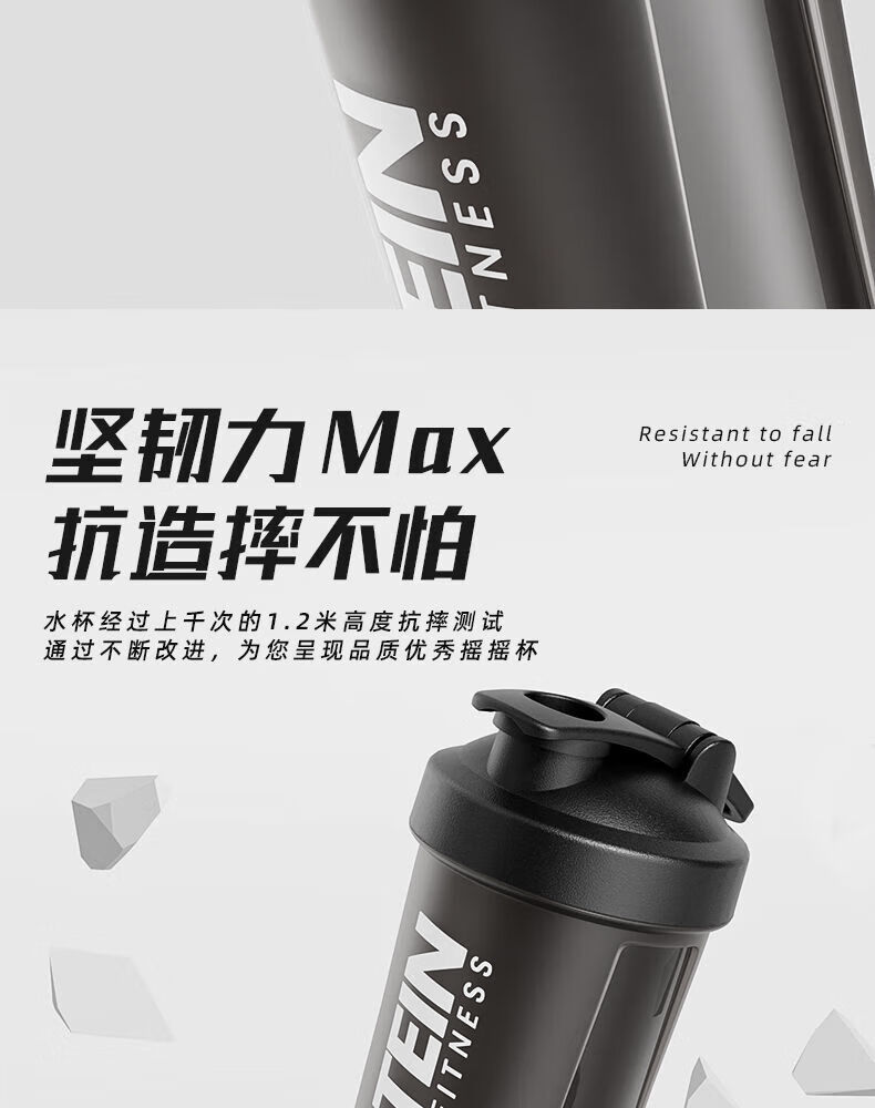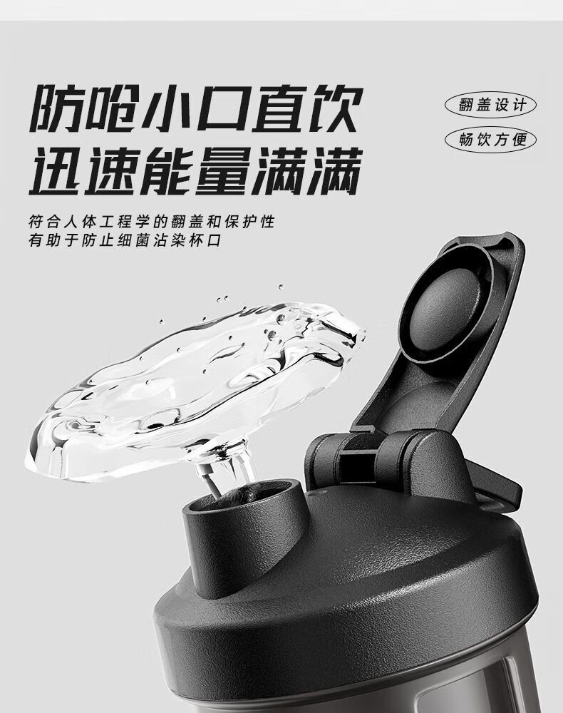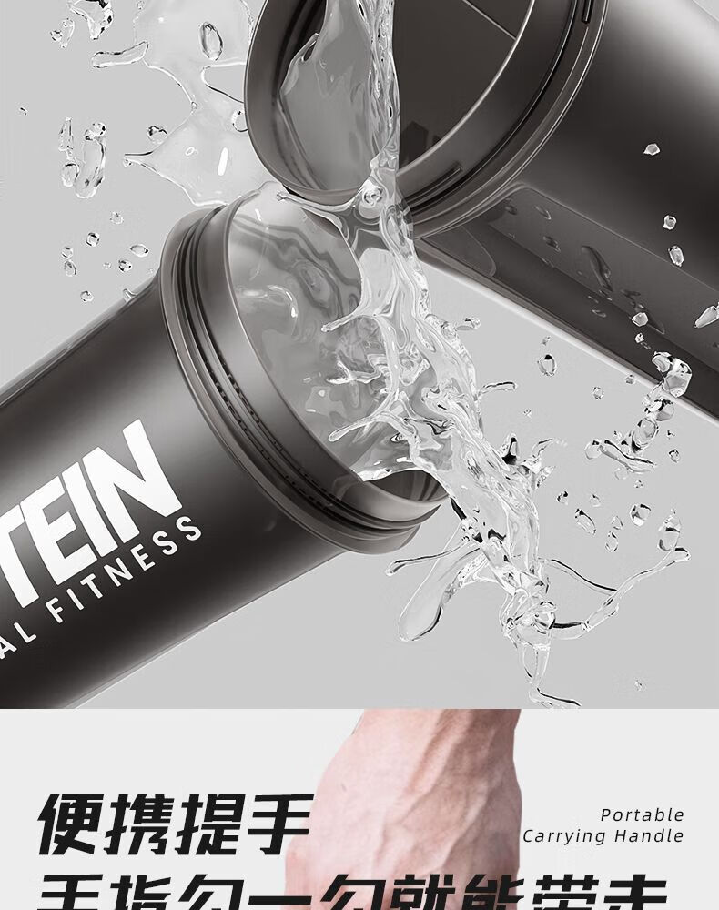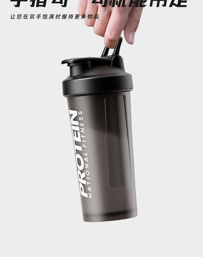 YIEXENON shaker cup protein powder shaker cup fitness large capacity sports water cup portable plastic cup with scale mixing ball 600ml obsidian black