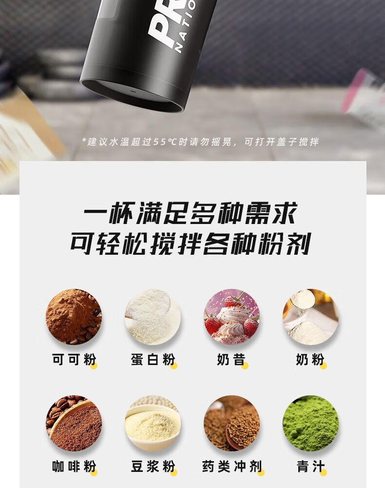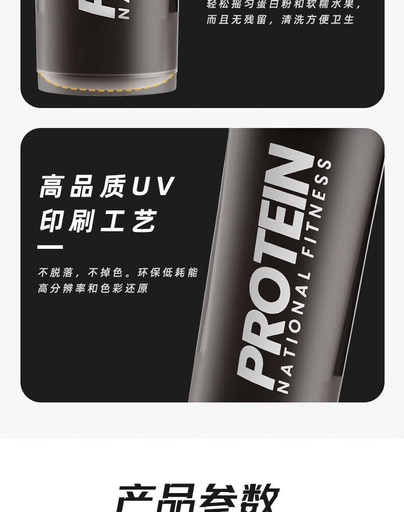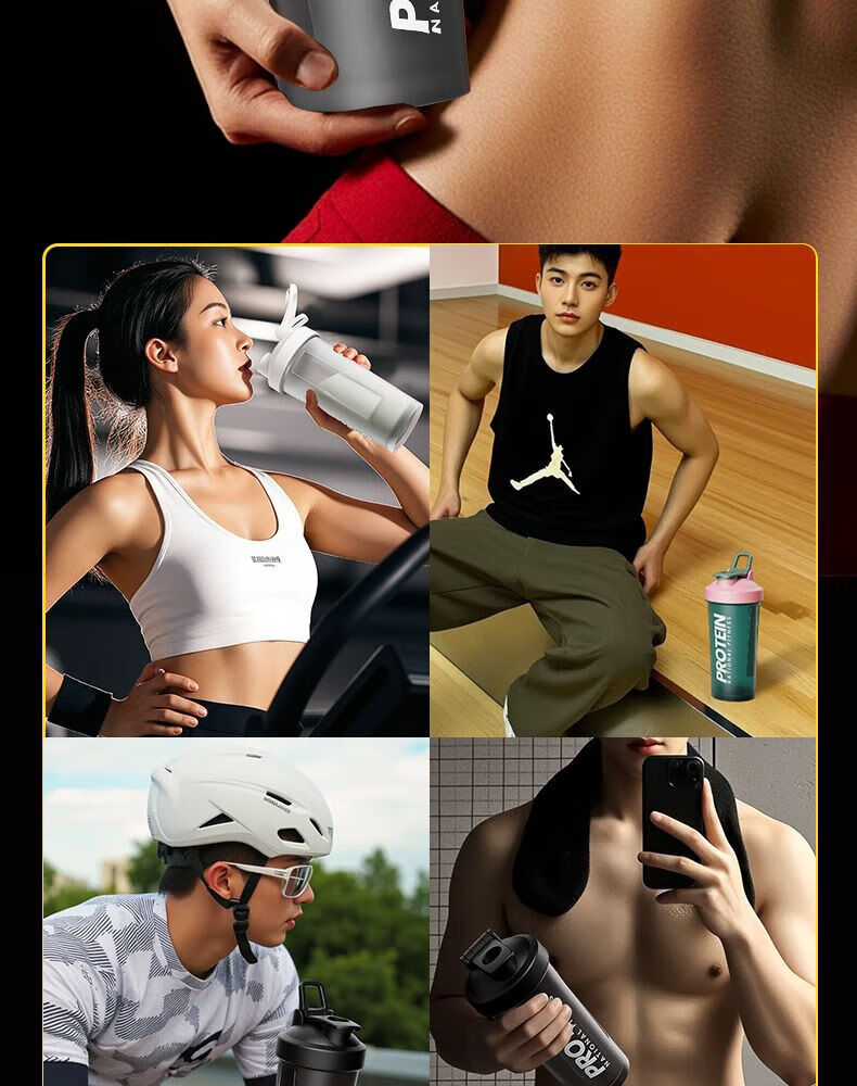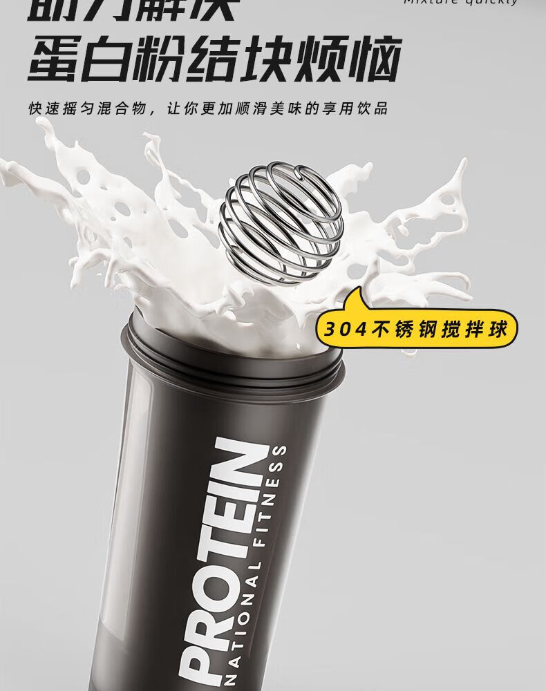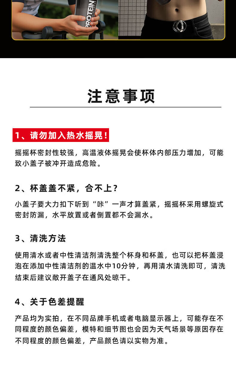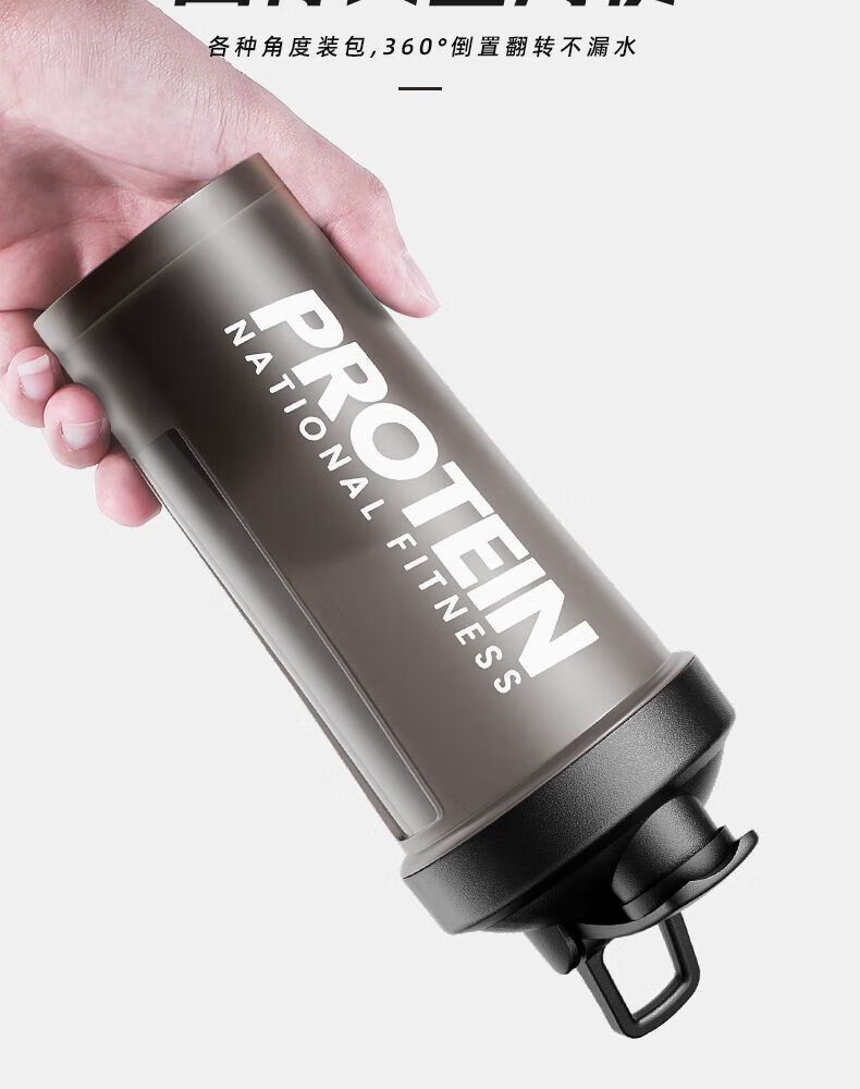 YIEXENON shaker cup protein powder shaker cup fitness large capacity sports water cup portable plastic cup with scale mixing ball 600ml obsidian black