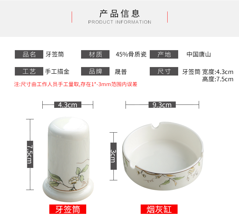 Cixiuyuan creative bone china toothpick box, ceramic toothpick holder, ceramic ashtray, ashtray tableware set, toothpick holder