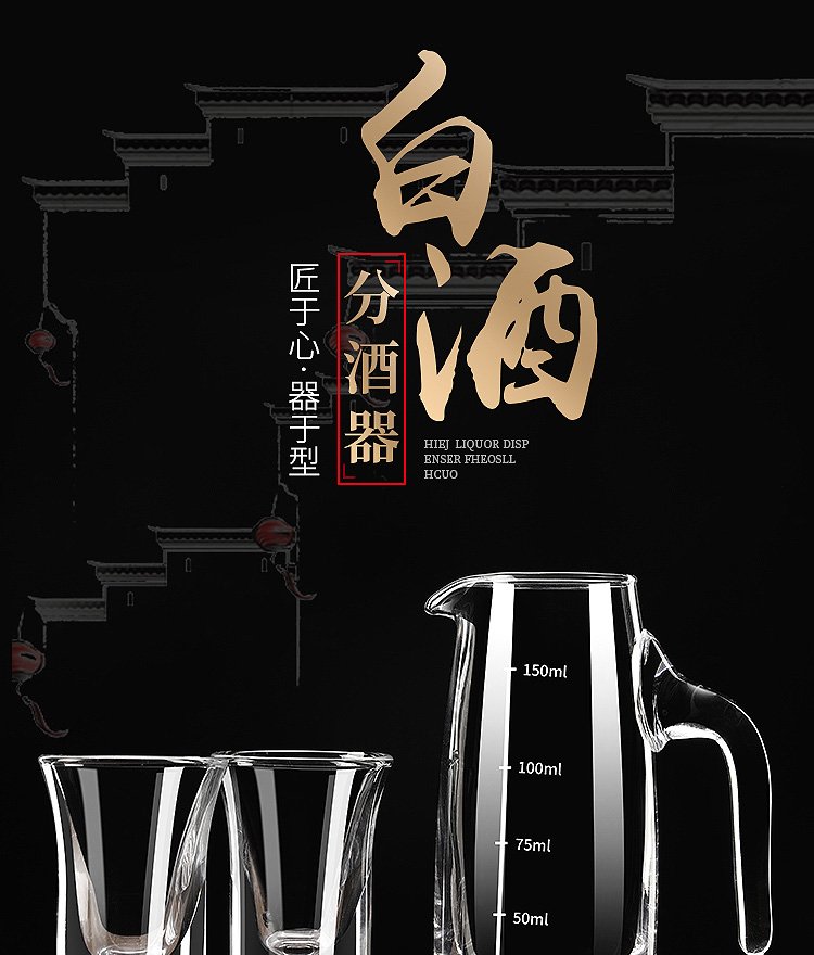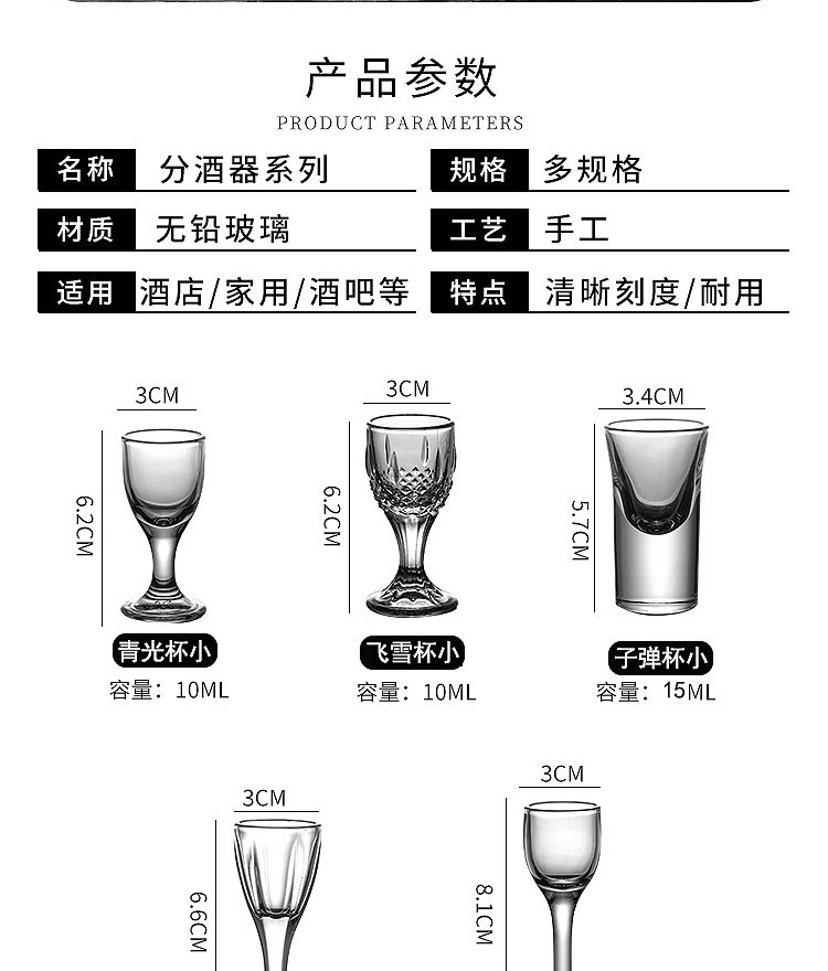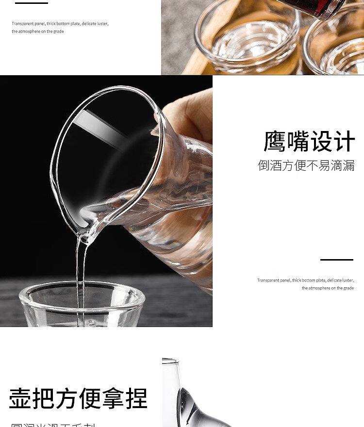 Household crystal glass white wine cup set wine dispenser small small wine cup one-cup Chinese hotel wine cup 100 seven-character pot 6 pieces + bullet cup 6 pieces (6 pots 6 cups)